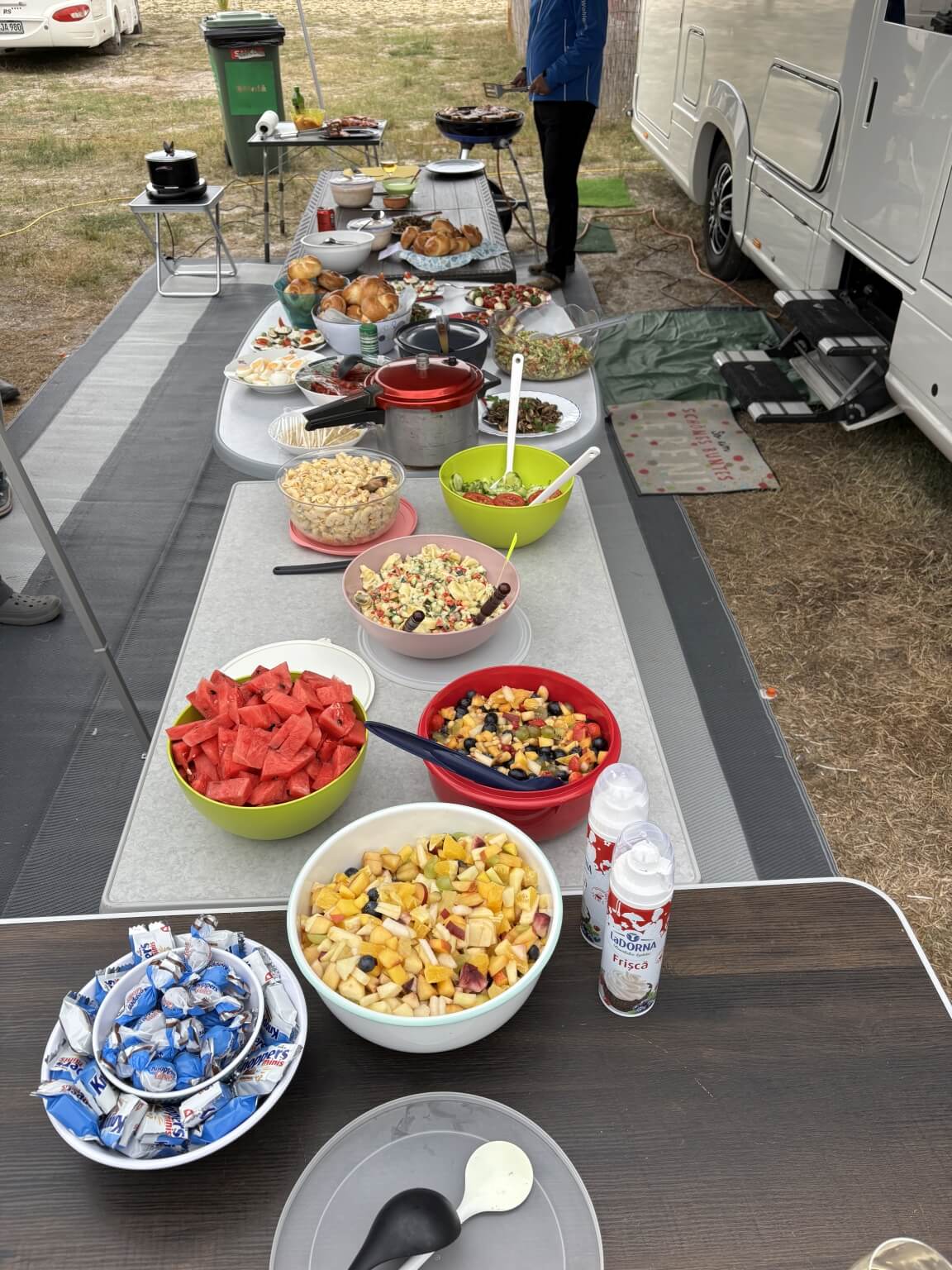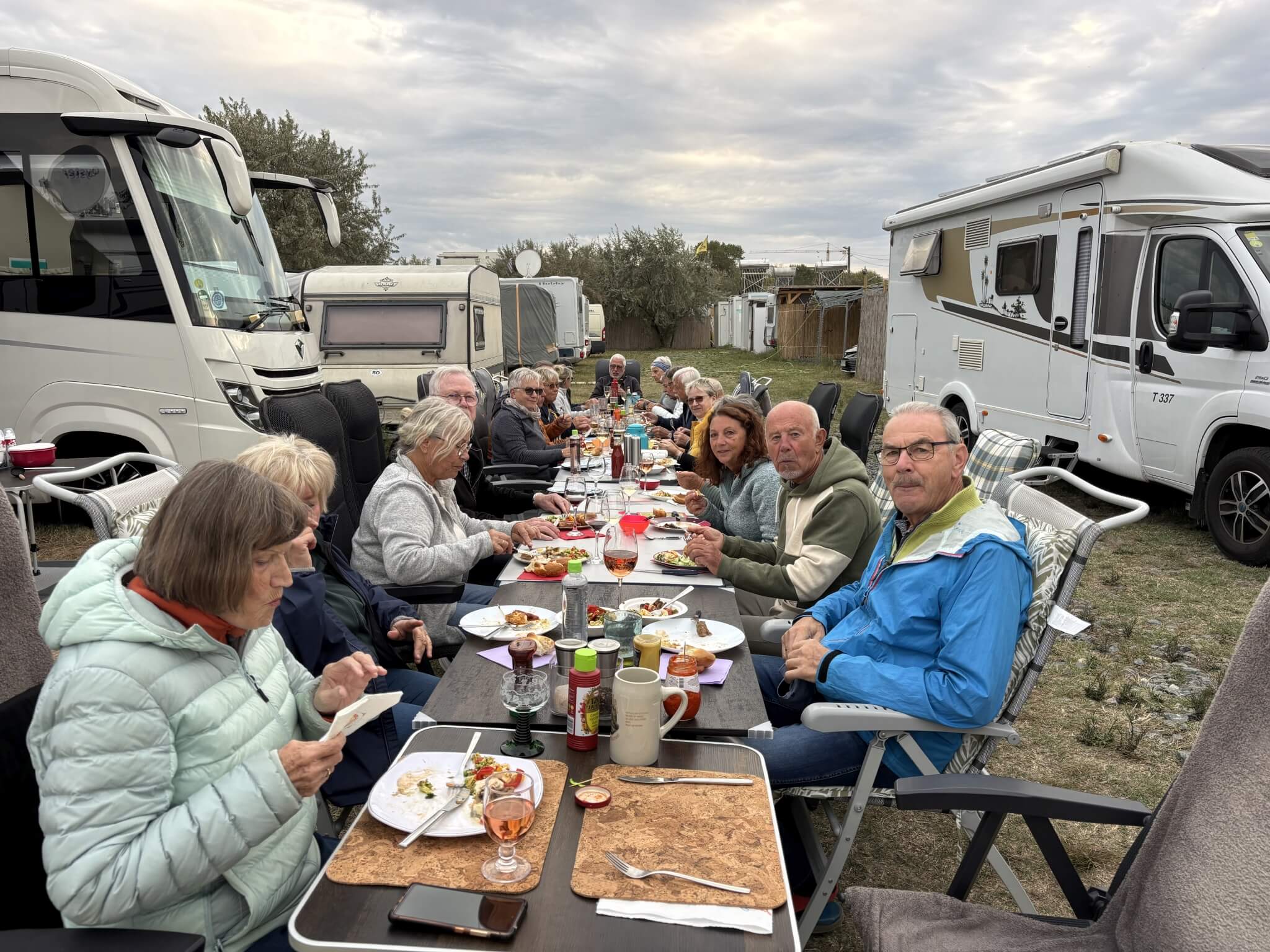 Nachdem wir gestern alle früh aufstehen mussten, genießen wir es heute, einmal richtig ausschlafen zu können. Die Sonne scheint und wir sehen einem schönen Tag entgegen. Den freien Tag nutzt heute jeder nach Gutdünken – Wohnmobil reinigen, Einkäufe erledigen oder einfach nur entspannen. Da wir für heute unsere Campertafel geplant haben, sind auch hierfür viele Erledigungen notwendig. Am Nachmittag haben wir noch unsere Besprechung der nächsten Tage. Dann heißt es, letzte Vorbereitungen für die Campertafel zu treffen. Gegen 17:30 Uhr sitzen wir dann alle gemütlich zusammen und bedienen uns an einem reichhaltigen Buffet, zu dem jeder beigetragen hat. Gleichzeitig feiern wir Miekes Geburtstag. So verbringen wir einen schönen gemeinsamen Abend am Schwarzen Meer.