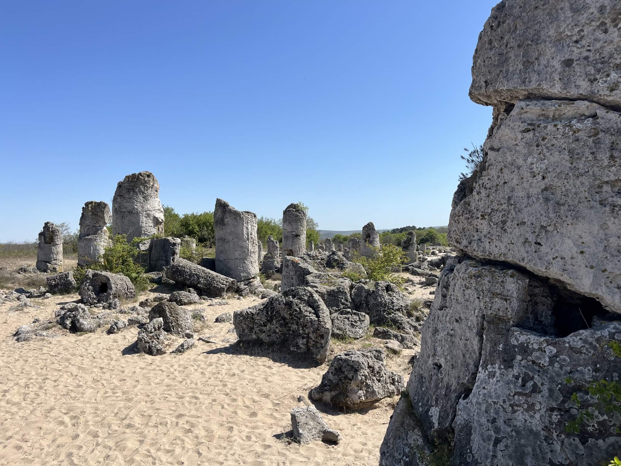 Wir starten heute wieder mit Sonne in den Tag. Knapp 300 Kilometer liegen vor uns. Bis zur Grenze ist die Landschaft recht eintönig. In Bulgarien wird die Strecke aber immer abwechslungsreicher. Ein erster Abstecher führt zum Leuchtturm von Shabla, am östlichsten Punkt Bulgariens. Die meisten lassen diesen aber aus und entscheiden sich für den nächsten Vorschlag. Dieser Abstecher führt zum Kap Kaliakra. Dort gibt es tolle Ausblicke auf zerklüftete Kalksteinfelsen, die bis zu 70 Meter aus dem Meer ragen. Man kann ein kleines Museum in einer Höhle besichtigen und Ruinen einer historischen Festung erkunden. Weiter geht unsere Fahrt Richtung Varna. Wir lassen die bekannten Badeorte Baltschik und Albena links liegen und fahren zum „Steinwald“. Dieser ist ein absolutes Muss auf dieser Tagesetappe. Er ist 50 Millionen Jahre alt und einzigartig in Europa. Die steinernen Bäume sind hier mit dem sinkenden Wasserspiegel von oben nach unten gewachsen. Nun ist es nicht mehr sehr weit zu unserem Campingplatz in Obzor. Er ist sehr ruhig gelegen und nur etwa 300 Meter vom schönen Sandstrand des Ortes entfernt. Der Ort selbst ist in der Nachsaison schon sehr verlassen. Den Abend lassen wir heute alle sehr ruhig ausklingen, da wir morgen recht zeitig zu einem Busausflug starten.