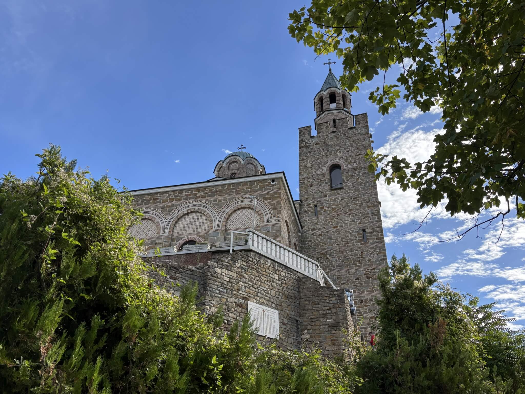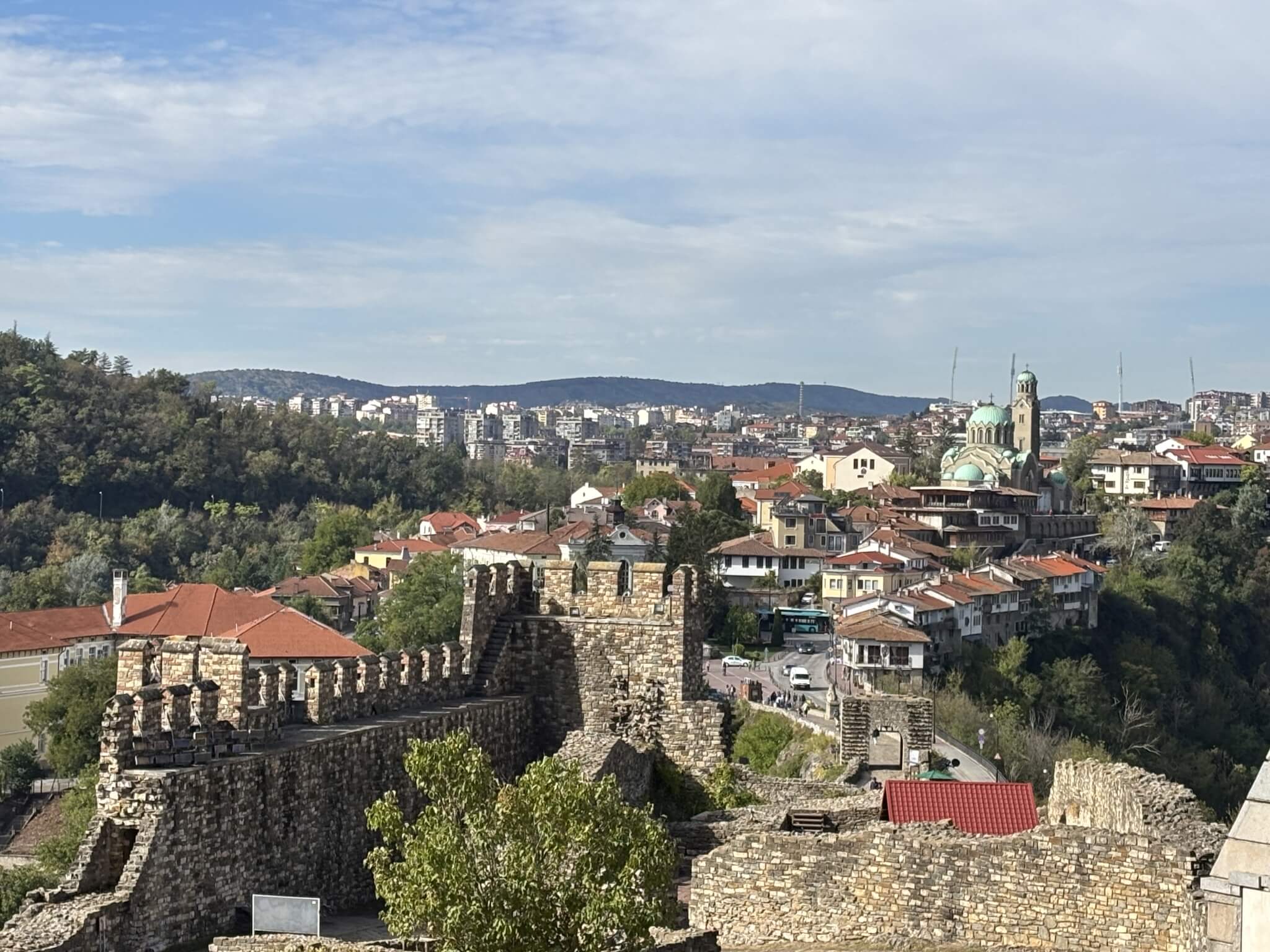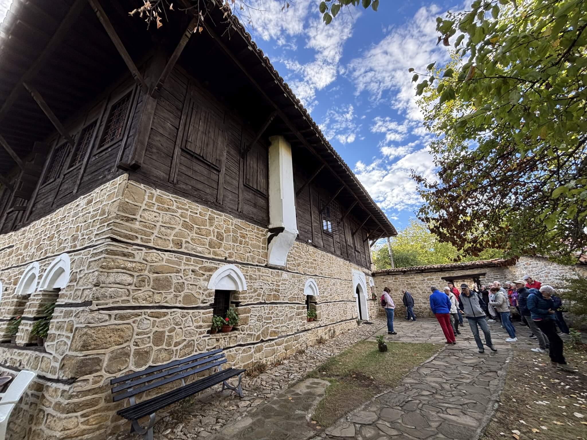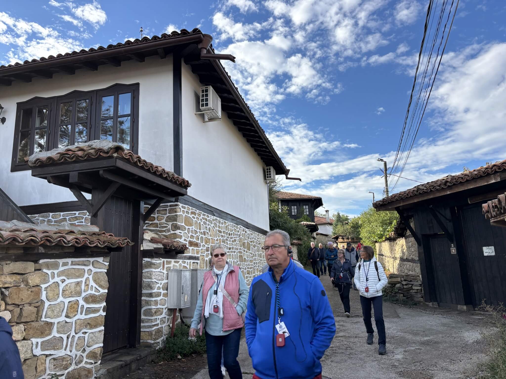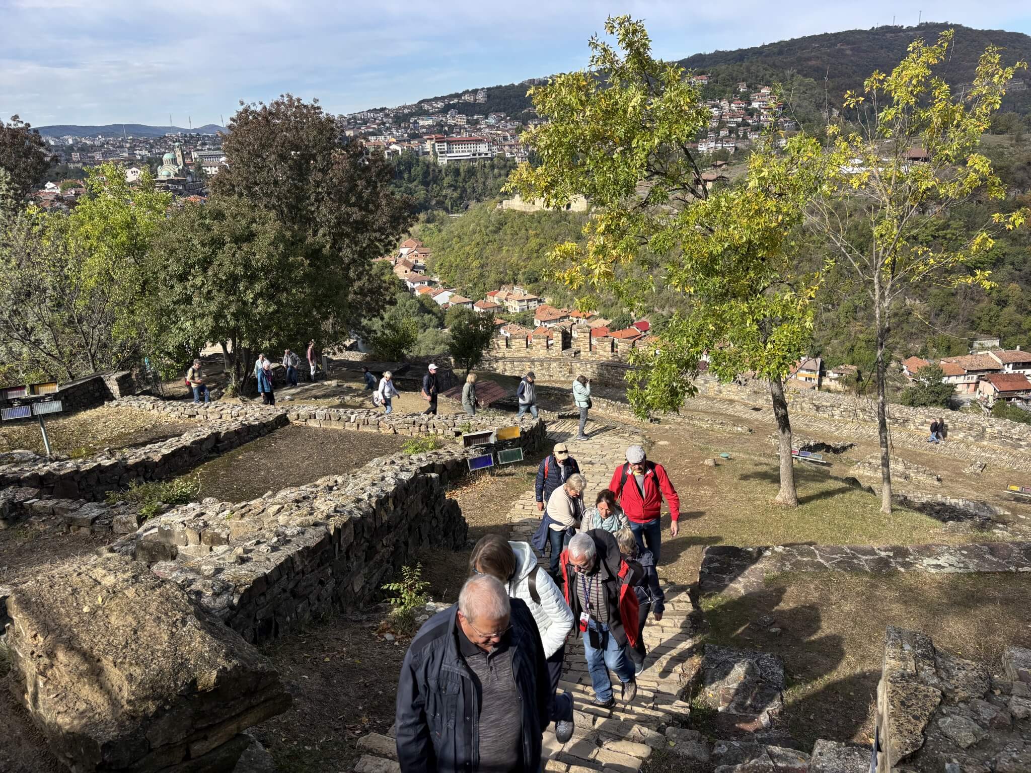 Wir fahren heute mit unserem Bus zuerst in das kleine Dorf Arbanassi. Dort besichtigen wir die Christi-Geburt-Kirche aus dem 16. Jahrhundert. Wertvolle Wandmalereien aus dem 16. und 17. Jahrhundert bedecken die Innenwände und Decken. Nachdem wir eine ortskundige Führung durch die kleine Kirche bekommen haben, besuchen wir noch das Konstantsalieva-Haus aus dem 17. Jahrhundert. Heute ist es ein kleines Museum, getreu dem früheren Leben im Dorf eingerichtet. Es ist ein für Arbanassi typisches Wiedergeburtshaus. Hinter dicken Bruchsteinmauern finden sich zweigeschossige Häuser mit aus Stein gebautem Erdgeschoss (meist Lagerräume wie z. B. Weinkeller) und verputzten Wohnräumen im Obergeschoss. Diese typische Bauweise ist einmalig in Bulgarien. Nach einem kurzen Fotostopp mit Blick auf Veliko Tarnovo, die zweite Hauptstadt Bulgariens im 12. Jahrhundert, erreichen wir das Zentrum der Stadt. Dort starten wir mit einem Aufstieg zur alten Festung. Sie wurde bereits im 14. Jahrhundert von den Türken zerstört. Wir begeben uns in die 1985 neu errichtete Patriarchenkirche. Die alte Kirche der Festung wurde im 14. Jahrhundert ebenfalls zerstört. Danach laufen wir durch die schön geschmückte Handwerkergasse zu unserem Restaurant. Neben dem Mittagsmenü bekommen wir einen schönen Panoramablick geboten. Danach ist Freizeit angesagt, um den Ort und seine Geschäfte individuell zu erkunden. Nachdem uns der Bus wieder zum Campingplatz gefahren hat, bleibt noch Zeit für einen Kaffee, bevor wir mit unserer Teilnehmerbesprechung beginnen. Wir starten heute früher als sonst, da wir noch etwas Sonne genießen wollen und es jetzt abends schnell kalt wird. Am Abend treffen sich noch einige Reiseteilnehmer auf ein Glas Wein im Café des Campingplatzes.