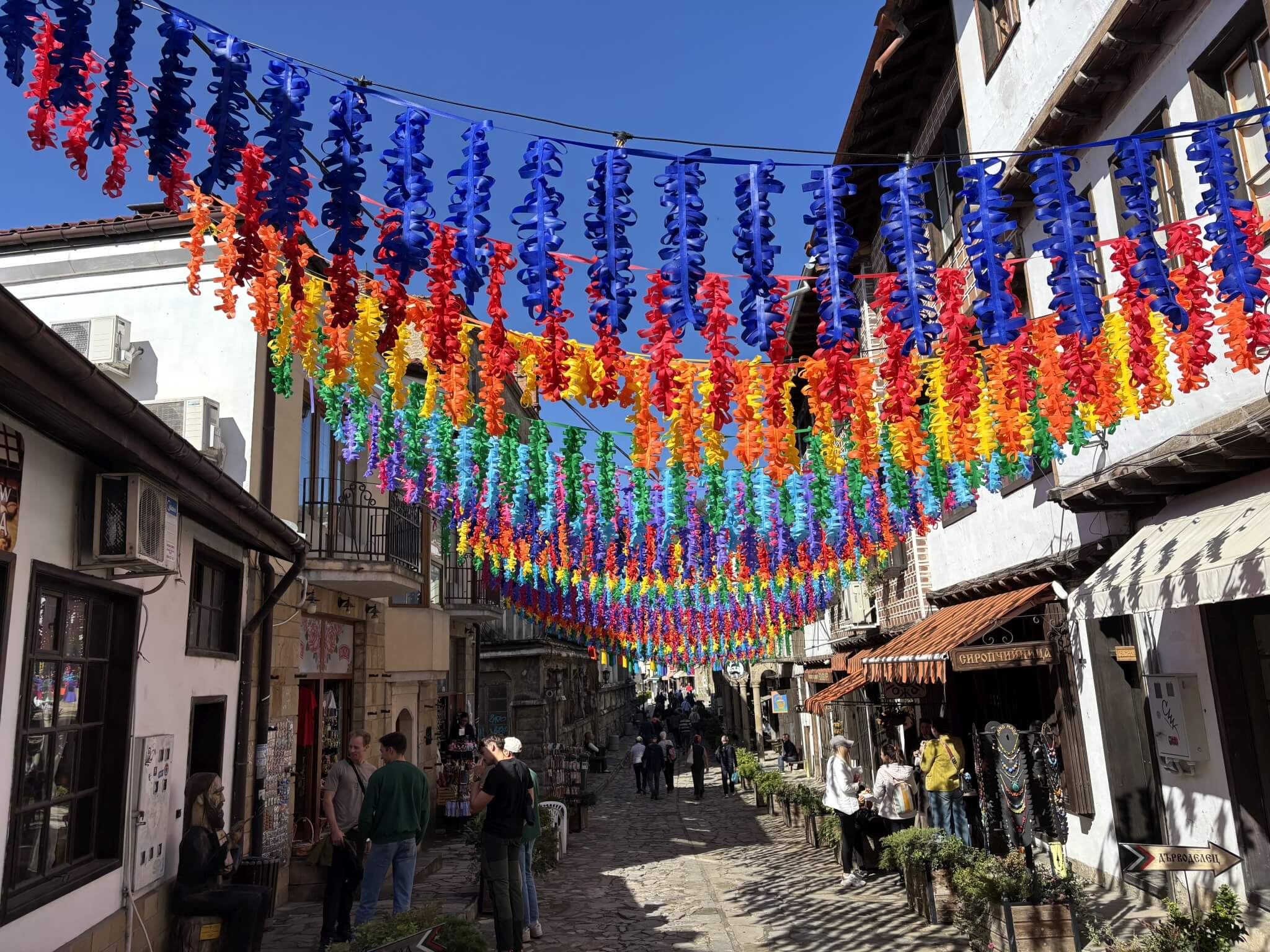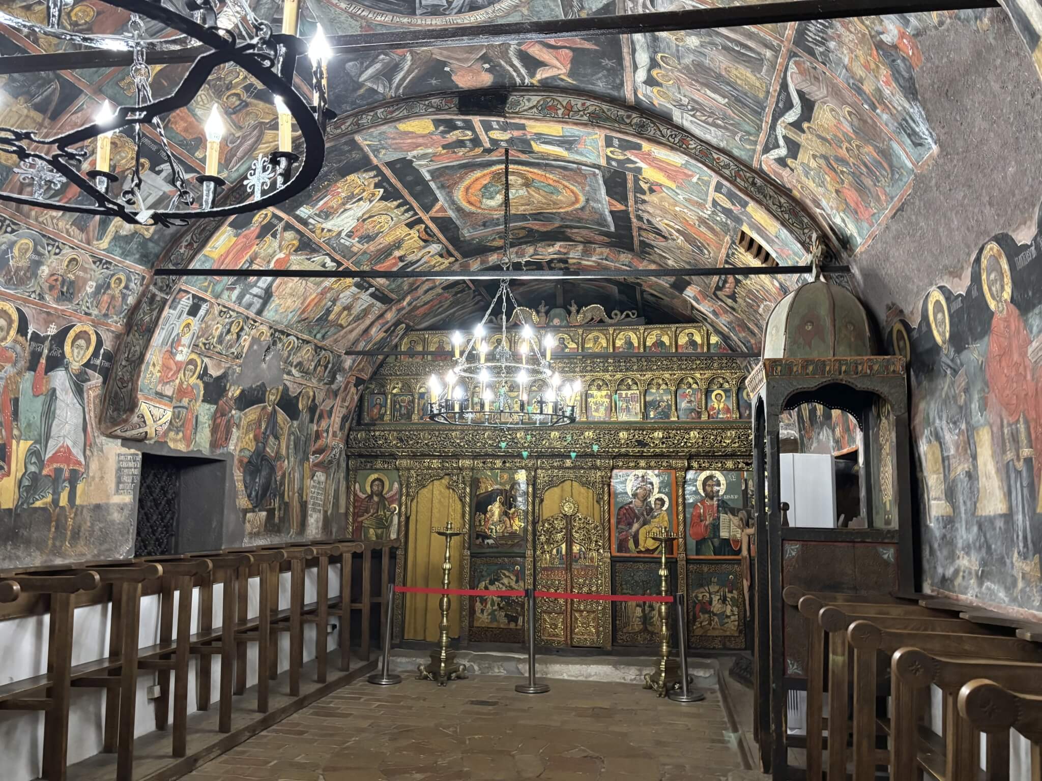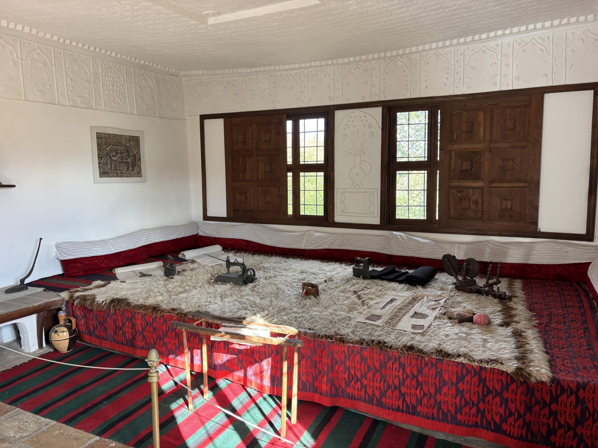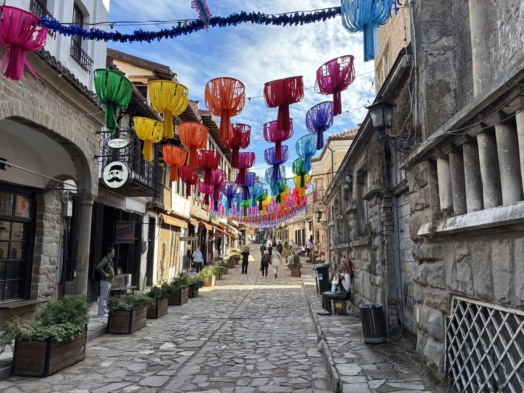 Wir fahren heute mit unserem Bus zuerst in das kleine Dorf Arbanassi. Dort besichtigen wir die Christi-Geburt-Kirche aus dem 16. Jahrhundert. Wertvolle Wandmalereien aus dem 16. und 17. Jahrhundert bedecken die Innenwände und Decken. Nachdem wir eine ortskundige Führung durch die kleine Kirche bekommen haben, besuchen wir noch das Konstantsalieva-Haus aus dem 17. Jahrhundert. Heute ist es ein kleines Museum, getreu dem früheren Leben im Dorf eingerichtet. Es ist ein für Arbanassi typisches Wiedergeburtshaus. Hinter dicken Bruchsteinmauern finden sich zweigeschossige Häuser mit aus Stein gebautem Erdgeschoss (meist Lagerräume wie z. B. Weinkeller) und verputzten Wohnräumen im Obergeschoss. Diese typische Bauweise ist einmalig in Bulgarien. Nach einem kurzen Fotostopp mit Blick auf Veliko Tarnovo, die zweite Hauptstadt Bulgariens im 12. Jahrhundert, erreichen wir das Zentrum der Stadt. Dort starten wir mit einem Aufstieg zur alten Festung. Sie wurde bereits im 14. Jahrhundert von den Türken zerstört. Wir begeben uns in die 1985 neu errichtete Patriarchenkirche. Die alte Kirche der Festung wurde im 14. Jahrhundert ebenfalls zerstört. Danach laufen wir durch die schön geschmückte Handwerkergasse zu unserem Restaurant. Neben dem Mittagsmenü bekommen wir einen schönen Panoramablick geboten. Danach ist Freizeit angesagt, um den Ort und seine Geschäfte individuell zu erkunden. Nachdem uns der Bus wieder zum Campingplatz gefahren hat, bleibt noch Zeit für einen Kaffee, bevor wir mit unserer Teilnehmerbesprechung beginnen. Wir starten heute früher als sonst, da wir noch etwas Sonne genießen wollen und es jetzt abends schnell kalt wird. Am Abend treffen sich noch einige Reiseteilnehmer auf ein Glas Wein im Café des Campingplatzes.