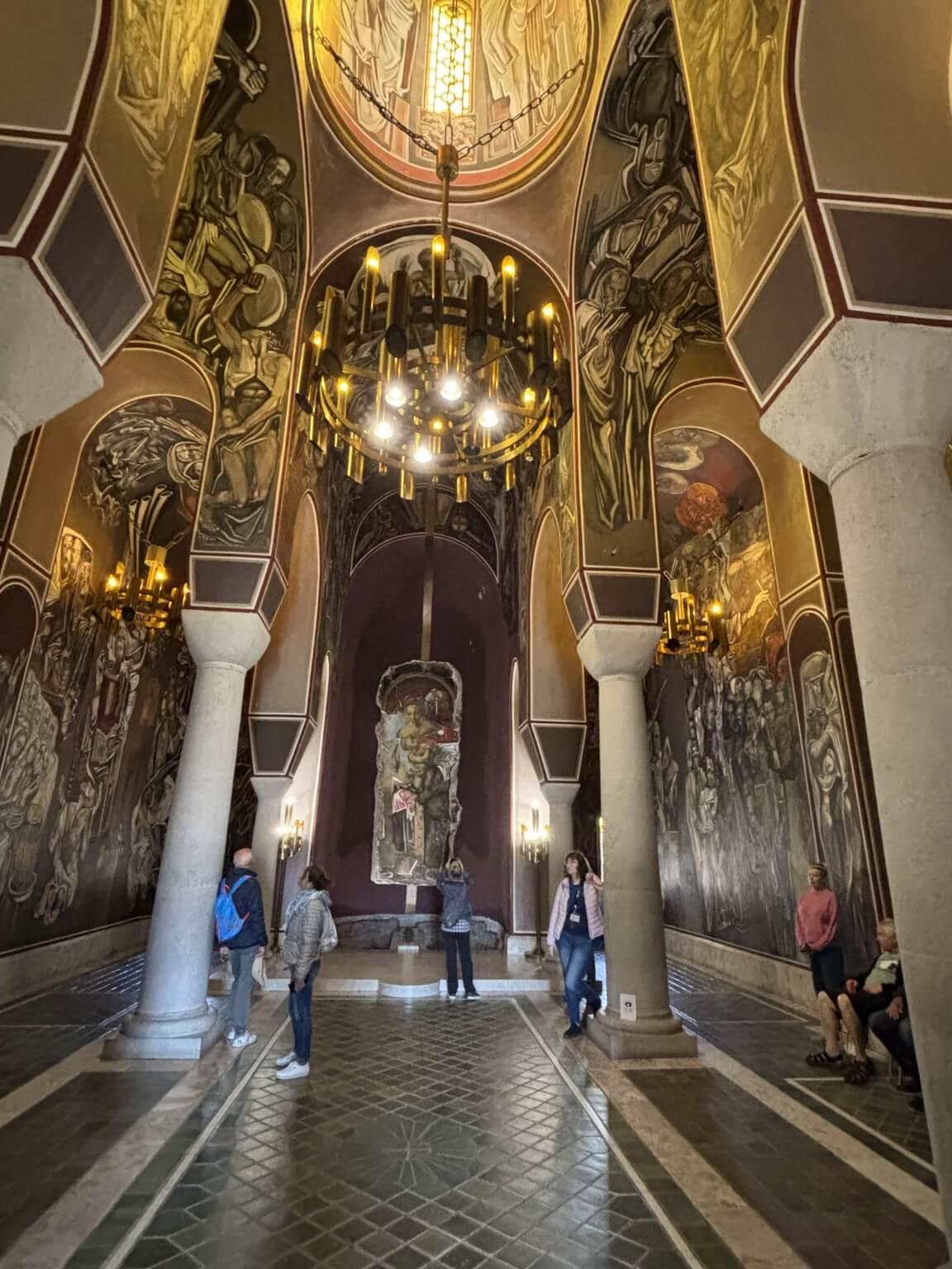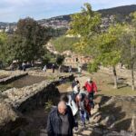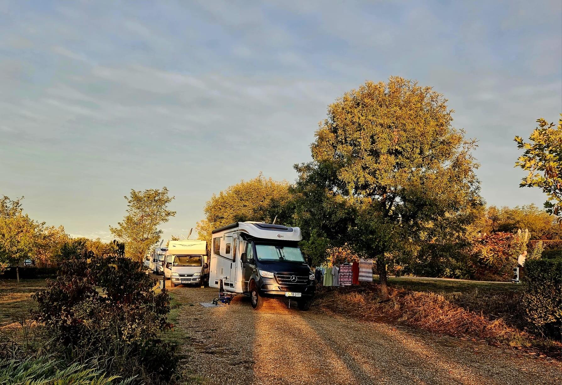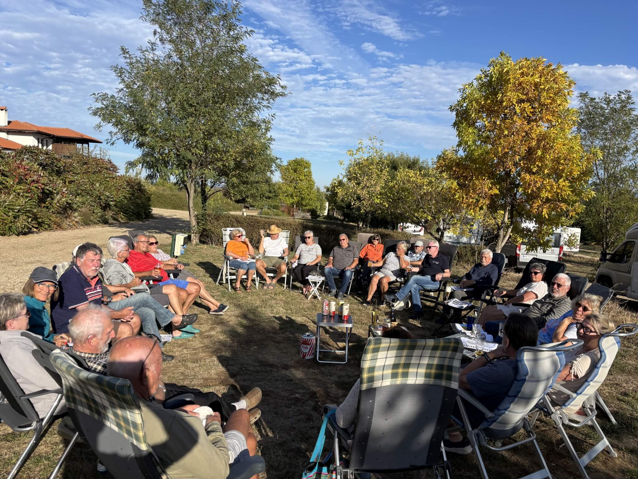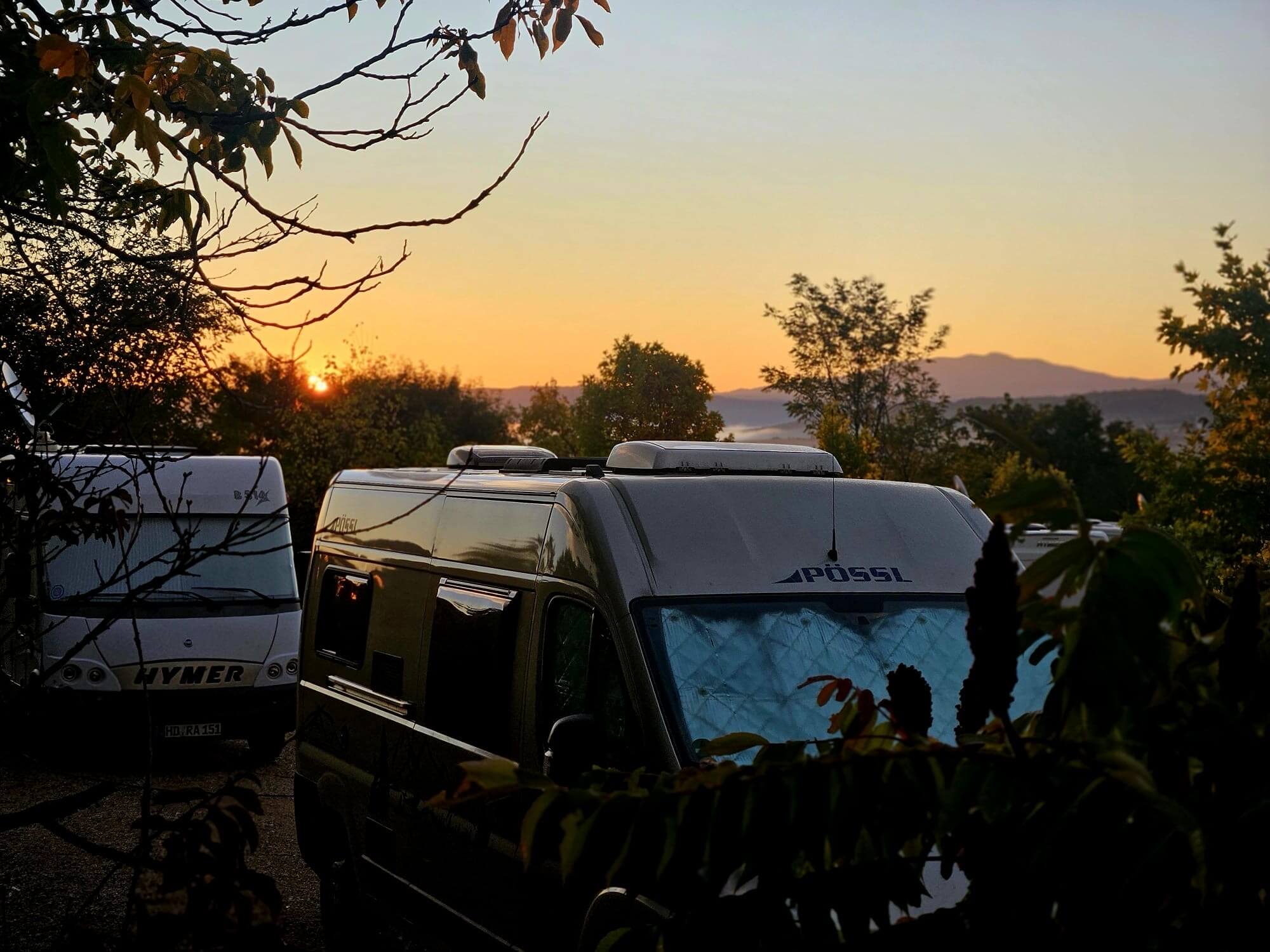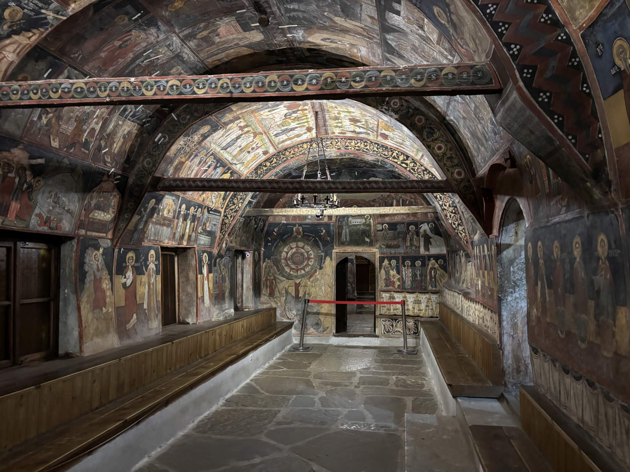 Wir fahren heute mit unserem Bus zuerst in das kleine Dorf Arbanassi. Dort besichtigen wir die Christi-Geburt-Kirche aus dem 16. Jahrhundert. Wertvolle Wandmalereien aus dem 16. und 17. Jahrhundert bedecken die Innenwände und Decken. Nachdem wir eine ortskundige Führung durch die kleine Kirche bekommen haben, besuchen wir noch das Konstantsalieva-Haus aus dem 17. Jahrhundert. Heute ist es ein kleines Museum, getreu dem früheren Leben im Dorf eingerichtet. Es ist ein für Arbanassi typisches Wiedergeburtshaus. Hinter dicken Bruchsteinmauern finden sich zweigeschossige Häuser mit aus Stein gebautem Erdgeschoss (meist Lagerräume wie z. B. Weinkeller) und verputzten Wohnräumen im Obergeschoss. Diese typische Bauweise ist einmalig in Bulgarien. Nach einem kurzen Fotostopp mit Blick auf Veliko Tarnovo, die zweite Hauptstadt Bulgariens im 12. Jahrhundert, erreichen wir das Zentrum der Stadt. Dort starten wir mit einem Aufstieg zur alten Festung. Sie wurde bereits im 14. Jahrhundert von den Türken zerstört. Wir begeben uns in die 1985 neu errichtete Patriarchenkirche. Die alte Kirche der Festung wurde im 14. Jahrhundert ebenfalls zerstört. Danach laufen wir durch die schön geschmückte Handwerkergasse zu unserem Restaurant. Neben dem Mittagsmenü bekommen wir einen schönen Panoramablick geboten. Danach ist Freizeit angesagt, um den Ort und seine Geschäfte individuell zu erkunden. Nachdem uns der Bus wieder zum Campingplatz gefahren hat, bleibt noch Zeit für einen Kaffee, bevor wir mit unserer Teilnehmerbesprechung beginnen. Wir starten heute früher als sonst, da wir noch etwas Sonne genießen wollen und es jetzt abends schnell kalt wird. Am Abend treffen sich noch einige Reiseteilnehmer auf ein Glas Wein im Café des Campingplatzes.