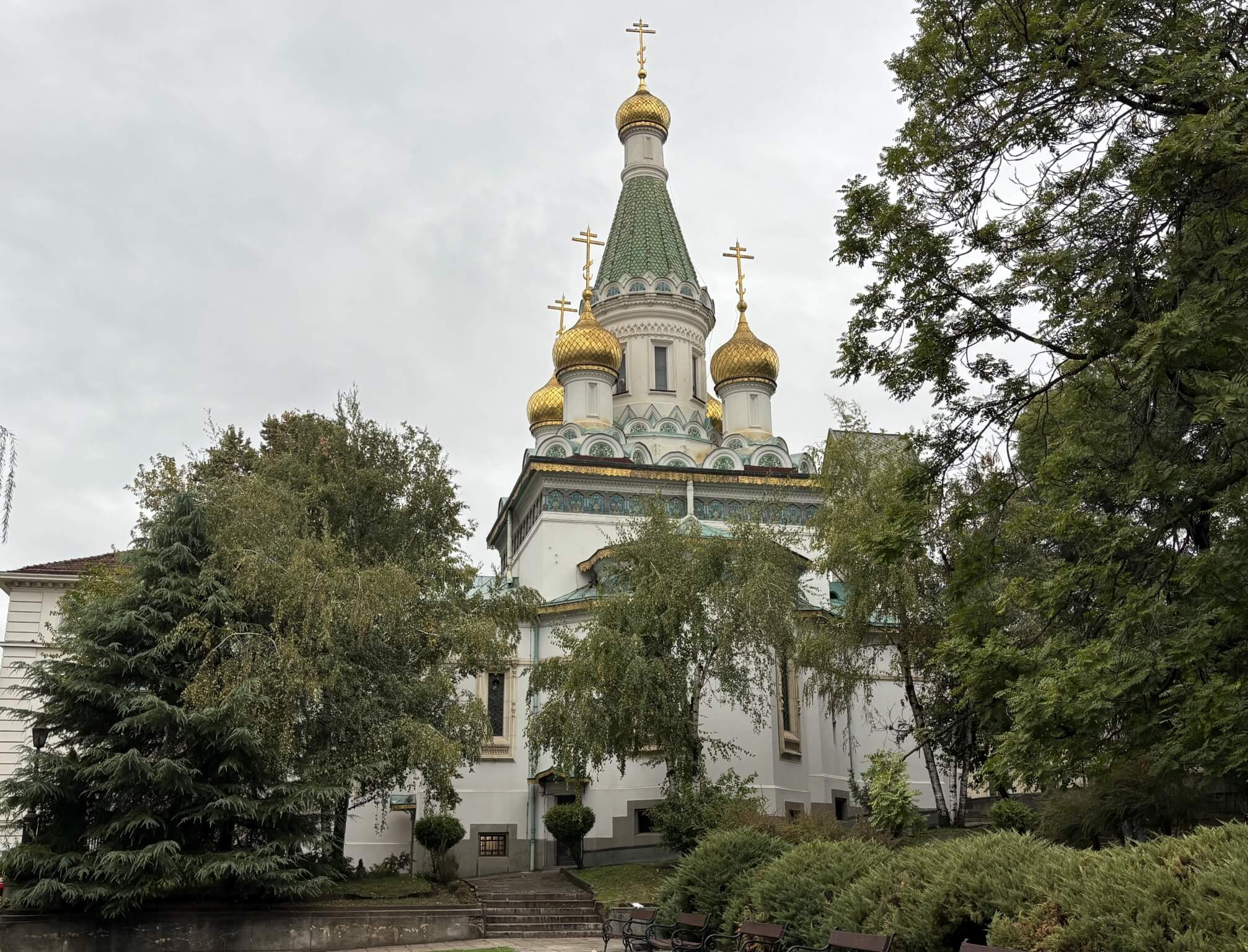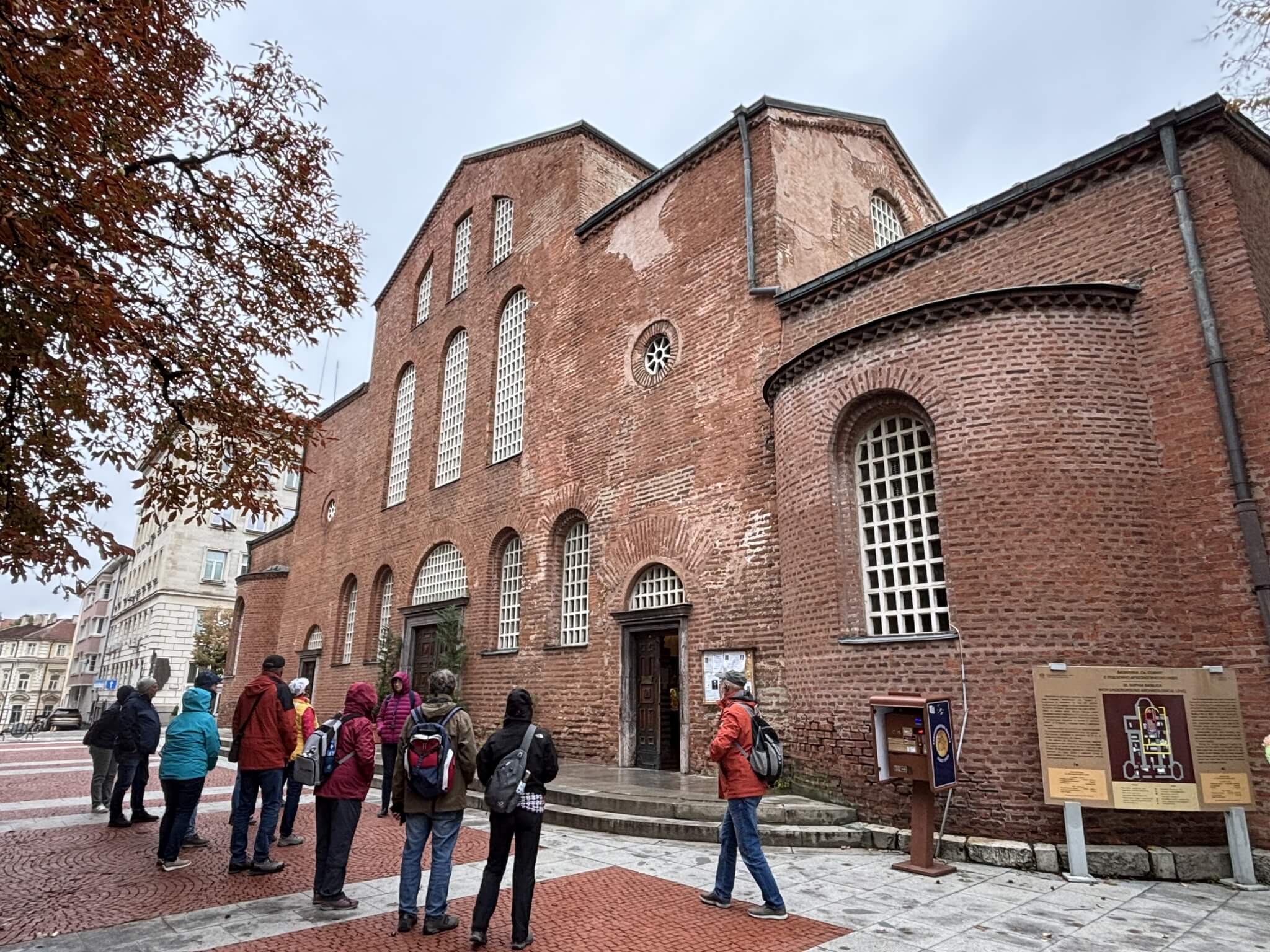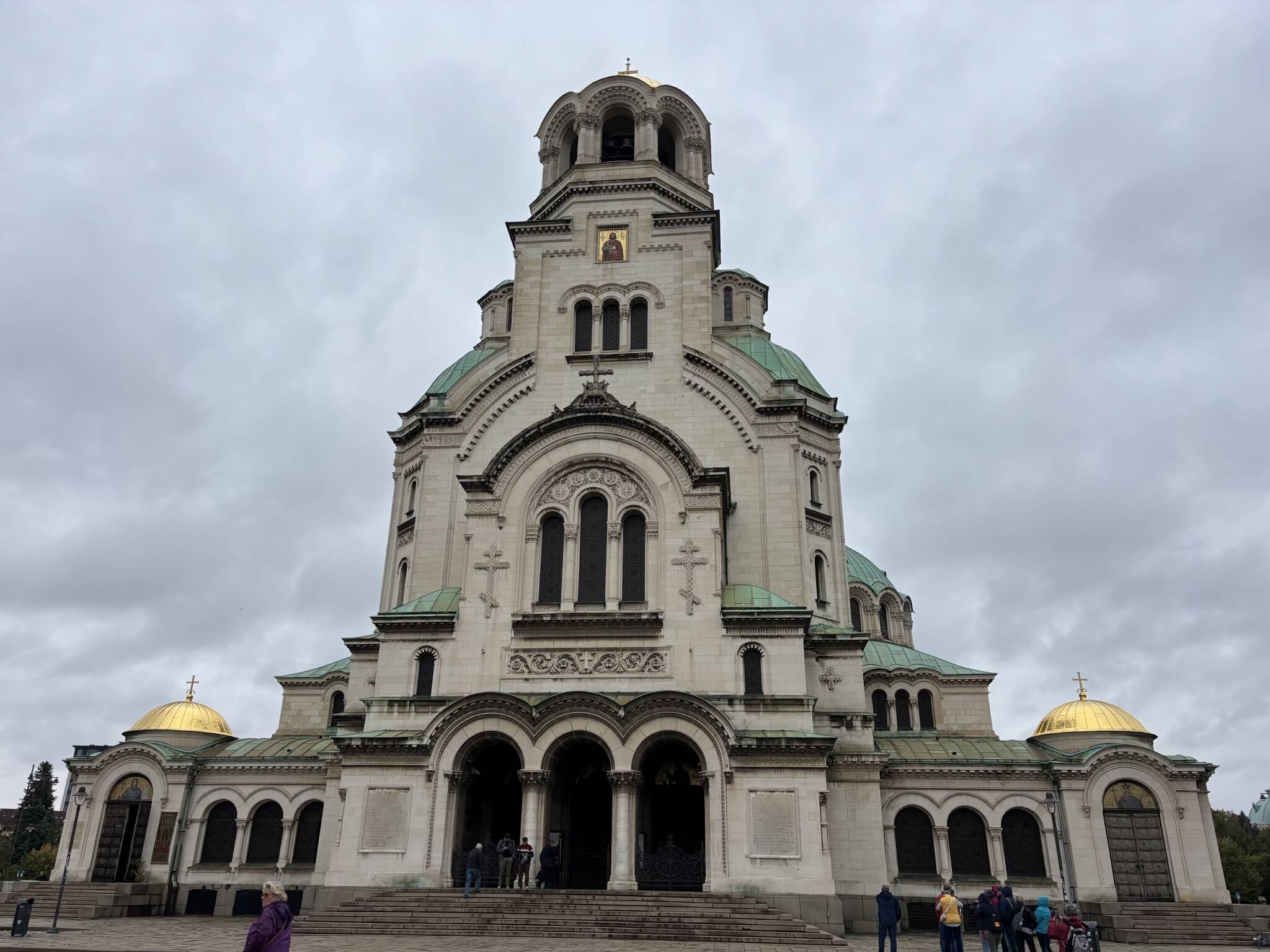 Wir starten wieder bei Regen zu unserem Ausflug nach Sofia. Unterwegs erfahren wir von Nelly viel über den Weinanbau, die Bräuche und den Wein in Bulgarien. Nach anderthalb Stunden, der Regen hat zwischenzeitlich aufgehört, erreichen wir die bulgarische Hauptstadt. Sie ist mit ca. 1,2 Millionen Einwohnern auch die größte Stadt Bulgariens. An der Alexander-Newski-Kathedrale, der größten auf dem Balkan, verlassen wir den Bus und beginnen mit unserem Stadtrundgang. Der neobyzantinische Sakralbau wurde in den Jahren 1882 bis 1912 errichtet. Von Nelly erfahren wir weitere interessante Details zur Kathedrale. Weiter geht unser Rundgang zur Sophienkirche, zur Nikolaikirche, zum ehemaligen Zarenschloss, dem Nationaltheater, dem Sitz des Präsidenten, einem archäologischen Komplex mit der Georgskirche, der ältesten Kirche Sofias. Nachdem wir bei den Unterführungen Überreste der alten Oststadt passiert haben sehen wir die Statue der Heiligen Sophia, der Schutzpatronin der Stadt und laufen zum alten Mineralbad. Von dort erblicken wir die Markthalle und auch die Bania Bashi Moschee, die einzige Sofias. Kurz bevor wir unser Restaurant in der Fußgängerzone von Sofia erreichen, kommen wir noch an der Kirche der Sweta Nedelja vorbei. Nach einem reichhaltigen Mittagsmenü bleibt noch Zeit, um die Innenstadt auf eigene Faust zu erkunden. Dann bringt uns Alexander, unser heutiger Busfahrer, zurück zum Campingplatz. Dort verabschieden wir uns von Nelly und bedanken uns für ihre dreitägige Begleitung. Am Abend haben wir dann noch unsere Besprechung des nächsten Tages, bevor wir uns wieder gemütlich zusammensetzen und den Abend bei Wein und Bier ausklingen lassen.