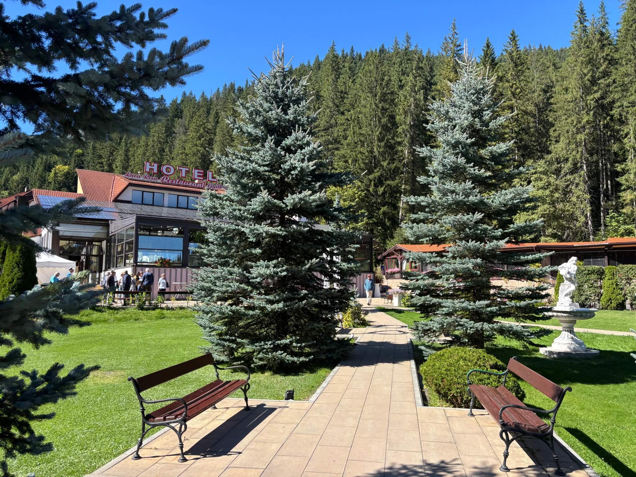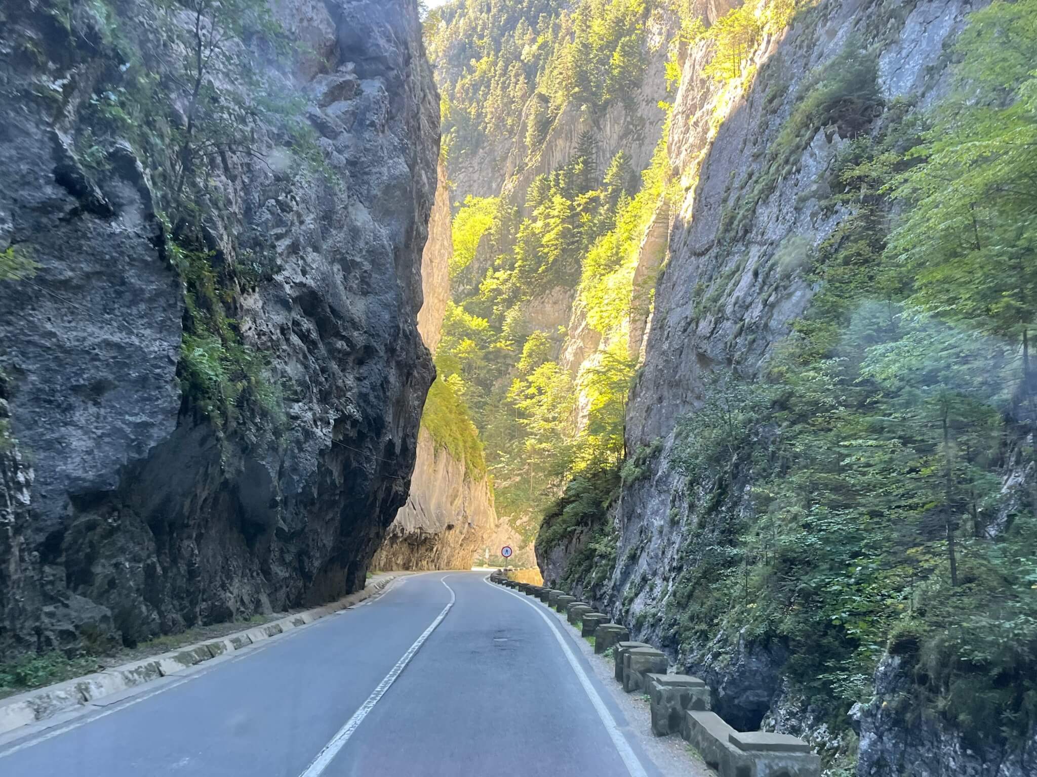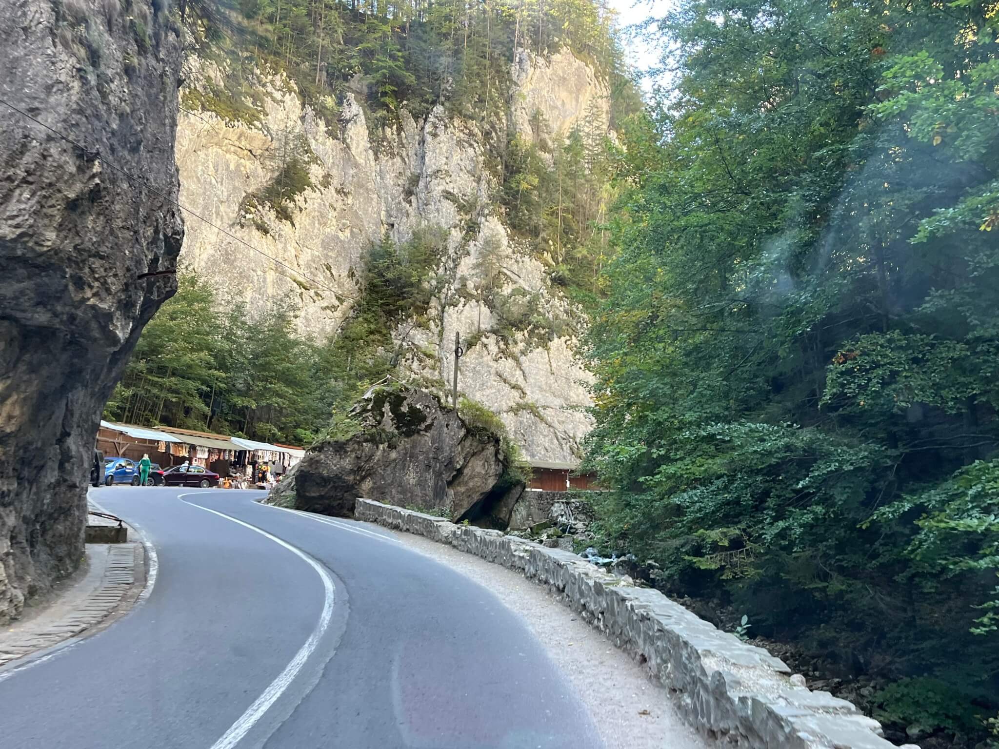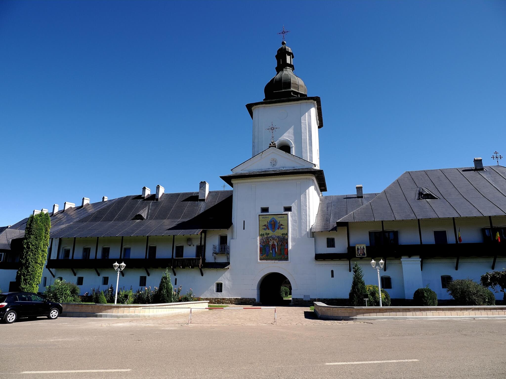 Heute liegt mit 272 Kilometern nochmals eine lange Strecke vor uns. Aber das schöne Wetter und die tolle Landschaft lassen uns die Fahrt genießen. Zuerst passieren wir einige Klöster, welche wir gestern schon auf unserem Busausflug besichtigt haben. Wir fahren durch Solca mit der angeblich besten Luft Rumäniens. Wir kommen heute wieder durch viele kleine Dörfer mit hübschen Kirchen. Im weiteren Verlauf der Tour gibt es auch weitere noch wirklich sehenswerte Klöster zu besichtigen. Wir beginnen mit dem Kloster Neamt, einem rumänisch-orthodoxen Männerkloster, dem ältesten der Moldauklöster. Es wurde bereits im 14. Jahrhundert gegründet. Früher war hier eine Schule für Miniaturmalerei und Kalligrafie untergebracht. Sehr beeindruckend ist der Buchladen des Klosters. Kurz davor ist noch eine sehr schön bemalte Kirche einen Halt wert. Weiter geht es zum Kloster Agapia aus dem 18. Jahrhundert. Die Anlage ist strahlend weiß wie ein griechischer Tempel. Danach lohnt ein weiterer kleiner Abstecher zum im Jahre 1785 gegründeten Kloster Varatec mit seinen drei Kirchen. Am Ende bietet sich noch ein kurzer Besuch des im Jahre 1490 gegründeten Klosters Bistrita an. Danach gilt es nur noch die wunderschöne Landschaft zu genießen. Es empfiehlt sich noch ein kurzer Abstecher zum Bicaz-Stausee, bevor wir in die bezaubernde Bicaz-Klamm einfahren. Wir fahren unter spektakulären Felsüberhängen und zwischen hoch aufragenden Felsen hindurch. Für alle Fahrzeuge ist dies aber problemlos möglich. Langsam beginnen wir das Ceahlau-Bergmassiv, auch Olymp der Moldau genannt, zu überwinden. Auf halber Strecke erreichen wir unseren heutigen Stellplatz am Hotel Lacu Rosu. Dessen Restaurant nutzen am Abend mehrere Reiseteilnehmer zum Abendessen. Zuvor gilt es aber noch den folgenden Tag zu besprechen und dabei den von Elke und Horst spendierten Wein zu genießen.