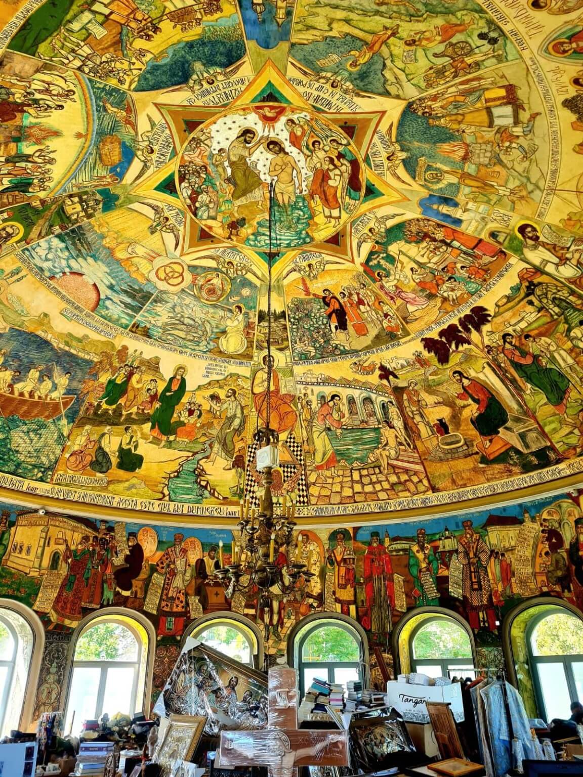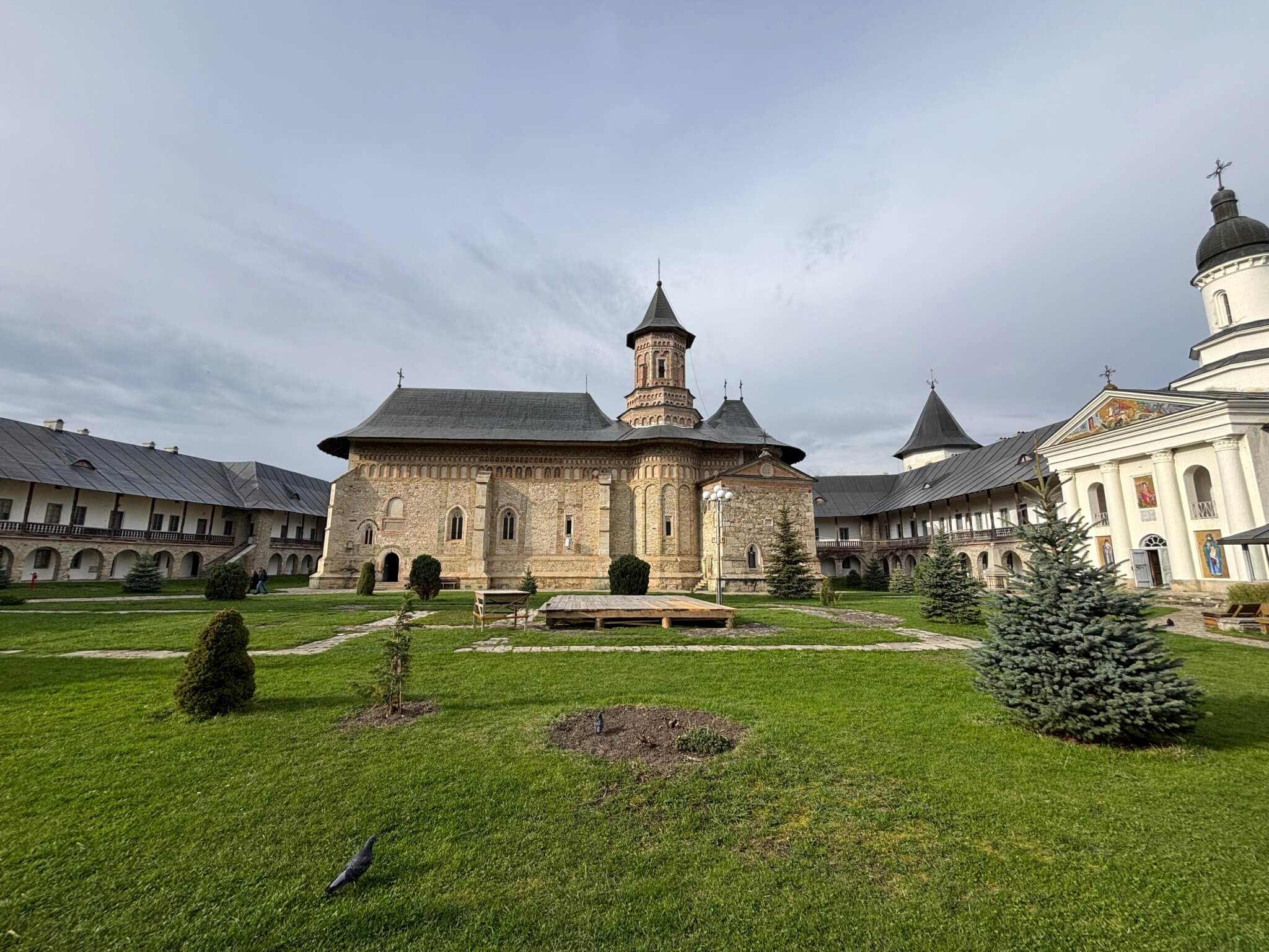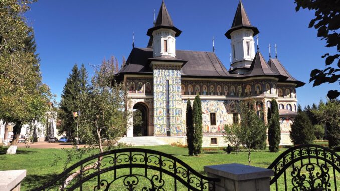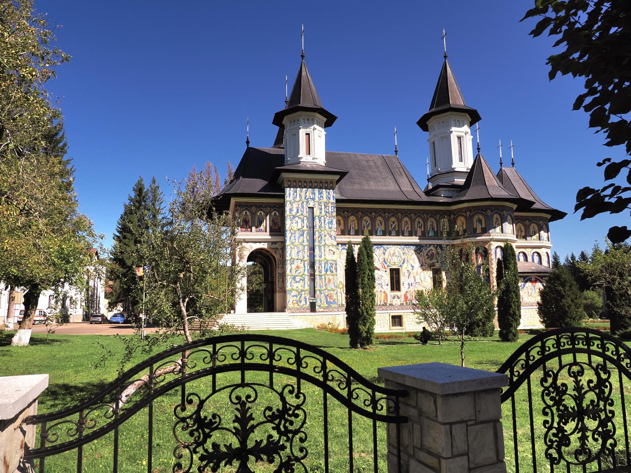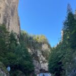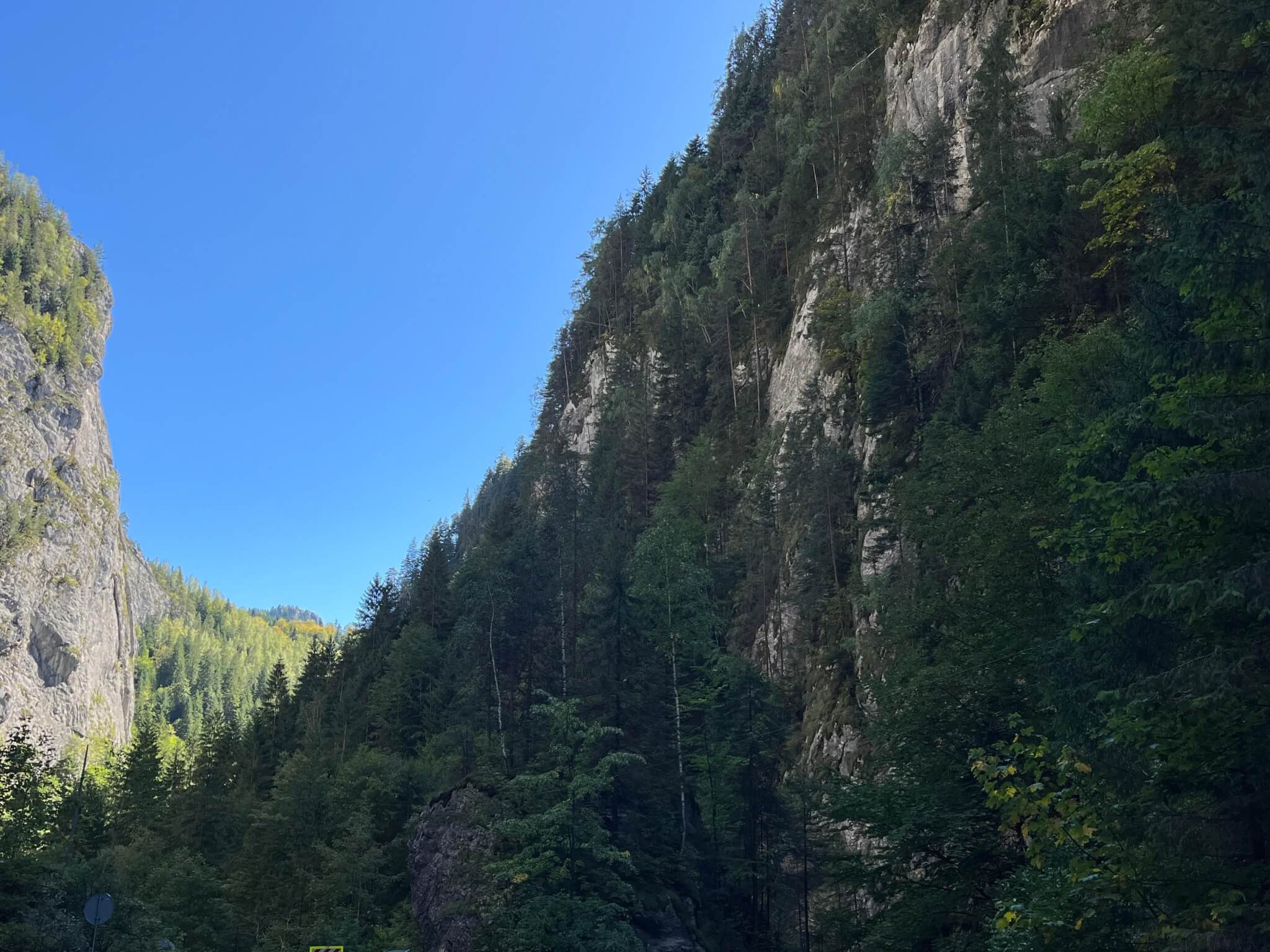 Heute liegt mit 272 Kilometern nochmals eine lange Strecke vor uns. Aber das schöne Wetter und die tolle Landschaft lassen uns die Fahrt genießen. Zuerst passieren wir einige Klöster, welche wir gestern schon auf unserem Busausflug besichtigt haben. Wir fahren durch Solca mit der angeblich besten Luft Rumäniens. Wir kommen heute wieder durch viele kleine Dörfer mit hübschen Kirchen. Im weiteren Verlauf der Tour gibt es auch weitere noch wirklich sehenswerte Klöster zu besichtigen. Wir beginnen mit dem Kloster Neamt, einem rumänisch-orthodoxen Männerkloster, dem ältesten der Moldauklöster. Es wurde bereits im 14. Jahrhundert gegründet. Früher war hier eine Schule für Miniaturmalerei und Kalligrafie untergebracht. Sehr beeindruckend ist der Buchladen des Klosters. Kurz davor ist noch eine sehr schön bemalte Kirche einen Halt wert. Weiter geht es zum Kloster Agapia aus dem 18. Jahrhundert. Die Anlage ist strahlend weiß wie ein griechischer Tempel. Danach lohnt ein weiterer kleiner Abstecher zum im Jahre 1785 gegründeten Kloster Varatec mit seinen drei Kirchen. Am Ende bietet sich noch ein kurzer Besuch des im Jahre 1490 gegründeten Klosters Bistrita an. Danach gilt es nur noch die wunderschöne Landschaft zu genießen. Es empfiehlt sich noch ein kurzer Abstecher zum Bicaz-Stausee, bevor wir in die bezaubernde Bicaz-Klamm einfahren. Wir fahren unter spektakulären Felsüberhängen und zwischen hoch aufragenden Felsen hindurch. Für alle Fahrzeuge ist dies aber problemlos möglich. Langsam beginnen wir das Ceahlau-Bergmassiv, auch Olymp der Moldau genannt, zu überwinden. Auf halber Strecke erreichen wir unseren heutigen Stellplatz am Hotel Lacu Rosu. Dessen Restaurant nutzen am Abend mehrere Reiseteilnehmer zum Abendessen. Zuvor gilt es aber noch den folgenden Tag zu besprechen und dabei den von Elke und Horst spendierten Wein zu genießen.
