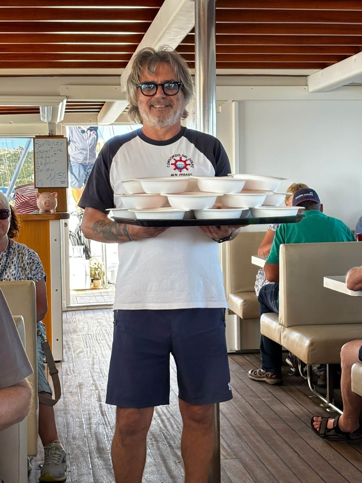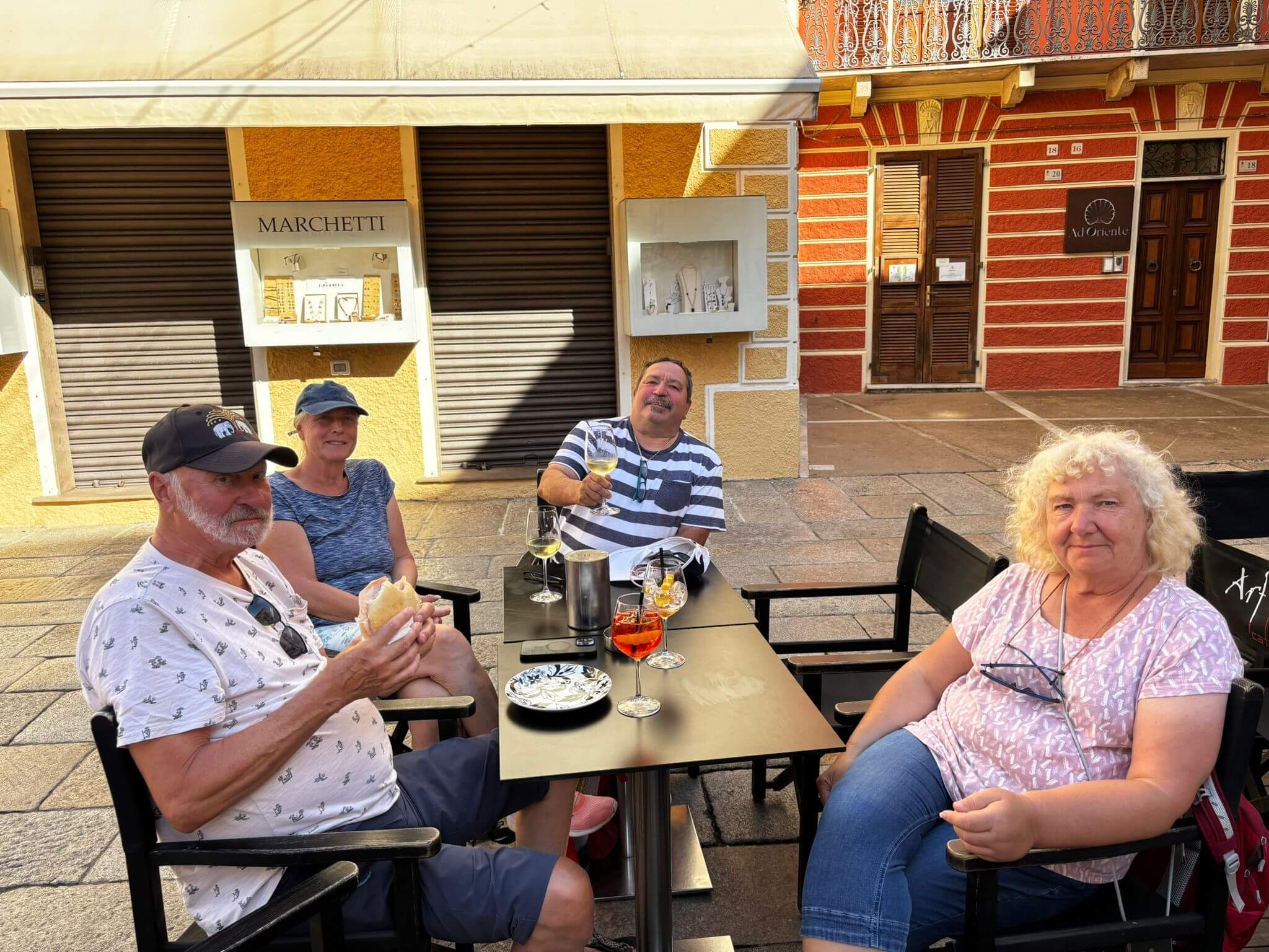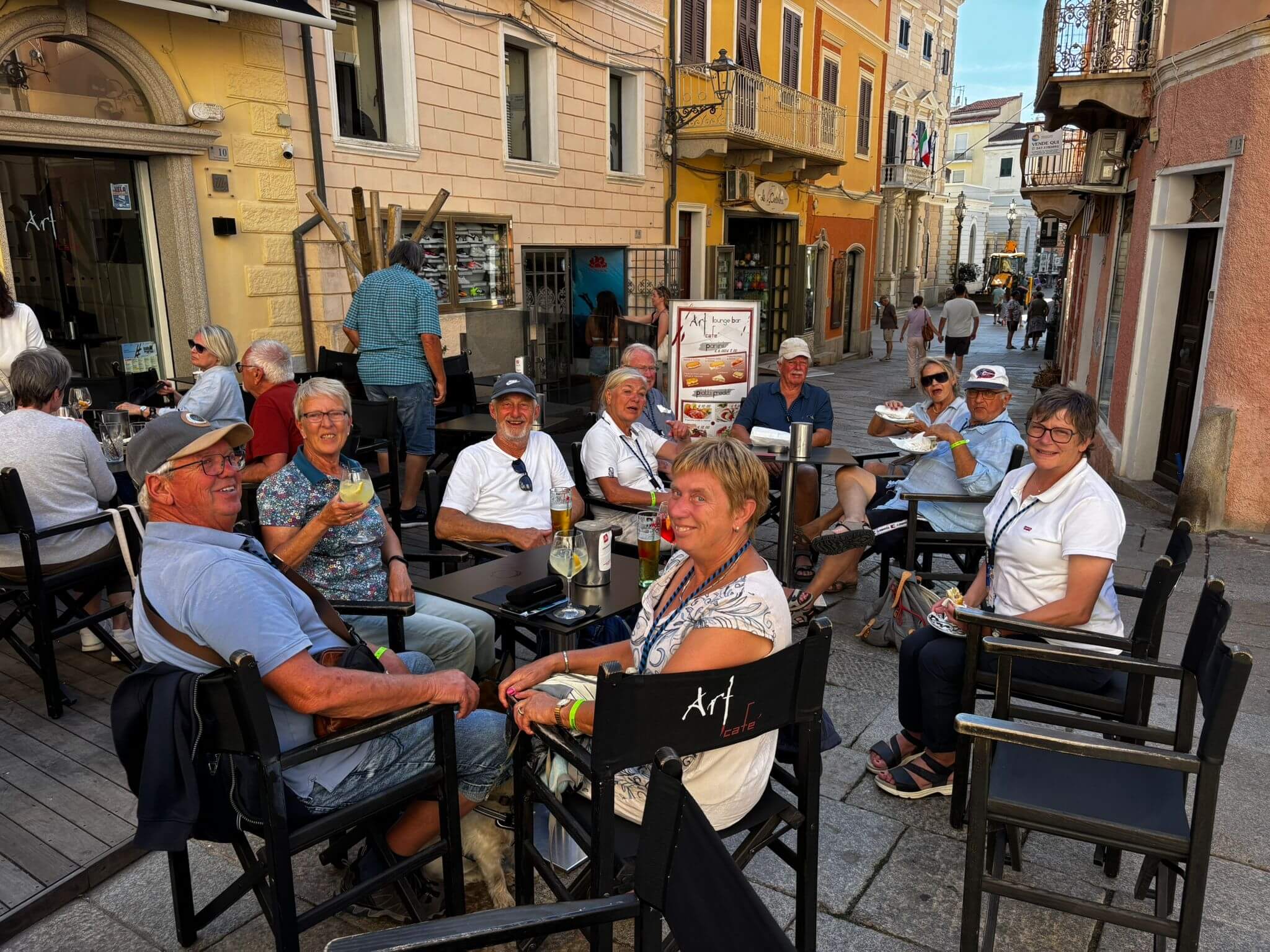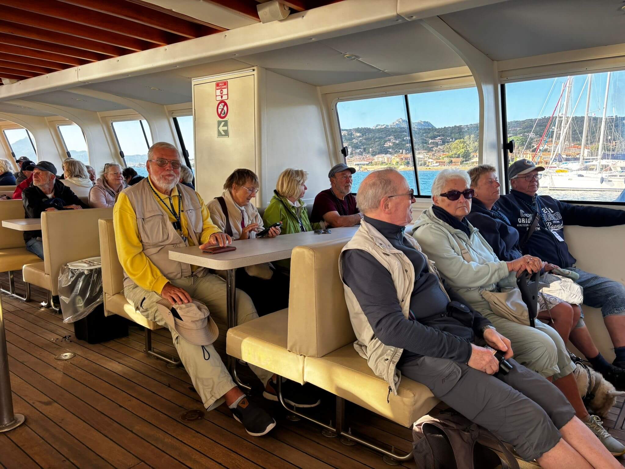 Bei tollen Wetterbedingungen marschierten wir frühmorgens über zwei Strände zu unserem Bootsanleger. Gespannt erwarteten wir die Ankunft von unserem Ausflugsschiff. Dieses Schiff brachte uns ins Archipel und damit in eine zauberhafte Welt. Es gehört zur historischen Region von Gallura und besteht aus etwa 62 Inseln. Wir besuchten. Santa Maria, Budelli, Spargi und zum Schluss Maddalena. Die Inseln sind teilweise unbewohnt und dort findet man die schönsten Strände der Welt. Wir machten dort zwei Badestrände und genossen das Meer. Maddalena mit seinen 10 000 Einwohnern ist ein zauberhaftes Städtchen und wir fanden uns dort noch in einer Bar ein. Wir waren der Meinung, dass diese Reise durch die Insellandschaft der schönste Teil unserer Reise war. Jetzt sind wir gespannt, was uns morgen noch bei unserer Reise durch Costa Smeralda erwartet.