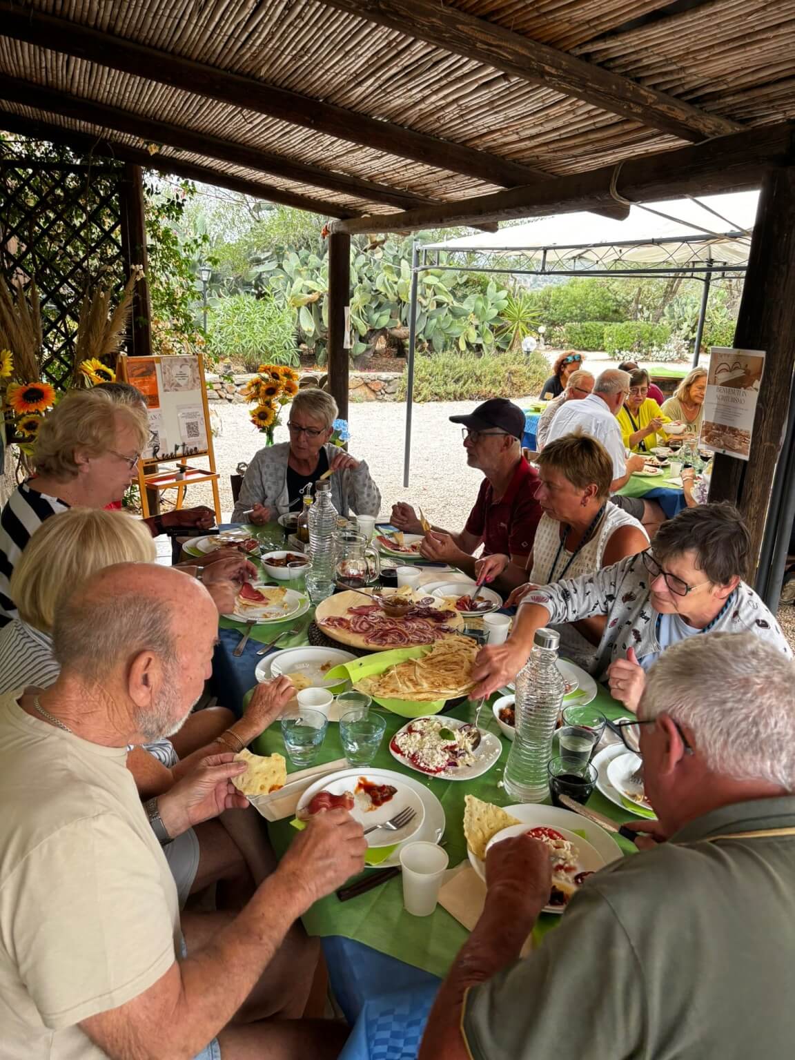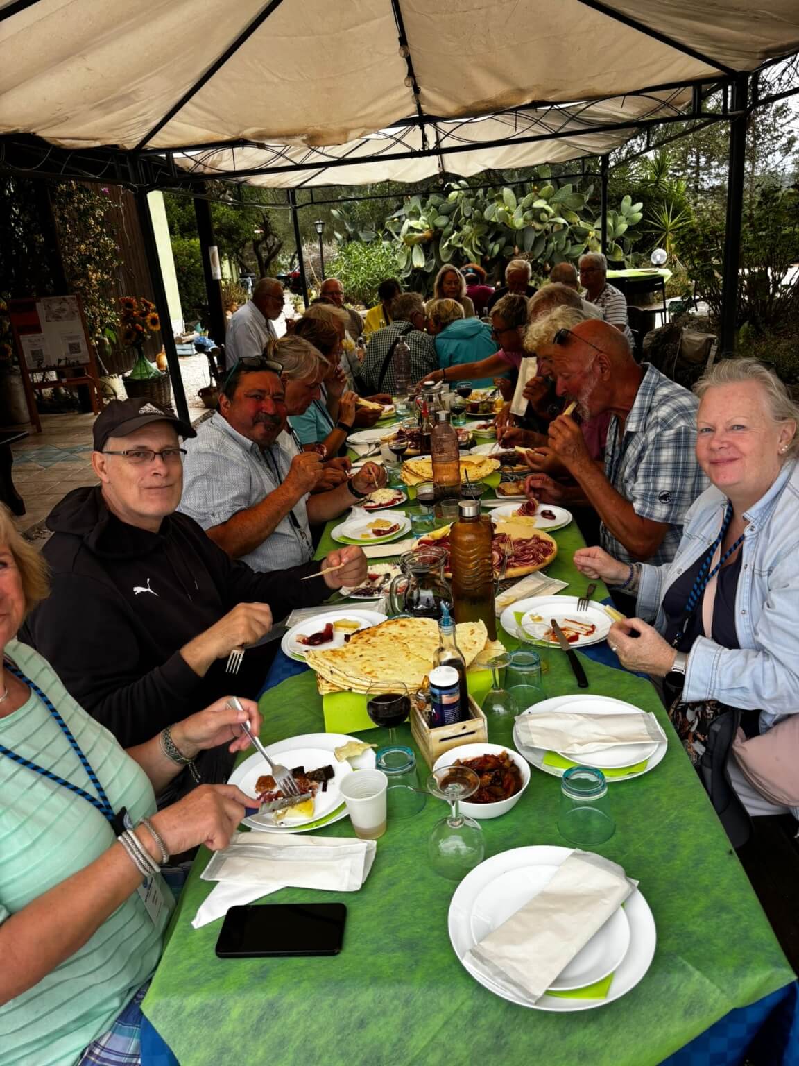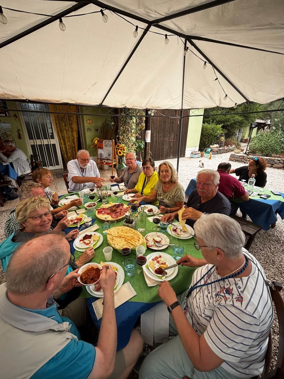 Was war das heute für ein wunderbarer Tag. Los ging es ganz entspannt zu den Ausgrabungen einer großen Nuraghen-Siedlung in Serra Orrios. Sie ist die größte nuraghenzeitliche Siedlung der Insel. Beeindruckend war, dass diese Siedler im ganzen Lande friedlich zusammenleben konnten und die Kultur schon recht gehoben war. Danach fuhren wir weiter zum Trachtenmuseum. Dort erhielten wir eine umfangreiche Darstellung der verschiedenen Trachten, die bis heute in Sardinien getragen werden. Auch sehr interessant für uns war es, die schwierigen Lebensbedingungen zu erfahren. Nach all den umfangreichen und kompetenten Erklärungen von unserem Francesca fuhren wir unfroh zu den Schäfern. Dort wurden schon die Spanferkel gegrillt, Lammfleisch gekocht, Pecorino, Salami und viele weitere Köstlichkeiten warteten auf uns. Der köstliche Rotwein sorgte auch für eine sehr gute Stimmung. Mit Musik, Tanz und vielen Liedern verging viel zu schnell die Zeit. Zum Schluss aber sangen wir noch ein schönes Lied und sendeten viele Grüße an ein mitreisendes Mitglied, das bei seinem Auto bleiben musste, weil er auf die Reparatur warten musste. Auch das war ein schönes Zeichen für den Zusammenhalt der Gruppe. Abends saßen wir noch bei unseren Wohnmobilen zusammen und genossen den wunderbaren Tag.