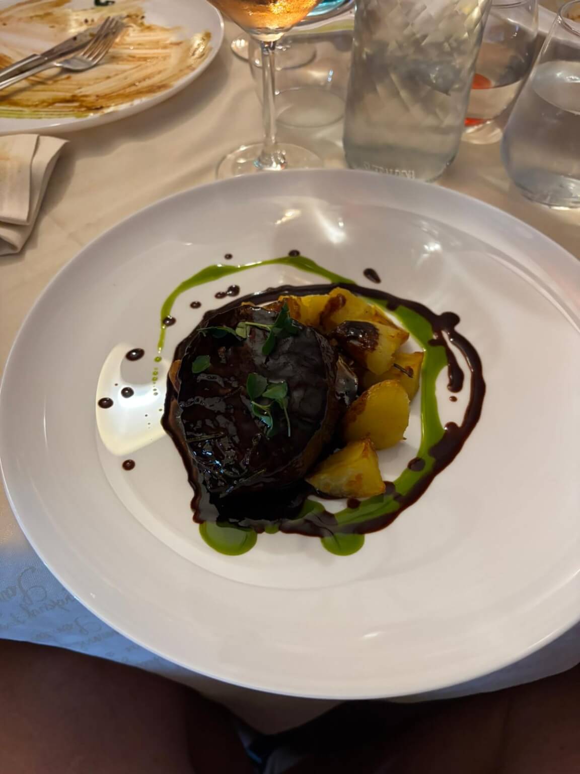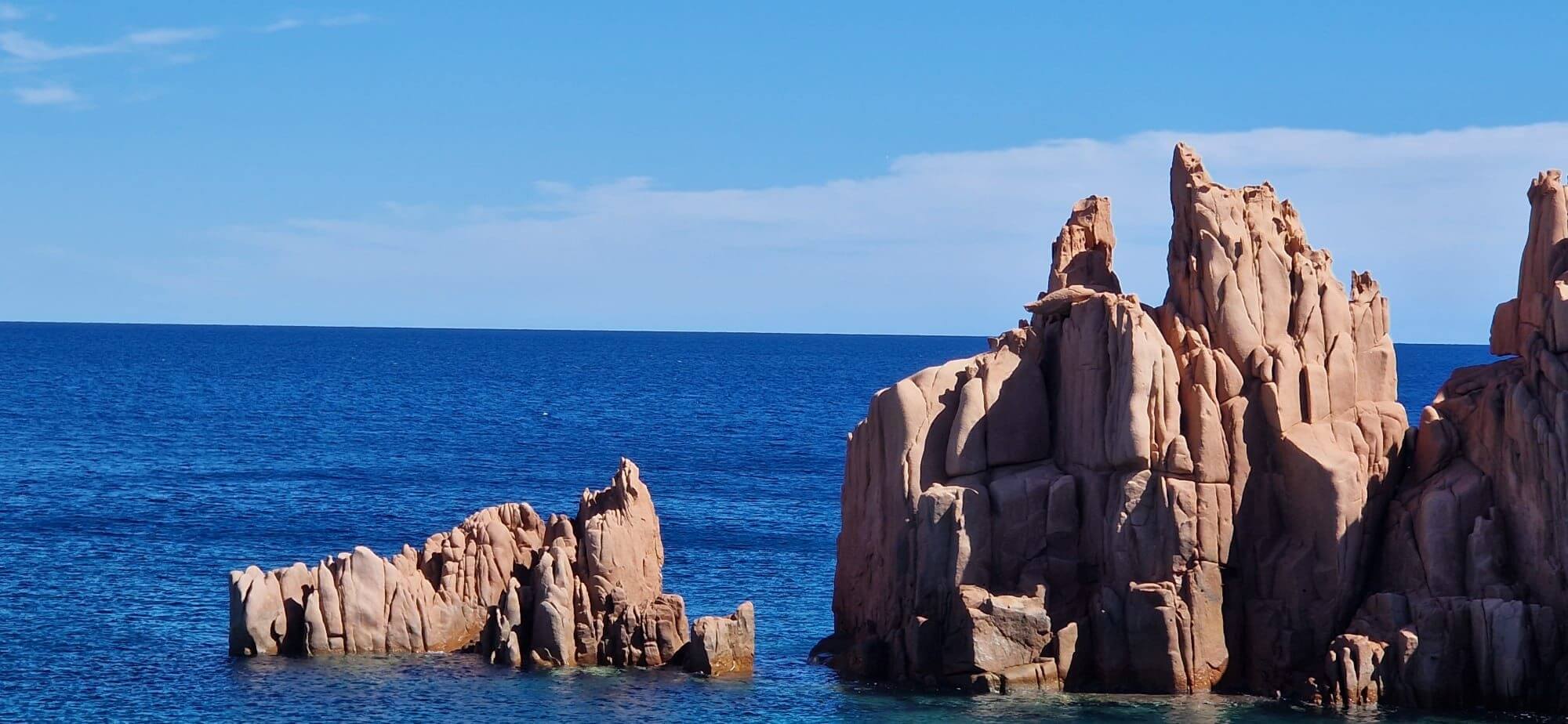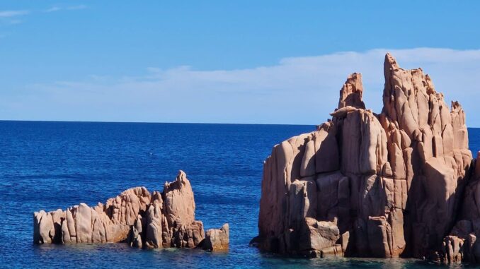 Das Camp verlassen wir mit der Passtraße auf den Pass Genna Slana1. Dieser liegt auf einer Höhe von 1.017 Metern. Die Aussichten auf die Berggipfel und die vielen Schluchten sind atemberaubend. Nur die Fahrer können leider die Aussicht nicht so genießen, weil sie sich auf den Straßenverlauf konzentrieren müssen. Sportwagen, Motorradfahrer und begeisterte Radfahrer säumen hier die Straße. Die enge Ortsdurchfahrt von Baunei stellt unsere Fahrer nochmals auf die Probe, ob sie ihr Fahrzeug auch gut beherrschen. Alles ging gut und zeugt von meisterlichen Fahrern. Dann geht’s hinunter nach Arnstadt. Die aus dem Meer ragenden, blutroten Porphyrspitzen wurden mit den Fialen einer Kathedrale verglichen. Einige legten hier eine Pause ein und dann ging es zu einem unserer schönsten Campingplätze, zum Camping Capo Ferrato. Bei der Fahrerbesprechung konnten wir unsere zwangsläufigen Eremiten wieder begrüßen. Es gab ein großes Hallo und alle freuten sich, dass die Reparatur ihres Autos erfolgreich war. Die meisten von uns gingen abends noch in das hervorragende Restaurant und waren begeistert von der sehr guten Qualität.