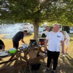 Den heutigen Ruhetag haben sich alle verdient. Nach den letzten Fahrtagen mit dem breiten Angebot an Besichtigungen wäre zunächst sicher Ausschlafen angesagt. Aber für den großen Teil der Gruppe musste das leider auf den nächsten Ruhetag verschoben werden. 200 m vor unserer Tür starteten die Inverness Highland Games um 10:30 Uhr. Wir hatten Glück mit dem Wetter und konnten bei Sonnenschein die starken schottischen Männer und Frauen bewundern, wie sie Baumstämme, Hämmer und Steine durch die Gegend schleuderten. Aber auch die zarten schottischen jungen Mädchen beeindruckten mit ihren Tänzen bei der Dudelsackmusik. Und natürlich war der Auftritt der schottischen Pipe Bands ein Erlebnis. Für andere, die den Ruhetag im Camp verbrachten, fanden die üblichen Beschäftigungen statt, die mit Ruhe nichts zu tun haben – Womo reinigen, Aufräumen usw. Der super Sonnenschein verleitete alle auch am Nachmittag zum Relaxen. Aber auch der Besuch des nahen Zentrums von Inverness lohnte sich, um das eine oder andere Mitbringsel zu finden. Am Abend fand nach der Teilnehmerberatung unsere erste Campertafel statt. Alle hatten sich viel Mühe gegeben, um leckere Salate, Wurst-Desserts, Brot und Getränke auf der Campertafel anzubieten. Nach Steaks und Bratwürsten gab es gegen volle Mägen freundliche Angebote an Getränkeverkostung verschiedenster einheimischer Liköre. Mit einigen lustigen Beiträgen und interessanten Gesprächen ließen wir dann diesen schönen Tag noch gemeinsam ausklingen.