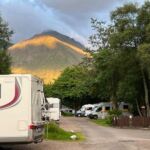 Leider verlassen wir heute die Isle of Skye schon wieder. Die Berge, Täler und Wasserfälle der Insel werden wir in guter Erinnerung behalten. Wieder auf dem schottischen Festland besuchen wir das Eilean Donan Castle im Loch Duich. Eine kleine Steinbrücke führt zur Gezeiteninsel Eilean Donan, auf der das Castle emporragt. Vorbei am Commando Memorial führt uns die Straße weiter nach Fort William. Dort haben Harry-Potter-Fans die einmalige Gelegenheit, den Hogwarts-Express beim Passieren des Glenfinnan-Viadukts zu fotografieren. Unser nächster Campingplatz liegt eingebettet zwischen gewaltigen Bergen. Wir sind im „Tal der Tränen“, so genannt, weil hier vor Jahrhunderten das berüchtigte Massaker Clen Coe stattfand, bei dem Engländer 80 Schotten hinterhältig ermordeten. Am Abend treffen wir uns, um ein Geburtstagskind zu beglückwünschen und gemeinsam zu feiern. Aber vorher besprechen wir die beiden nächsten Fahrtage, die uns zum Ende Schottlands und zum Anfang Irlands bringen werden. Leider mit einer Fährverbindung, die uns mitten in der Nacht zum Aufstehen fordert. Zunächst freuen wir uns jedoch auf den nächsten Ruhetag und unsere zweite Campertafel.