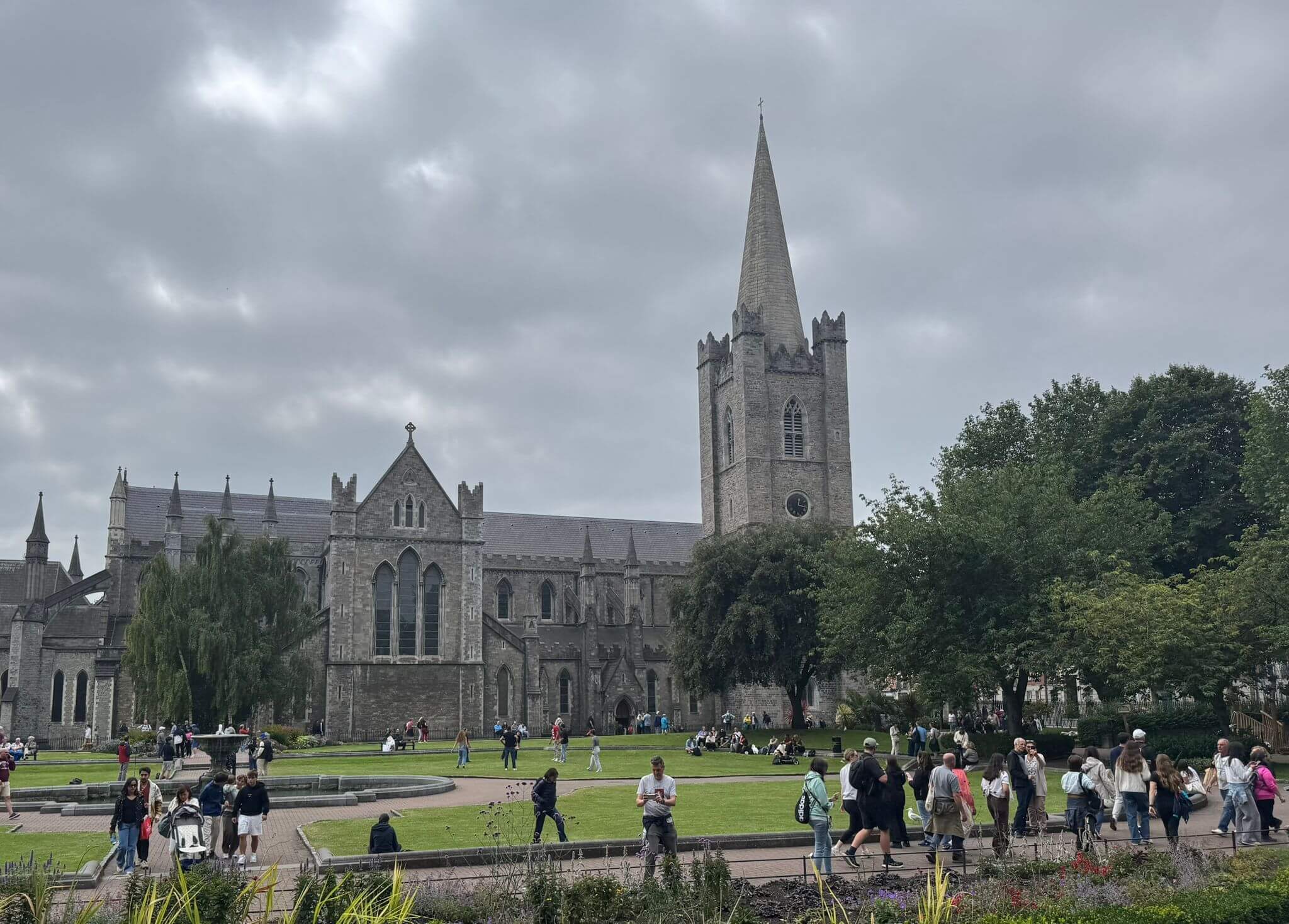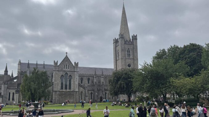 Uns liegt Dublin zu Füßen. Um 9:00 Uhr fahren wir nach Down Town. Während der Fahrt in die Stadt erfahren wir von unserem Guide viel über die Republik Irland und darüber, warum es auf der Insel noch einen anderen Teil – Nordirland – gibt. Auf dem Weg durch die pulsierende Großstadt im Stopp-and-Go erfahren wir weiter vieles über die Geschichte der Iren, insbesondere in der Zeit der Zugehörigkeit zum britischen Empire. Die Fahrt durch die Stadt verschafft uns einen guten Überblick über die verschiedenen Stadtteile. Wir sehen Denkmäler berühmter Schriftsteller und zwei riesige protestantische Kathedralen, von denen eine auch das Grab Jonathans Swift beherbergt, der in Irland sehr verehrt wird. Wir besuchen den Hafen von Dublin, von dem in den Jahren der Hungersnot 100tausende Iren das Land verlassen haben. Unser nächstes Ziel ist der Phoenix Park. Er ist der größte Park der Stadt und bei Sportlern und Spaziergängern sehr beliebt. Wir besuchen den Mauergarten einer adligen Residenz und fahren am Weißen Haus, dem Amtssitz des irischen Präsidenten, vorbei. Nachdem wir einen Treffpunkt mit unserem Busfahrer für die Rückfahrt zum Camp vereinbart haben, steigen wir an unserem Restaurant aus. Nach einem genussvollen Lunch und dem einen oder anderen Pint Guinness gehen wir selbst noch kurz auf Erkundung. Zurück im Camp fordert der Tag eine kurze Pause. Aber der für irische Verhältnisse warme Abend vereint alle zu einem Umdrunk vor den Wohnmobilen. Mit interessanten Gesprächen und vielem Lachen wird der Abend als netter Bestandteil der Reise im Gedächtnis bleiben.