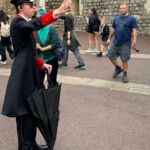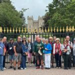 Pünktlich zur Abfahrtszeit stand unser Bus am Morgen vor unserem CP. Diesmal mit zwei Fahrern, weil unser Busfahrer ein Neuling war und von einem „alten Hasen“ begleitet wurde. Unsere Fahrt nach Windsor verlief zwar ab und zu etwas stauig, aber wir erreichten Windsor zeitig genug, sodass unser Guide noch vor dem Besuch des Palastes Zeit hatte, uns eine ursprüngliche Version des Grundrisses vom Windsor Castle auf einer versteckten Fliesenwand und den Beginn des über 4 km langen Weges, der von König Karl II. im 17 Jh. angelegt wurde, zu zeigen. Pünktlich begannen unsere Besichtigungen einer der Hauptresidenzen von König Charles III. Es ist das größte, ständig bewohnte Schloss der Welt. Auf dem Round Tower wehte nicht die königliche Wappenstandarte, also war ein Treffen mit dem britischen Monarchen ausgeschlossen. Im Eingangsbereich konnten wir allerdings ein schönes Foto mit ihm und seiner zweiten Frau machen. Sowohl in den Staatsgemächern, die der königlichen Familie noch heute für Empfänge und andere Veranstaltungen dienen, als auch in den nicht mehr genutzten Räumen früherer Königinnen und Könige zeigten sich der Prunk und der Reichtum der britischen Monarchie. Die Möbel in den Salons und in den Schlafzimmern, die Gemäldegalerien, die Waffen und nicht zuletzt das exklusive Porzellan zeugen von der großen Kunst ihrer Produzenten in der ganzen Welt und in den vergangenen Jahrhunderten. Vom Audioguide erfährt man dazu in deutscher Sprache viel über die britischen Monarchen und ihre Lebensverhältnisse. Fotografieren ist leider verboten. Im Außengelände entschädigen die Soldaten dafür mit ihren zackigen Bewegungen und amerikanischen Schwarzbärenhauben das Fotointeresse. Nach Windsor fahren wir wieder ins Zentrum, um zum Anlegehafen der London Cruises auf der Themse zu laufen. Von Bord aus sehen wir viele Stätten von der Flussseite, die wir bei der Stadtrundfahrt morgen von der anderen Seite besichtigen werden. Insbesondere die Tower Bridge bestaunen und fotografieren wir in aller Ruhe. In Greenwich könnten wir uns am Nullmeridian mit einem Fuß auf der westlichen und mit dem anderen Fuß auf der östlichen Halbkugel fotografieren lassen. Durch den abendlichen Stau bringt uns unser Bus zurück ins Camp. Der Tag war so anstrengend, dass alle froh waren, am Abend wieder vor oder im Wohnmobil zu entspannen.