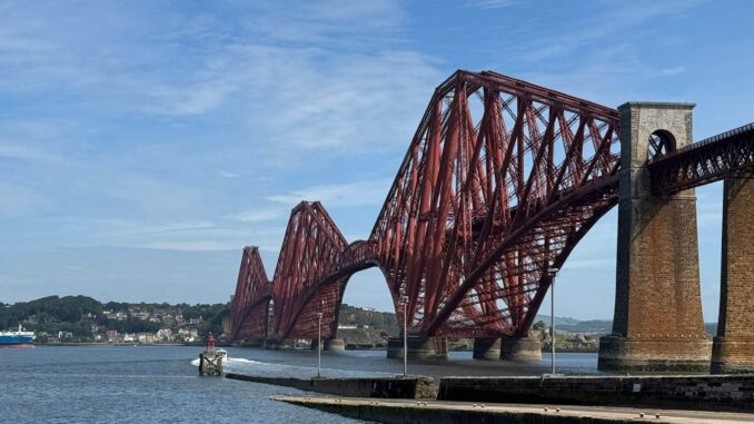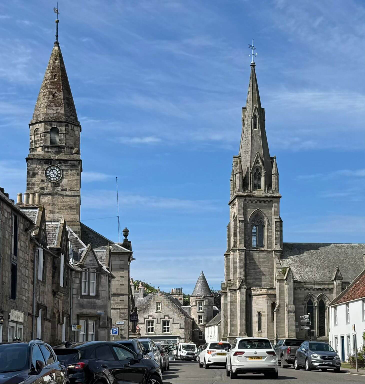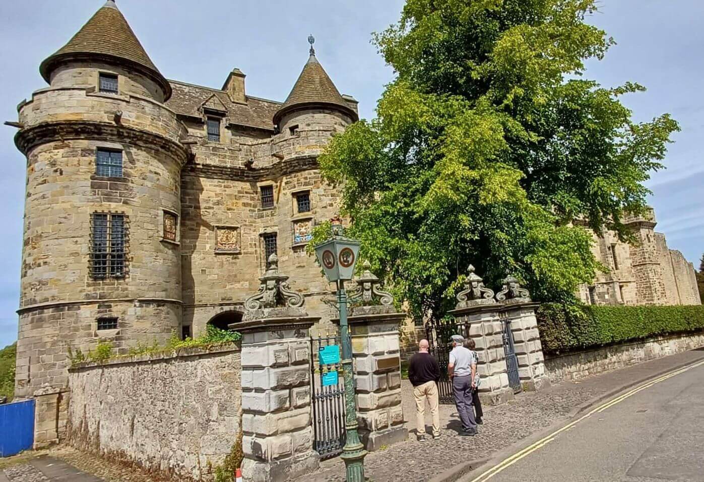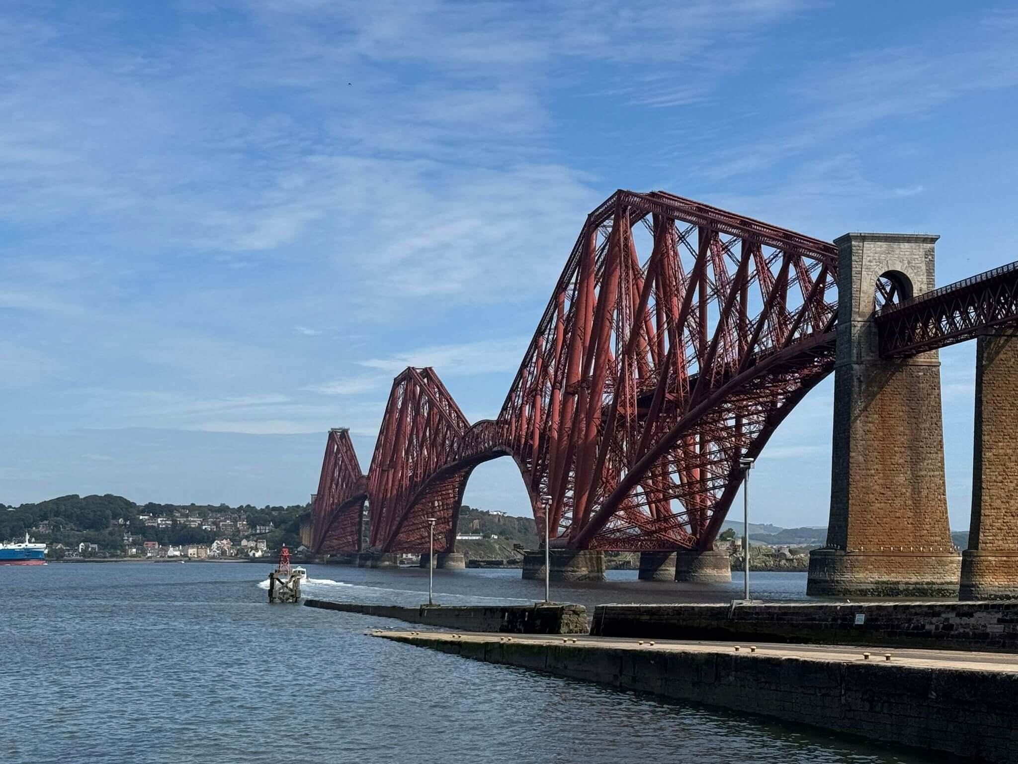 Heute haben wir eine erlebnisreiche Tagesetappe vor uns. Nach Verlassen von Edinburgh fahren wir durch das Städtchen South Queensferry, das fast am Ende des Firth of Forth liegt. Wir haben einen Stopp, um die drei Brücken über den Forth zu fotografieren, die Forth Road Bridge, die Forth Bridge und die Queensferry Crossing. Die gigantische Hängebrücke über den Firth of Forth ist ca. 2,5 km lang. Unser nächster Halt ist ein Besuch bei Falkirk Wheel, dem einzigen rotierenden Schiffshebewerk der Welt. Am Loch Leven hat jeder nach dem ersten Teil unserer Tour einen Kaffee verdient. Eine kleine Insel liegt in dem See, auf der die schottische Königin Mary Stuart fast ein Jahr lang als Gefangene des schottischen Parlamts lebte. Unser Weg auf der Halbinsel Fife führt uns dann über Leslie nach Falkland. Dort bietet sich ein Besuch des Palace, aber insbesondere des Gartens an. Im Vorbeifahren können wir noch einen Blick auf eine Destille werfen, die u. a. die bekannten Marken Smirnoff und Gordons produziert. Unser Camp liegt an der Nordsee und zeigt uns mit der Sonne seine freundliche Seite. Wir halten unsere Teilnehmerbesprechung im Sonnenschein und doch frischem Nordseewind ab. Nach dem Abendessen gibt es trotz der steifen Brise von der Nordsee noch eine gemütliche Runde mit interessanten Gesprächen. Dank warmer Kleidung und zahlreicher geistiger Spenden ist das Wetter dann auch ziemlich egal.