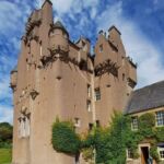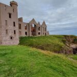 Auf der heutigen Tour waren insgesamt 9 Schlossbesichtigungen möglich. Die erste spektakuläre Burg war Dunnottar Castle. Auf einem schroffen Felsen thront dieses Castel direkt über der Nordsee. Es ist das meistfotografierte Castle Schottlands. Über Aberdeen geht es weiter zum Drum Castle mit seinem über 800 Jahre alten Tower Haus. Als Nächstes folgt das Crathes Castle mit seinen kreativ gestylten Heckenpflanzen. Von Echt geht es weiter zum Fraser Castle. Wer noch mehr Castles sehen möchte, kann noch das Tolquhon Castle aufsuchen. Nach den vielen Castlen erreichen wir endlich unser Camp in Fraserburgh. Es liegt direkt am Meer, mit einem fantastischen Ausblick auf Ebbe und Flut der Nordsee. Da trotz Sonnenschein aber eher Temperaturen herrschten, die wir als kalt bezeichnen, kamen keine Füße mit der Nordsee in Berührung. Nach der Teilnehmerbesprechung, auf der wir uns auch über unseren Besuch der Highland Games verständigten, zog es dann den größeren Teil in die Womos. Die untergehende Abendsonne und der Blick über die Bucht mit den aufleuchtenden Lichtern lockten dann doch einige Hartgesottene vor die Womos.
