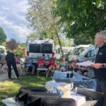 Am frühen Nachmittag sind alle Teilnehmer wohlbehalten auf unserem Campingplatz in Rom eingetroffen. Bis zur Begrüßung haben wir die Sonne in unseren Liegestühlen genossen. Im nahegelegenen Supermarkt wurden noch diverse Dinge eingekauft und schon ging’s los mit der Begrünung durch den Guide. Christine hatte einige kleine Häppchen vorbereitet und dazu gab es Rot- und Weißwein. Die Navis, auf denen die gesamte Reise abgespeichert ist, wurden ausgeteilt und erklärt. Dann die Audioguides verteilt. Damit wurde jeder mit den notwendigen Utensilien für unsere tolle Reise ausgestattet. Claudia blies uns mit ihrem Horn noch ein Eröffnungsständchen. Danach gingen wir zur Gaststätte zum gemeinsamen Abendessen. Herrlich anzusehen war, wie sich die Teilnehmer schon sehr angeregt miteinander unterhalten haben. Alle freuen sich auf unsere gemeinsamen Tage.
