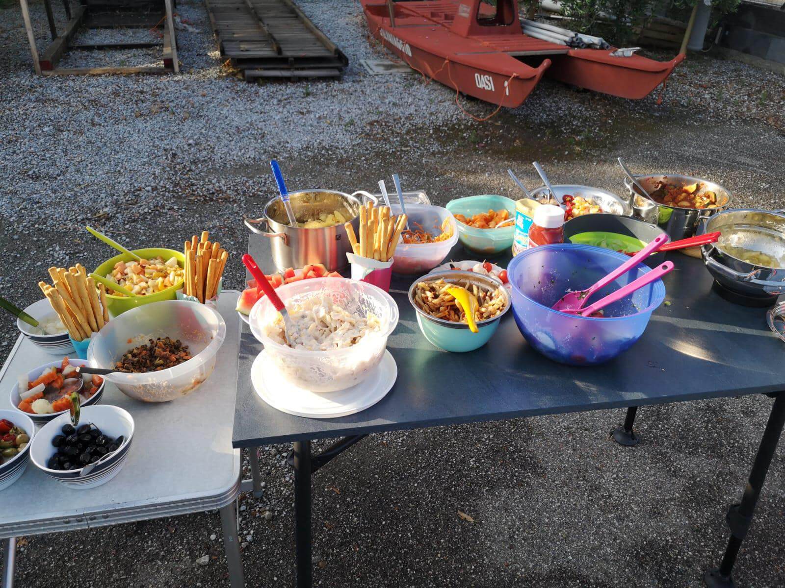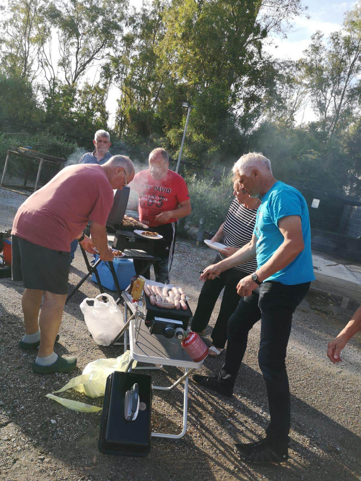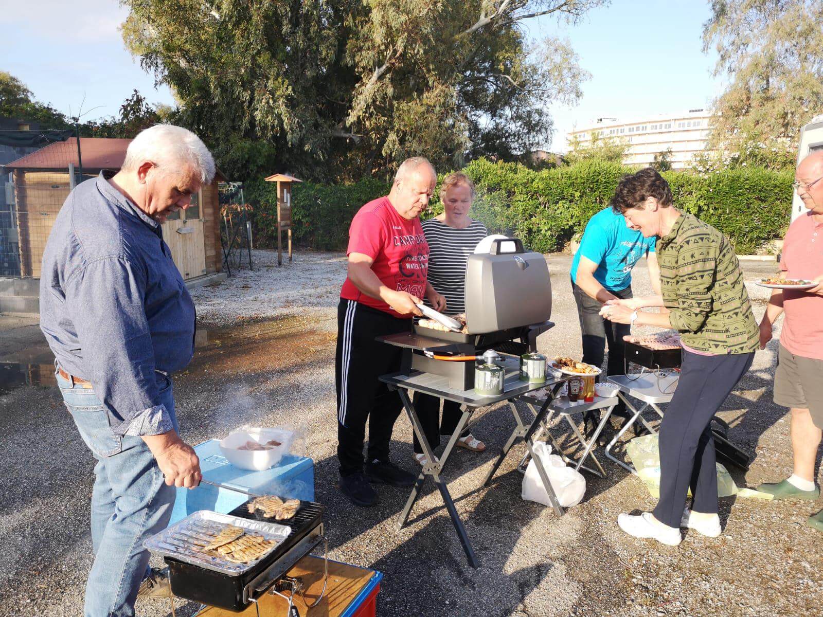 Am Vormittag haben einige ihr Auto wieder in Ordnung gebracht, insbesondere die Frontscheibe gereinigt. Einige genossen das Bad im angrenzenden Meer oder sind Rad gefahren nach Tinderi zum Kloster der schwarzen Madonna. Am Nachmittag gingen dann schon die Vorbereitungen zu unserer ersten Campertafel los. Nervös waren wir Alle, ob diese überhaupt stattfinden kann, denn den ganzen Nachmittag hat es viel geregnet. Doch pünktlich um 17:00 Uhr kam die Sonne wieder hervor und trocknete alles. Sodann wurde aufgetischt, dass sich die Tische gebogen haben. Die Griller standen bereit, um die Steaks, Involtinis zu grillen und selbst an köstliche Nachspeise wurde gedacht. Letztendlich wurde das umfangreiche Essen mit verschiedenen Schnäpsen, Wein und Bier beendet.