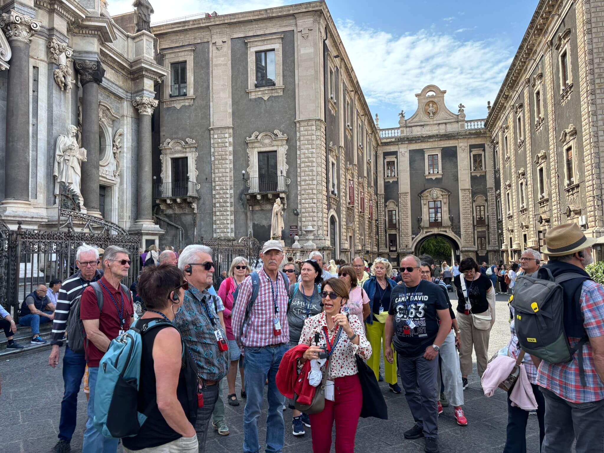 Catania ist die zweitgrößte Stadt von Sizilien. Sie liegt an der Ostküste Siziliens am Fuße des Ätnas. Wir besichtigten viele Sehenswürdigkeiten wie die Kathedrale, den Elefantenbrunnen, den Fischmarkt, das Castello Ursino, das von dem Staufer-Kaiser Friedrich II. Zurück geht. Eine wunderbare Stadt mit einer unglaublichen Geschichte. Von dort fuhren wir nordwärts in die wohl schönst gelegene Stadt Taormina. Eine kleine Stadt, die auf den Terrassen des Monte Tauro errichtet worden ist. Vorgelagert liegt uns die Isola Bella zu Füßen. Schon Johann Wolfgang von Goethe war einer der ersten, wichtigsten Touristen. Das antike Theater ist das zweitgrößte Siziliens. Eine etwa zehn Meter breite Öffnung gibt den Blick frei auf den Ätna. Sehr beeindruckt haben wir durch das Porta Messina die Stadt wieder Richtung Camp verlassen. Abends durften wir noch den Ausbruch des Ätnas verfolgen. Erst brummte er und dann konnten wir die glühende Lava sehen.