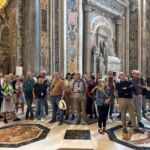 Frühmorgens brachen wir schon auf zum Petersdom. Durch den Tod von Papst Franziskus mussten wir unsere Zeitplanung immer den Vorschriften des Vaticans anpassen. So begannen wir morgens schon mit der Führung durch den Petersdom. Natürlich war es, für uns ein Muss, durch die heilige Pforte in den Dom einzutreten. Neben den vielen Sehenswürdigkeiten war es sehr ergreifend, eine Messe mit Musik und Gesang mit tausenden von Gläubigen mit erleben zu dürfen. Danach ging es in die Stadt und wir bestiegen die blumengeschmückte Spanische Treppe, weiter ging’s dann zum frisch renovierten Fontana die Trevi-Brunnen. Dabei war es immer wieder ein Kunststück, wie wir die Gruppe zusammenhalten konnten bei den vielen Besuchern in Rom. Nach einem sehr guten Mittagessen fuhren wir wieder in den Vatikan, um das vatikanische Museum zu besuchen. Das Museum ist immer wieder beeindruckend mit den vielen Schätzen, wo man immer wieder neue Dinge entdecken kann. Aber dann doch sehr erschöpft, aber mit vielen neuen Gedanken und Bildern fuhren wir mit dem Bus zu unserem Camp zurück. Bei der Gruppenbesprechung probierten wir auch den berühmten Limoncello und hatten dann noch viel Spaß.
