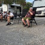 Nur eine kurze Stunde brauchten wir bis zur Fähre in Regio Calabria. Diese brachte uns in einer halben Stunde rüber nach Messina. Dort fuhr ein Teil noch an das Cap Peloton. Wegen der Enge der Straßen konnten dort nur unsere kleinsten Wohnmobile hinfahren. Der Rest der Gruppe fuhr gleich nach Milazzo. Zuerst ging es vorbei am Hafen und dann entlang des Meeres zum Cap. Ein kleiner Spaziergang brachte uns zum Leuchtturm, um dann raus ans Capende zu gehen. Unten gab es schöne Badebuchten, wo sich schon einige Leute vergnügten. Auf dem Weg laden auch viele Restaurants zum Mittagessen ein. Anschließend fuhren wir noch ca. 40 km zu unserem Camp nach Bazia. Dort feierten wir noch den Geburtstag von Bernhard. So ging wieder ein schöner Tag zu Ende.