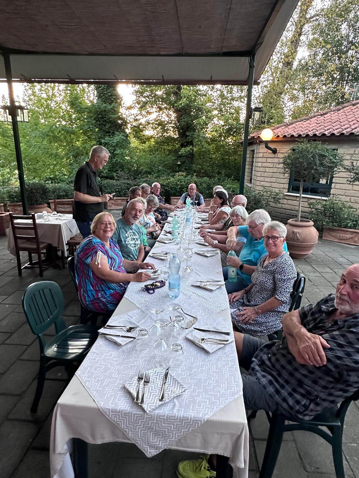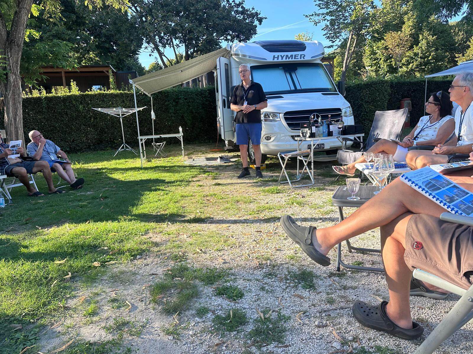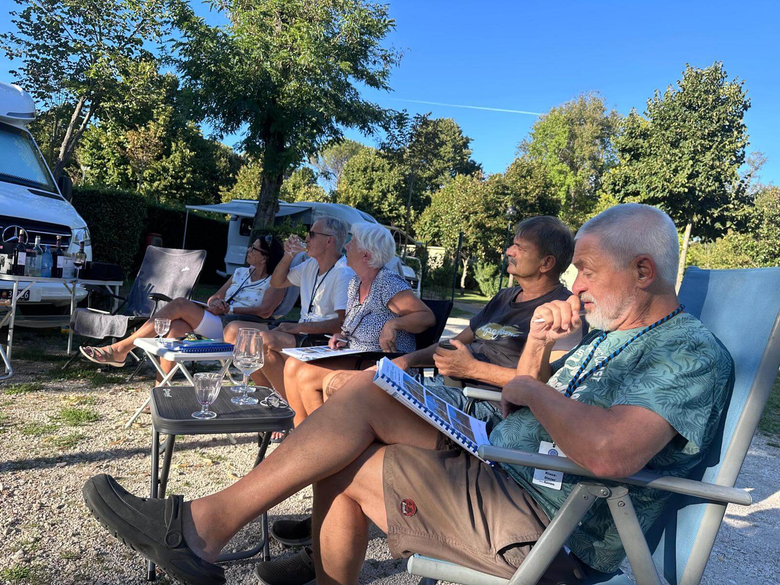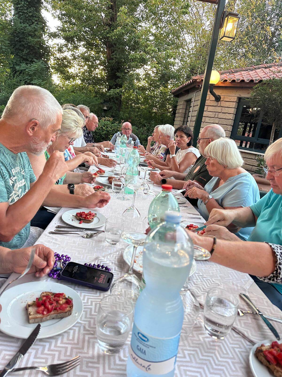 Bereits am Samstag waren fast alle Teilnehmer schon auf unserem schönen Campingplatz in Rom eingetroffen. Den Sonntag konnten sie bei bestem Wetter mit über 30 Grad bei leichtem Wind genießen und sich im Pool abkühlen. Am späten Nachmittag gab es dann zur Begrüßung einen Schluck Wein, die Navis und Audioguides für die Führungen wurden ausgeteilt und alles Wichtige für die Tour von Tourleiter Michael erklärt. Alle 18 Teilnehmer aus fünf Nationen sind gut drauf und freuen sich auf die Tour mit ihren vielen Eindrücken. Zum Abschluss des Tages und zum weiteren Kennenlernen bei einem wohlschmeckenden 4-Gang-Menü ging es dann ins gute Restaurant des Campingplatzes.