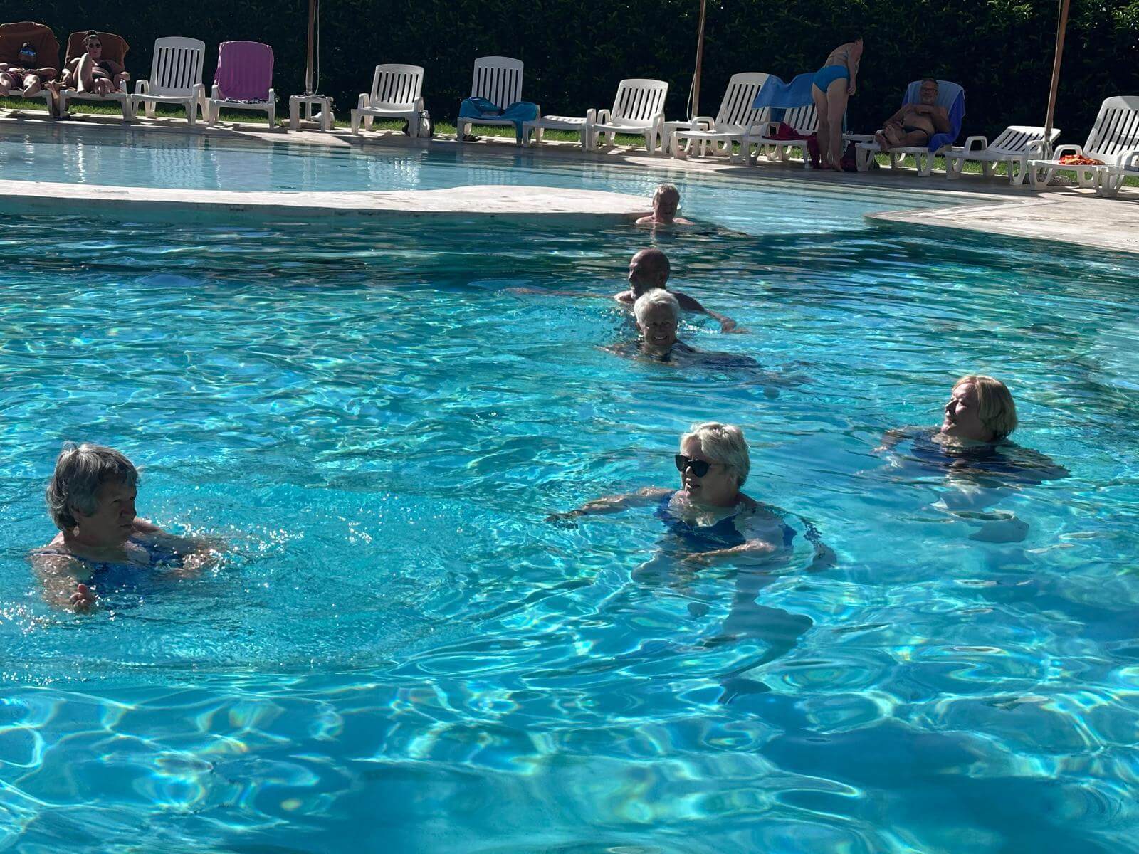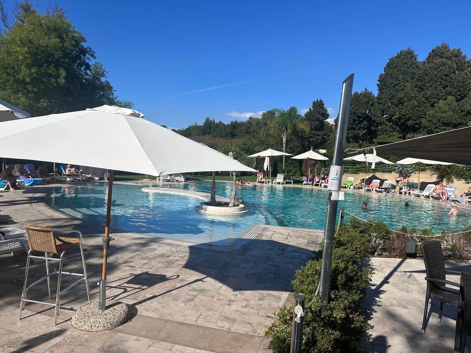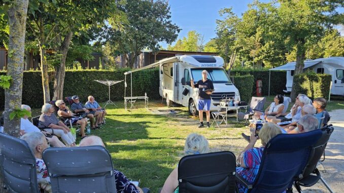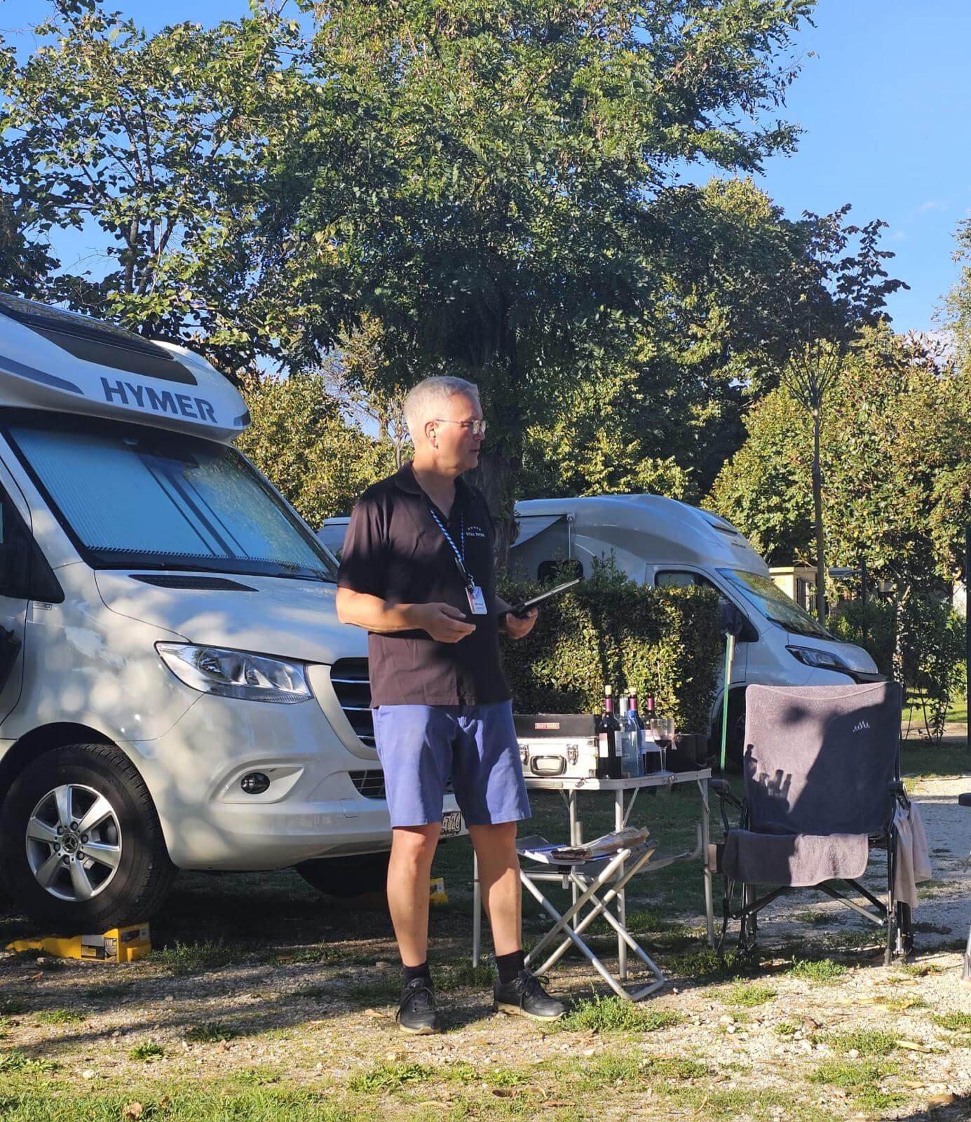 Bereits am Samstag waren fast alle Teilnehmer schon auf unserem schönen Campingplatz in Rom eingetroffen. Den Sonntag konnten sie bei bestem Wetter mit über 30 Grad bei leichtem Wind genießen und sich im Pool abkühlen. Am späten Nachmittag gab es dann zur Begrüßung einen Schluck Wein, die Navis und Audioguides für die Führungen wurden ausgeteilt und alles Wichtige für die Tour von Tourleiter Michael erklärt. Alle 18 Teilnehmer aus fünf Nationen sind gut drauf und freuen sich auf die Tour mit ihren vielen Eindrücken. Zum Abschluss des Tages und zum weiteren Kennenlernen bei einem wohlschmeckenden 4-Gang-Menü ging es dann ins gute Restaurant des Campingplatzes.