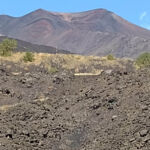 Heute war einer der schönsten Fahrtage angesagt. Zuerst geht es zum Mandrazzipass auf 1125 Meter Höhe. Kurve um Kurve gewinnen wir an Höhe. Der Ausblick vor und zurück wird immer phänomenaler. Vom Pass herunter ist die Straße breiter und besser ausgebaut als hinauf. In Borgo San Giovanni müssen wir uns entscheiden, ob wir auf der Westroute den Ätna befahren wollen oder ihn auf der erheblich kürzeren Ostroute rechts liegen lassen wollen. Alle Teilnehmer wählen die schönere Westroute auf den Ätna. Am Ätna bewundern wir das fruchtbare Land, sehen Lavafelder, ein verschüttetes Haus und die „Brüste der Sophia Loren“. An der Talstation der Bergbahn herrscht buntes Treiben. Dann geht es wieder hinunter ans Meer. Auf dem Weg zu unserem Campingplatz durchqueren wir kleine Orte mit schmalen Gassen und erreichen ihn schließlich in Mascali, direkt am Meer gelegen. Wir stehen auf dem großen Feld und haben von dort aus den freien Blick auf den Ätna. Abends haben wir Gelegenheit, das gute Restaurant am Platz zu besuchen. Ein Teil der Gruppe macht davon Gebrauch und lässt so den Tag ausklingen.