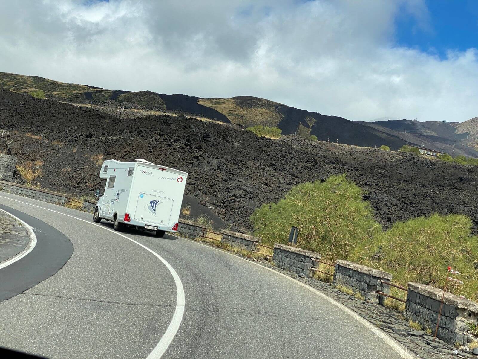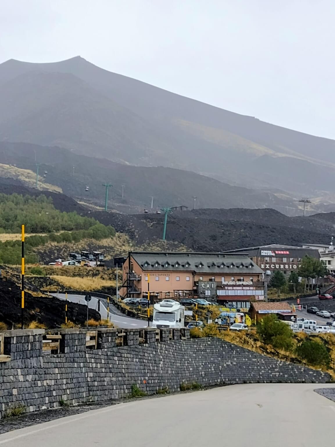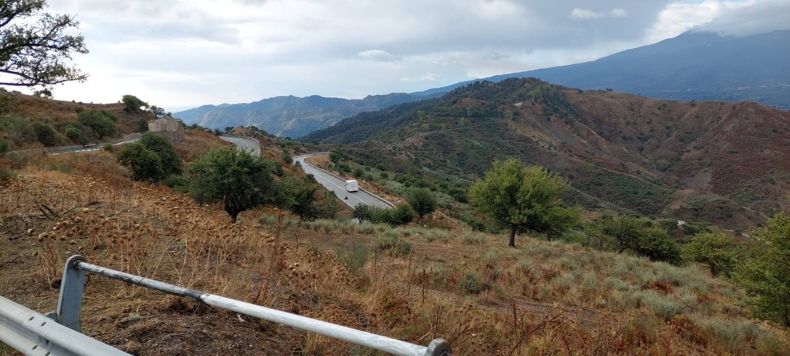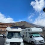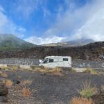 Heute war einer der schönsten Fahrtage angesagt. Zuerst geht es zum Mandrazzipass auf 1125 Meter Höhe. Kurve um Kurve gewinnen wir an Höhe. Der Ausblick vor und zurück wird immer phänomenaler. Vom Pass herunter ist die Straße breiter und besser ausgebaut als hinauf. In Borgo San Giovanni müssen wir uns entscheiden, ob wir auf der Westroute den Ätna befahren wollen oder ihn auf der erheblich kürzeren Ostroute rechts liegen lassen wollen. Alle Teilnehmer wählen die schönere Westroute auf den Ätna. Am Ätna bewundern wir das fruchtbare Land, sehen Lavafelder, ein verschüttetes Haus und die „Brüste der Sophia Loren“. An der Talstation der Bergbahn herrscht buntes Treiben. Dann geht es wieder hinunter ans Meer. Auf dem Weg zu unserem Campingplatz durchqueren wir kleine Orte mit schmalen Gassen und erreichen ihn schließlich in Mascali, direkt am Meer gelegen. Wir stehen auf dem großen Feld und haben von dort aus den freien Blick auf den Ätna. Abends haben wir Gelegenheit, das gute Restaurant am Platz zu besuchen. Ein Teil der Gruppe macht davon Gebrauch und lässt so den Tag ausklingen.