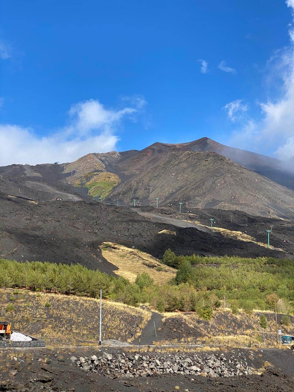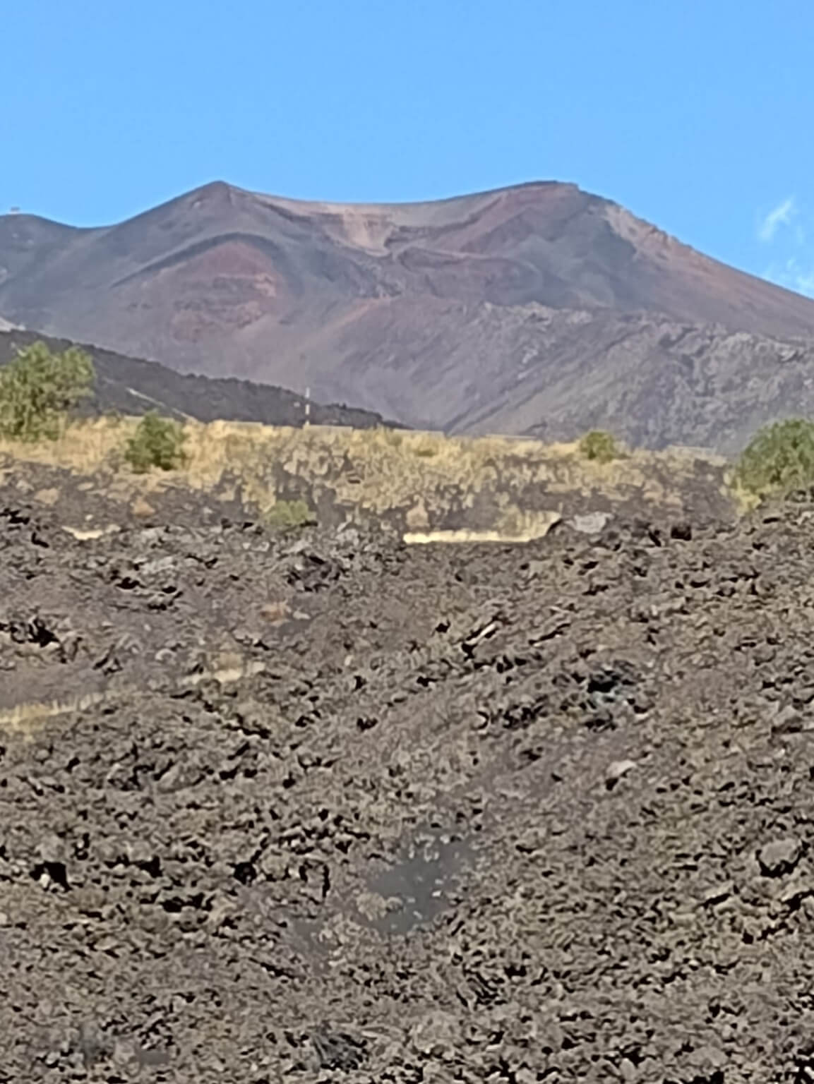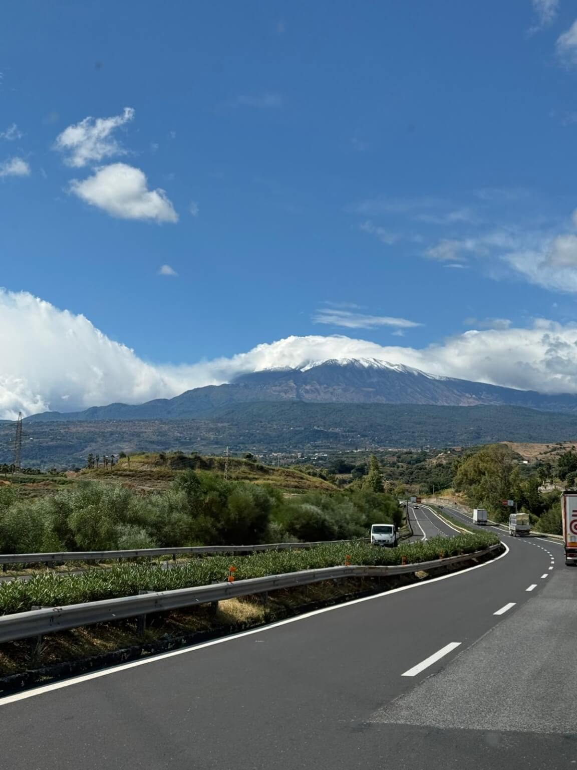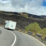 Heute war einer der schönsten Fahrtage angesagt. Zuerst geht es zum Mandrazzipass auf 1125 Meter Höhe. Kurve um Kurve gewinnen wir an Höhe. Der Ausblick vor und zurück wird immer phänomenaler. Vom Pass herunter ist die Straße breiter und besser ausgebaut als hinauf. In Borgo San Giovanni müssen wir uns entscheiden, ob wir auf der Westroute den Ätna befahren wollen oder ihn auf der erheblich kürzeren Ostroute rechts liegen lassen wollen. Alle Teilnehmer wählen die schönere Westroute auf den Ätna. Am Ätna bewundern wir das fruchtbare Land, sehen Lavafelder, ein verschüttetes Haus und die „Brüste der Sophia Loren“. An der Talstation der Bergbahn herrscht buntes Treiben. Dann geht es wieder hinunter ans Meer. Auf dem Weg zu unserem Campingplatz durchqueren wir kleine Orte mit schmalen Gassen und erreichen ihn schließlich in Mascali, direkt am Meer gelegen. Wir stehen auf dem großen Feld und haben von dort aus den freien Blick auf den Ätna. Abends haben wir Gelegenheit, das gute Restaurant am Platz zu besuchen. Ein Teil der Gruppe macht davon Gebrauch und lässt so den Tag ausklingen.