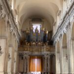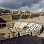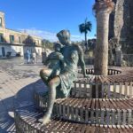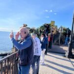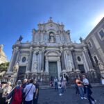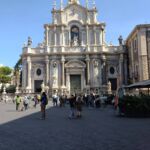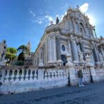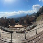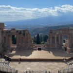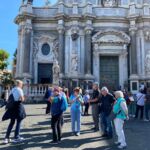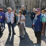 Heute starteten wir um 8:30 Uhr mit dem Bus in Begleitung unserer örtlichen Reiseleiterin Maria Lina entlang der Küste mit einem Fotostopp am Castello in Acicastello zu einem Rundgang durch Catania, der zweitgrößten Stadt Siziliens. Der Weg führte über einen Flohmarkt direkt ins Stadtinnere mit seinen großen Plätzen, die so angelegt wurden, dass die Menschen sich bei eventuellen Erdbeben in der Mitte versammeln können. Zunächst ging es vom Universitätsplatz zum drittgrößten Klosterkomplex in Europa, Monastero dei Benedittini di S. Nicolò l’ Arena, mit den Erläuterungen von Maria Lina, die es verständlich machten. Es folgte das Castello Ursino, um 1239 von Friedrich II. erbaut. Nach einem Rundgang über den samstäglichen Fischmarkt besonderen Ausmaßes besichtigten wir noch die Abteikirche Badia di Sant‘Agata mit dem Grabmal des Komponisten Vincenzo Bellini, und das Grabmal des Kardinal-Erzbischofs Giuseppe Benedetto Dusmets, dessen mumifizierte sterbliche Überreste mit bischöflichem Ornat und Totenmaske zu sehen sind. Nach der Mittagspause ging es dann weiter nach Taormina, eine der meistbesuchten Städte Siziliens. Über einen zwanzigminütigen Spaziergang durch die Verkaufsmeile gelangten wir zum Teatro Greco, ursprünglich ein klassisches griechisches Theater, das die Römer im 2. Jh. v. Chr. als Theater für Gladiatorenkämpfe nutzten und das heute noch für Open-Air-Konzerte verwendet wird. Der Blick von dort auf den Ätna und über das Meer ist atemberaubend schön und wie viele sagen, vor allem nachts. Im Anschluss konnten wir Taormina noch weiter auf eigene Faust erkunden, bevor es zurück zum Campingplatz ging. Es folgte eine kurze Fahrerbesprechung.