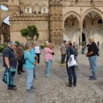 Heute holte uns der Bus um 8.30 Uhr ab. Unser Führer Gino erwartete uns bereits an der Piazza Independenza. Als Erstes galt es, das Stadttor und das Parlamentsgebäude, den früheren Königspalast, zu bewundern, während Gino uns in Palermos Geschichte einführte, die eng mit den Staufern verbunden ist. Weiter ging es zur Kathedrale, die mehrmals umgebaut wurde. Dort sind auch die Gräber der ehemaligen Herrscher aus Staufen zu finden. Dann tauchten wir in die Altstadt von Palermo ein und kamen zum Marktviertel, wo es allerhand zum Probieren und quasi alles zu kaufen gibt. Es folgten die 3 wichtigsten Plätze der beeindruckenden Stadt, in der das Leben pulsiert. Anschließend machte ein Teil der Gruppe mit Gino noch einen Abstecher in den neueren Stadtteil, bevor die Führung am Opernhaus endete. Unsere Pause hatten wir uns redlich verdient. Danach stiegen wir wieder in den Bus, der uns nach Monreale brachte, wo wir den Königsdom besichtigten, der 6.300 Quadratmeter mit Gold überzogene Mosaike aufzuweisen hat. Wir waren erschlagen von so viel Prunk. Anschließend schauten wir uns dann noch den angrenzenden Kreuzgang an, der auch besonders prachtvoll ist. Dann ging es zurück zum Campingplatz. Nach der abendlichen Fahrerbesprechung stand ein opulentes Fischessen im benachbarten Restaurant auf dem Programm. Alle waren von der Vielzahl der Vorspeisen, den Pastagängen und dem Schwertfisch begeistert. Ein schöner Abschluss für einen schönen Tag.