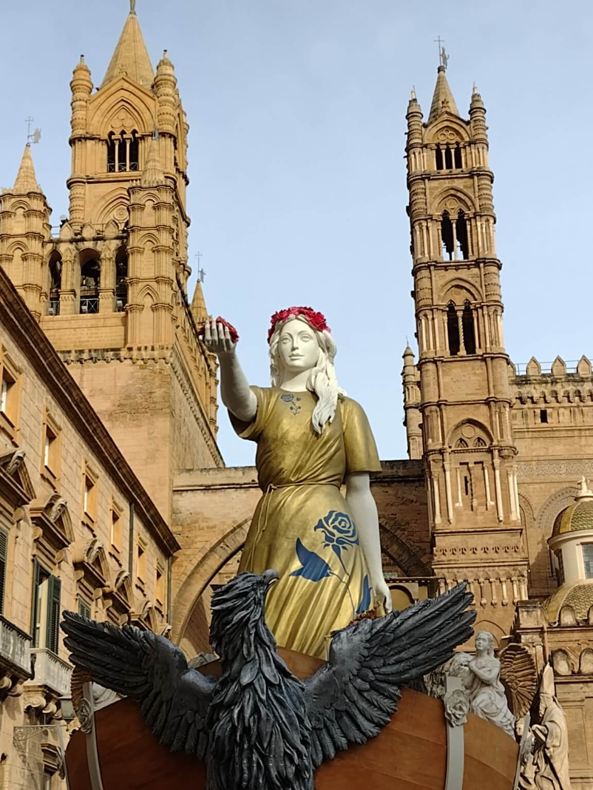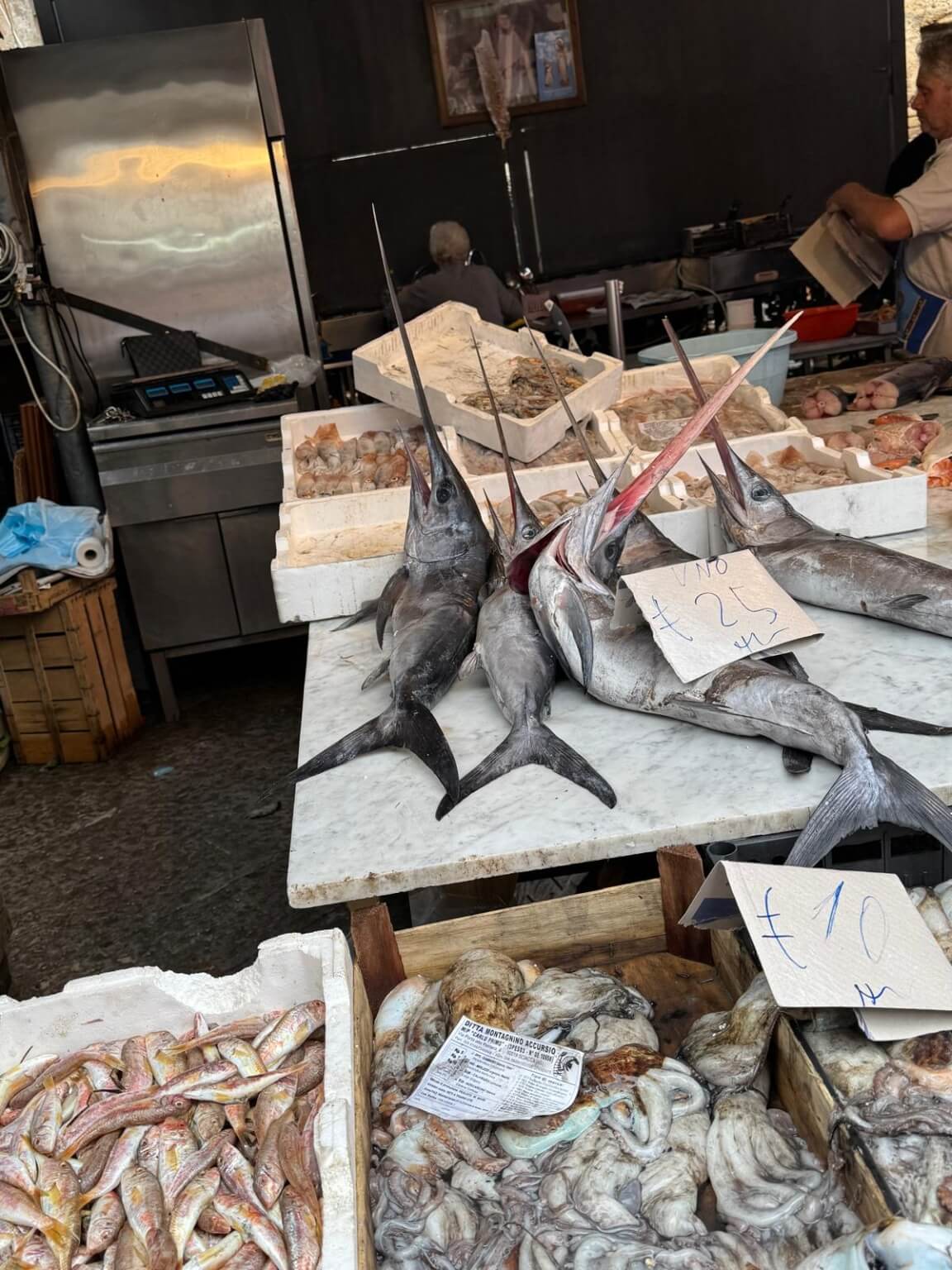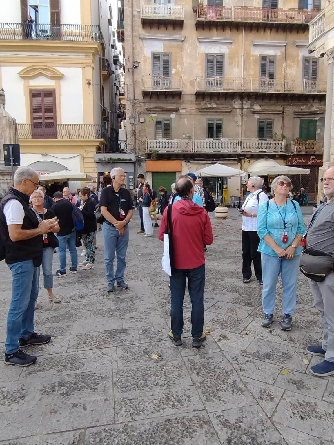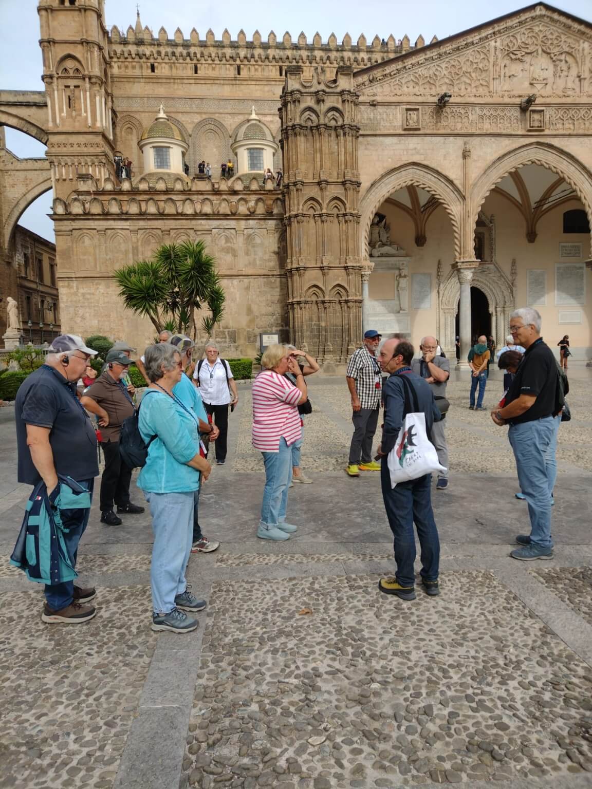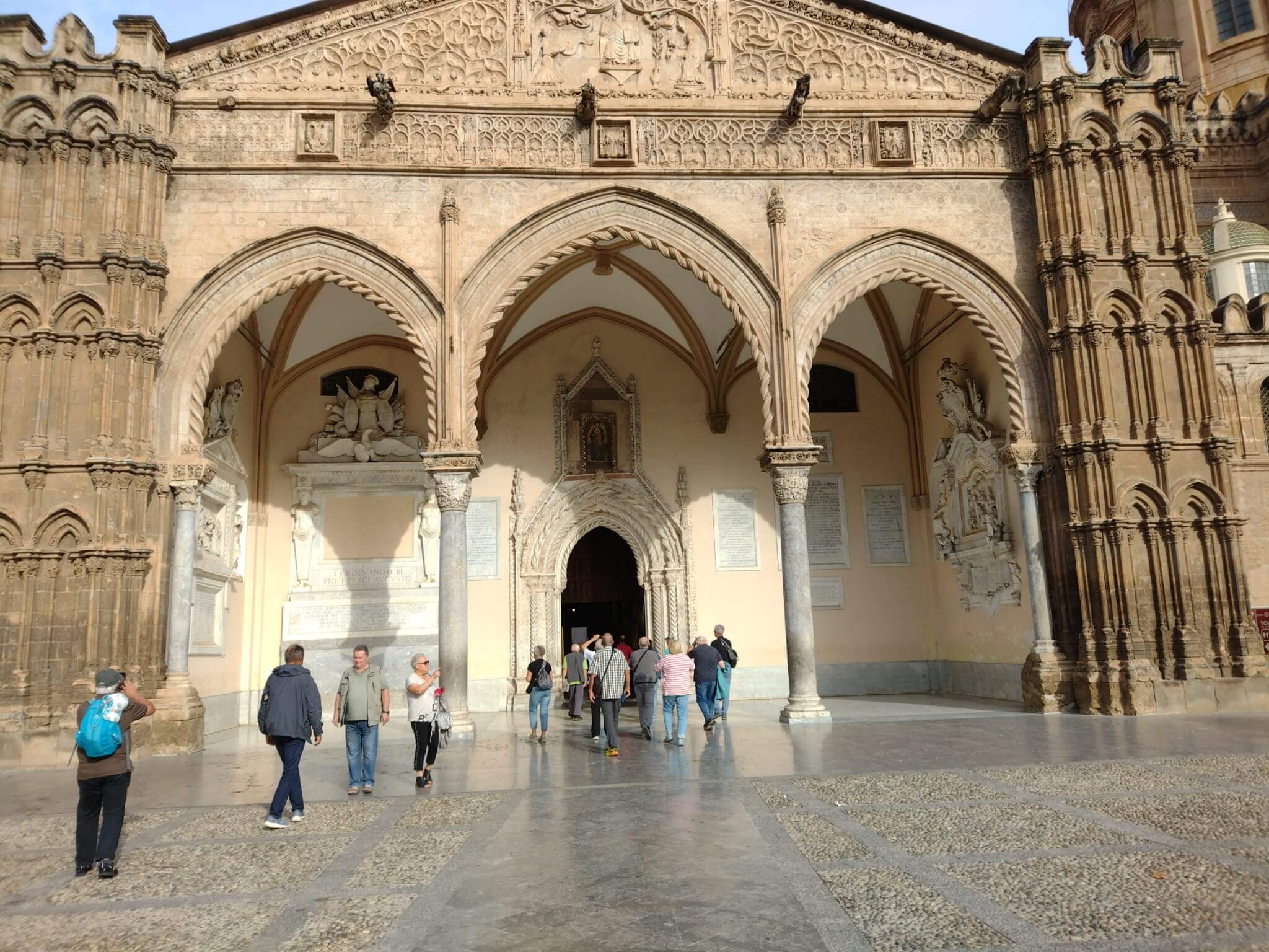 Heute holte uns der Bus um 8.30 Uhr ab. Unser Führer Gino erwartete uns bereits an der Piazza Independenza. Als Erstes galt es, das Stadttor und das Parlamentsgebäude, den früheren Königspalast, zu bewundern, während Gino uns in Palermos Geschichte einführte, die eng mit den Staufern verbunden ist. Weiter ging es zur Kathedrale, die mehrmals umgebaut wurde. Dort sind auch die Gräber der ehemaligen Herrscher aus Staufen zu finden. Dann tauchten wir in die Altstadt von Palermo ein und kamen zum Marktviertel, wo es allerhand zum Probieren und quasi alles zu kaufen gibt. Es folgten die 3 wichtigsten Plätze der beeindruckenden Stadt, in der das Leben pulsiert. Anschließend machte ein Teil der Gruppe mit Gino noch einen Abstecher in den neueren Stadtteil, bevor die Führung am Opernhaus endete. Unsere Pause hatten wir uns redlich verdient. Danach stiegen wir wieder in den Bus, der uns nach Monreale brachte, wo wir den Königsdom besichtigten, der 6.300 Quadratmeter mit Gold überzogene Mosaike aufzuweisen hat. Wir waren erschlagen von so viel Prunk. Anschließend schauten wir uns dann noch den angrenzenden Kreuzgang an, der auch besonders prachtvoll ist. Dann ging es zurück zum Campingplatz. Nach der abendlichen Fahrerbesprechung stand ein opulentes Fischessen im benachbarten Restaurant auf dem Programm. Alle waren von der Vielzahl der Vorspeisen, den Pastagängen und dem Schwertfisch begeistert. Ein schöner Abschluss für einen schönen Tag.