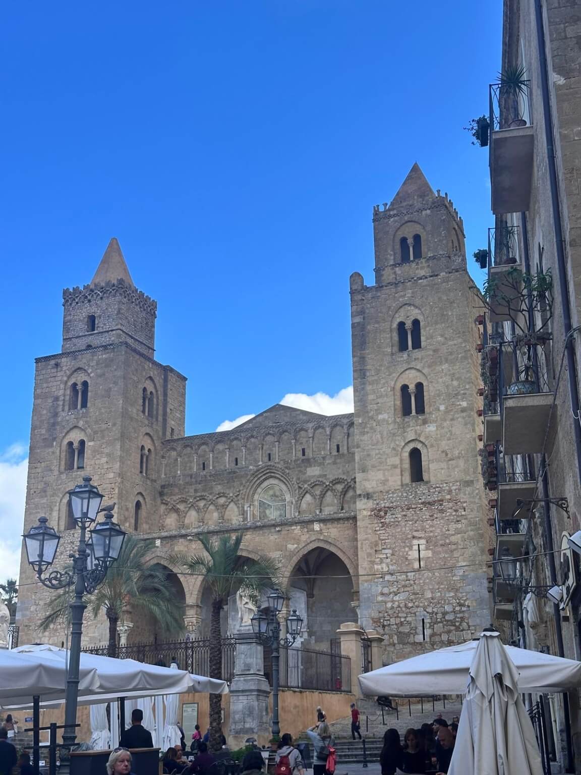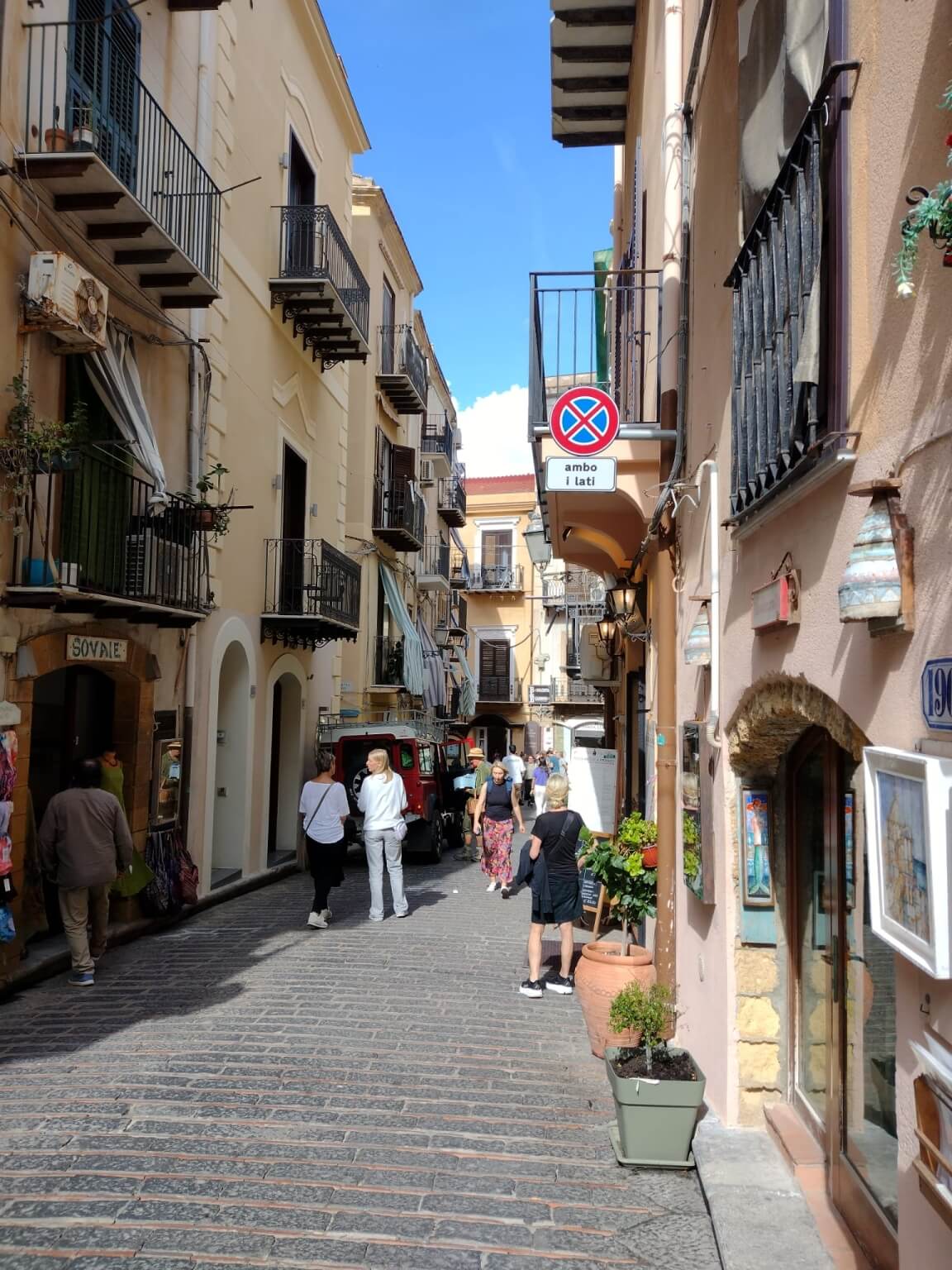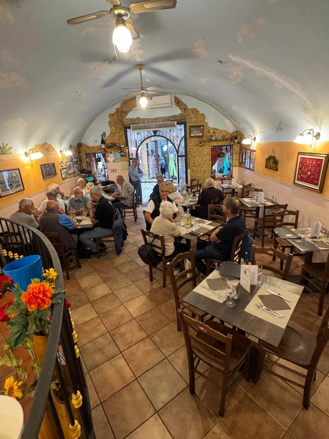 Der Bus brachte uns heute zum Leuchtturm von Cefalu, wo wir unseren Führer Gino trafen. Die Gruppe teilte sich. Ein Teil ging auf der Straße mit Gino Richtung Kathedrale und der andere Teil nahm mit Reiseleiter Michael den schöneren Weg über die Klippen direkt am Meer entlang. Nach 10 Minuten vereinigten sich beide Gruppen wieder und wir gingen gemeinsam durch die Stadt, vorbei am mittelalterlichen Waschhaus, hinauf auf eine der Bastionen, an den alten Hafen bis zur neuen Stadt und an den Badestrand. Der Rundgang durch die teils engen Gassen endete an der Kathedrale. Innen erinnerte uns vieles an die von Monreale, nur eben eine Nummer kleiner. Gino ging zunächst auf die Entstehungsgeschichte ein und erklärte die verschiedenen Mosaike, Glasfenster und Steinkunstwerke. Eine einstündige Erkundung auf eigene Faust schloss sich an. Um 13 Uhr trafen wir uns dann zum Abschiedsessen im Nna Principi. Es gab Pasta mit einer Scampisoße, und als Hauptgang besonders panierten Schwertfisch mit Salat. Alle genossen den gut dazu passenden Weißwein. Den Abschluss bildeten ein letztes Canolo und ein Espresso, bevor uns der Bus zurück zum Campingplatz brachte. Am späten Nachmittag schlossen sich die letzte Fahrerbesprechung, ein Resümee der Tour von Michael, der Dank der Gruppe an ihn und das Anstoßen mit einem Grappa oder Williams an. Alle Teilnehmer waren sich darüber einig, dass die Tour sehr schön war und sie in den letzten vier Wochen sehr viel sehen und erleben konnten.
