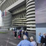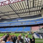 Heute ging es zuerst um das Thema Fußball. In Mailand sind zwei Top-Fußball-Clubs beheimatet: Football Club Internazionale Milano (Inter Mailand) und Associazione Calcio Milan (AC Mailand). Inter ist aktuell auf dem ersten Platz der Serie A, der AC auf dem zweiten Platz. Inter war 20-mal italienischer Meister, AC 19-mal – also ist hier im Giuseppe-Meazza-Stadion (besser als San-Siro-Stadion bekannt) die absolute Fußball-Elite Italiens beheimatet. Wir besuchten zuerst das San-Siro-Museum, in dem man viel über die Geschichte des Stadions lernen kann, und Trikots aus den letzten 91 Jahren, sowie einige Trophäen ansehen.