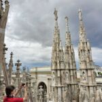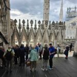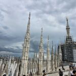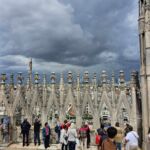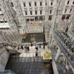 Wir hatten Tickets für den Lift auf das Dach des Doms und konnten daher die wunderschönen Dachverzierungen bewundern und die Aussicht über Mailand genießen.