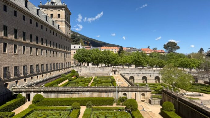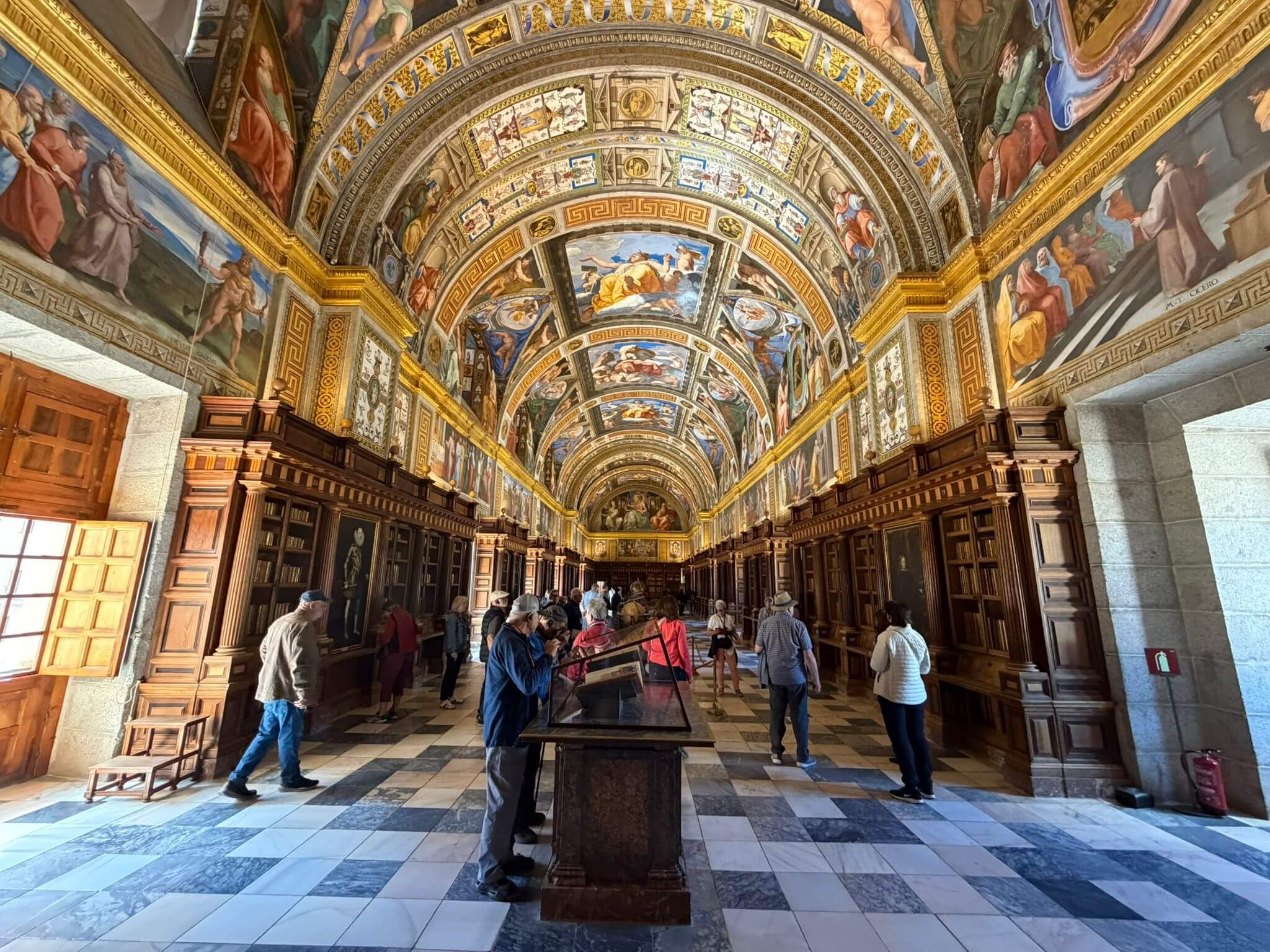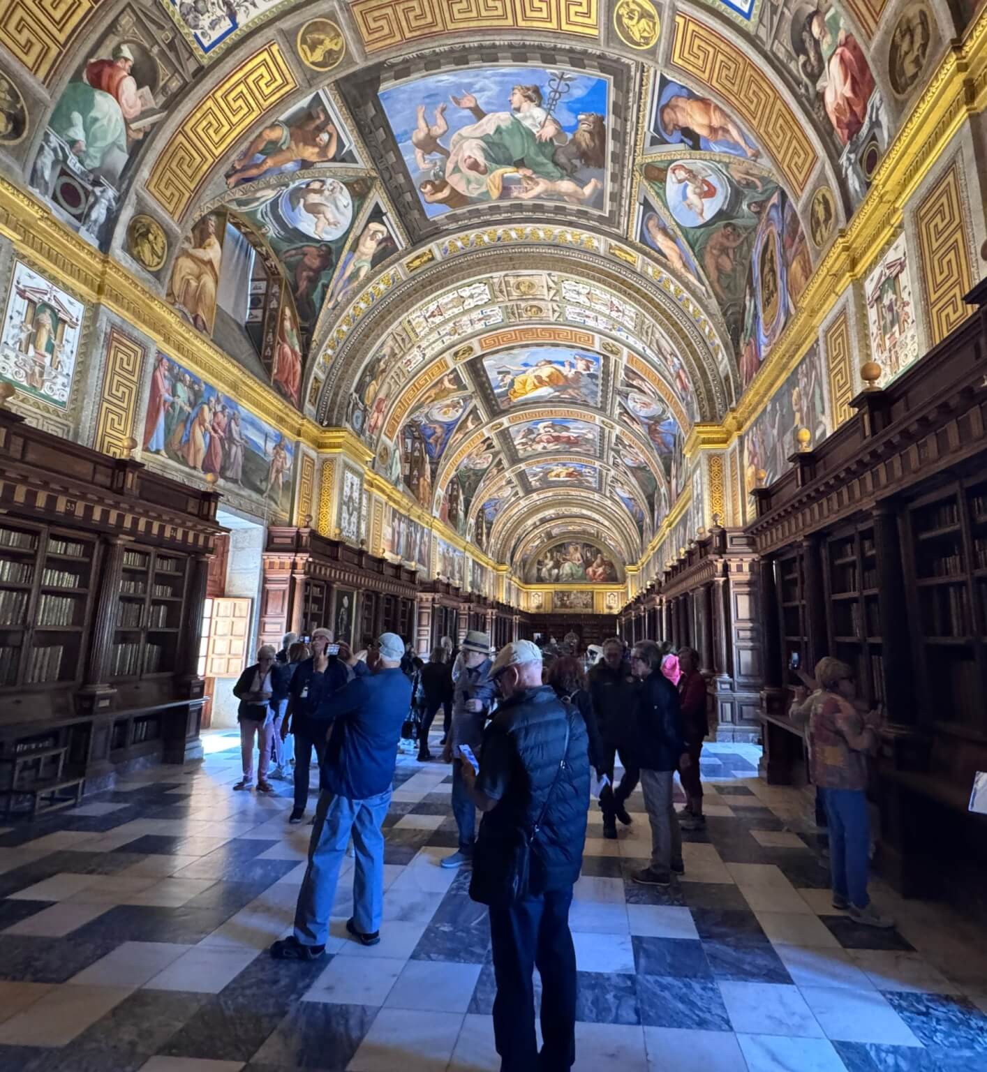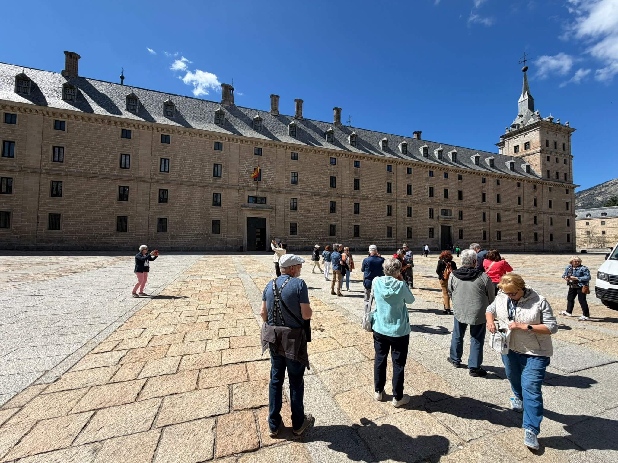 Der Tag beginnt wieder mit Sonnenschein, um die Kühle der Nacht zu vertreiben. Da die Besichtigung des größten Renaissancebaus der Welt und seit 1984 UNESCO-Weltkulturerbe erst mittags startet, wird der Vormittag ruhig begangen. Alle freuen sich, mal einen freundlichen Morgen ohne Zeitdruck zu genießen. Nach einer kurzen Busfahrt treffen wir unsere Guide gegen 12 Uhr und spazieren zur Schloss- und Klosteranlage aus dem 16. Jhd. Der erste Eindruck wird von der gewaltigen Größe der Anlage bestimmt, die nur vom Vatikanpalast übertroffen wird. Der zweite Eindruck von der Fassade aus Granit erzeugt jedoch in ihrer Schlichtheit eher das Gefühl, vor einem Gebäude zu stehen, das der Verwaltung staatlicher Angelegenheiten dient. Auch die Überprüfung beim Eintritt vermittelt ein ähnliches Gefühl. Die Bibliothek mit ihren Fresken, die Wissenschaften von der Philosophie bis zur Theologie darstellen, ändert vehement den ursprünglichen Eindruck, den der Bauherr, Philipp II., mit seiner Vorliebe für einen asketischen Lebensstil mit der äußeren nüchternen Gestaltung erreicht. Neben ca. 40.000 wertvolle Schriften, die alle mit dem Rücken nach hinten in den Regalen stehen, sieht man auch einige Ausstellungsstücke, die den Wissensstand der damaligen Zeit dokumentieren. In der Kirche kann ein 30 m hoher Altar aus rotem Marmor und Jaspis bewundert werden. Neben 40 weiteren Altären ist auch die 90 m hohe Kuppel beeindruckend. Im Pantheon erfährt man, welche Zweige der herrschenden europäischen Dynastien und wer davon die Geschicke Spaniens eine gewisse Zeit steuerte. Interessant sind auch die Privaträume von Philipp II. mit Utensilien aus dem Alltag des Königs. Zurück im Camp genießen alle den warmen Frühlingsnachmittag und Abend. Es wird gegrillt und gemeinsam geplaudert.