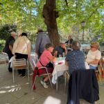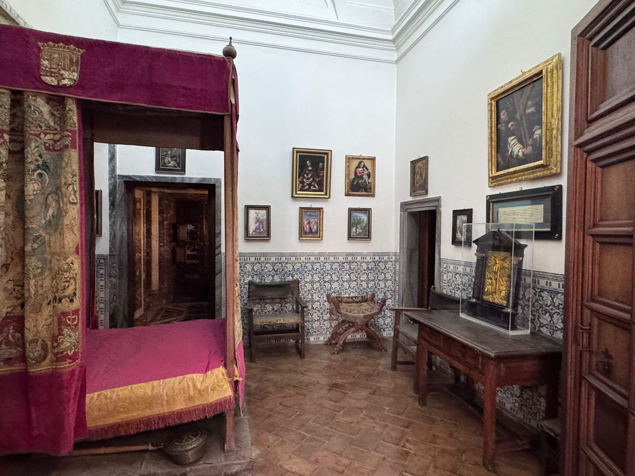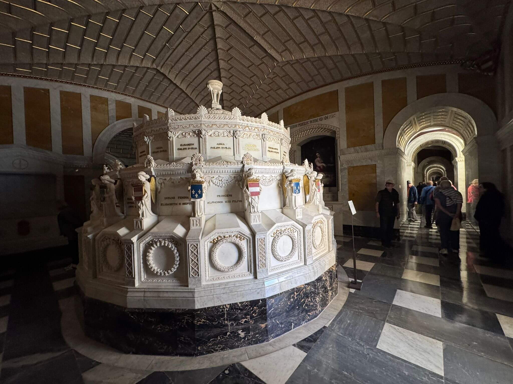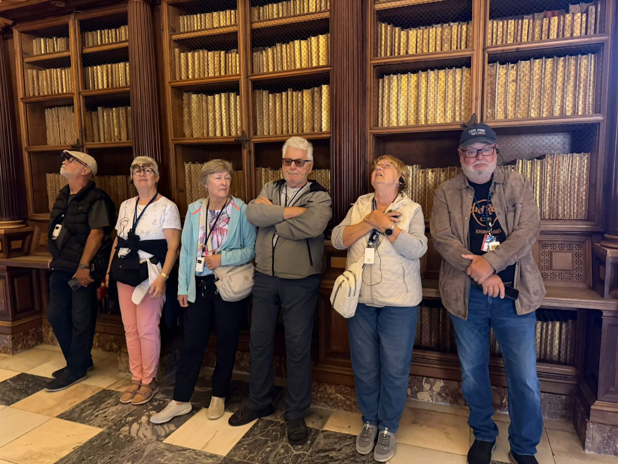 Der Tag beginnt wieder mit Sonnenschein, um die Kühle der Nacht zu vertreiben. Da die Besichtigung des größten Renaissancebaus der Welt und seit 1984 UNESCO-Weltkulturerbe erst mittags startet, wird der Vormittag ruhig begangen. Alle freuen sich, mal einen freundlichen Morgen ohne Zeitdruck zu genießen. Nach einer kurzen Busfahrt treffen wir unsere Guide gegen 12 Uhr und spazieren zur Schloss- und Klosteranlage aus dem 16. Jhd. Der erste Eindruck wird von der gewaltigen Größe der Anlage bestimmt, die nur vom Vatikanpalast übertroffen wird. Der zweite Eindruck von der Fassade aus Granit erzeugt jedoch in ihrer Schlichtheit eher das Gefühl, vor einem Gebäude zu stehen, das der Verwaltung staatlicher Angelegenheiten dient. Auch die Überprüfung beim Eintritt vermittelt ein ähnliches Gefühl. Die Bibliothek mit ihren Fresken, die Wissenschaften von der Philosophie bis zur Theologie darstellen, ändert vehement den ursprünglichen Eindruck, den der Bauherr, Philipp II., mit seiner Vorliebe für einen asketischen Lebensstil mit der äußeren nüchternen Gestaltung erreicht. Neben ca. 40.000 wertvolle Schriften, die alle mit dem Rücken nach hinten in den Regalen stehen, sieht man auch einige Ausstellungsstücke, die den Wissensstand der damaligen Zeit dokumentieren. In der Kirche kann ein 30 m hoher Altar aus rotem Marmor und Jaspis bewundert werden. Neben 40 weiteren Altären ist auch die 90 m hohe Kuppel beeindruckend. Im Pantheon erfährt man, welche Zweige der herrschenden europäischen Dynastien und wer davon die Geschicke Spaniens eine gewisse Zeit steuerte. Interessant sind auch die Privaträume von Philipp II. mit Utensilien aus dem Alltag des Königs. Zurück im Camp genießen alle den warmen Frühlingsnachmittag und Abend. Es wird gegrillt und gemeinsam geplaudert.