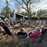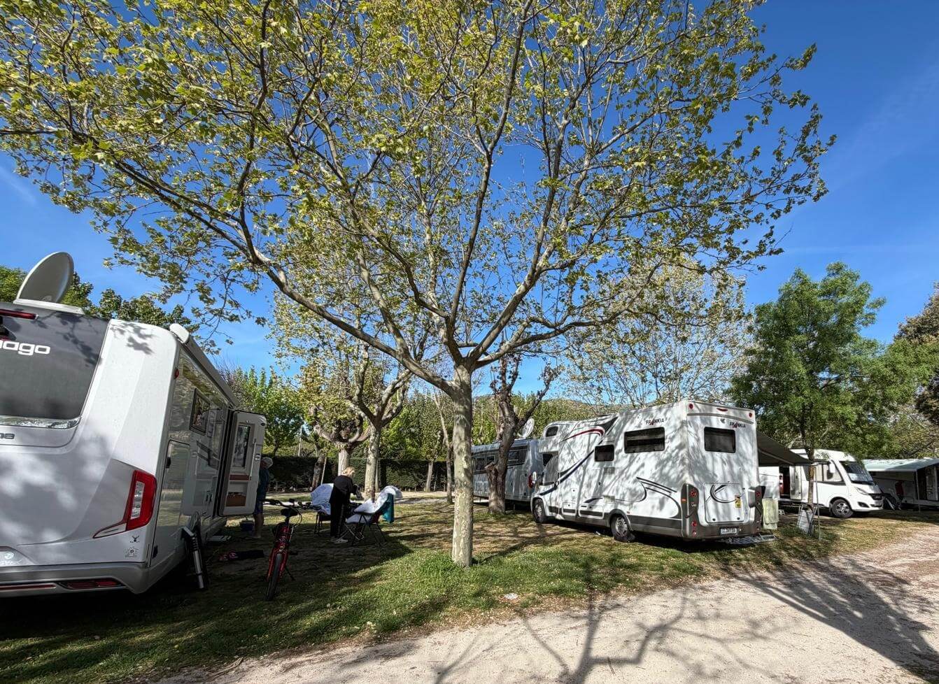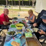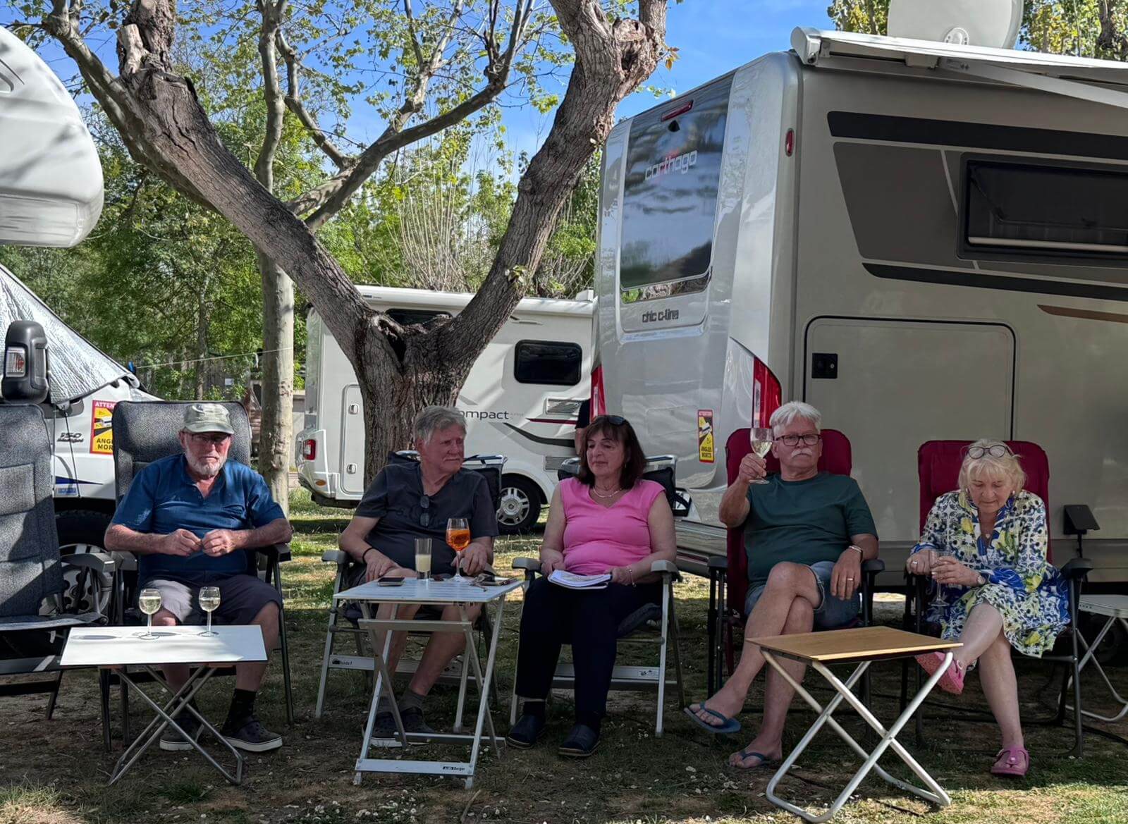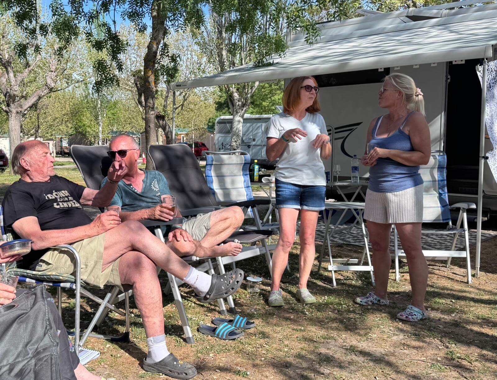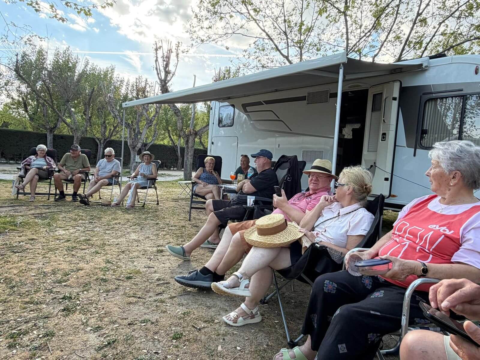Wir haben wieder einen Tag der Ruhe. Am Morgen kann man solche Tage noch mit Ausschlafen und gemütlichem Frühstücken genießen. Danach zeigt dann häufig die To-Do-Liste an, dass es nun genug der Ruhe ist. Das Wetter zeigt sich von der sonnig-warmen Seite und deshalb gibt es keine Ausrede, die das Wuseln im und am Auto verhindert. Am Nachmittag ist jedoch bei den meisten Relaxen angesagt. Nach unserer Besprechung des nächsten Fahrtages feiern wir mit gemischten Gefühlen die Halbzeit unserer Reise. Leider ist schon die Hälfte der gemeinsamen Reisetage vorüber. Andererseits haben wir aber noch eine ganze Menge interessanter Erlebnisse vor. Bei gutem Wein aus dem Womo-Keller und lustigen Geschichten hält die gute Stimmung uns bis in die Dunkelheit zusammen. Der morgige Tag führt uns zwar nach Madrid, aber mit einer kurzen Tour, die gelassen bewältigt werden kann.