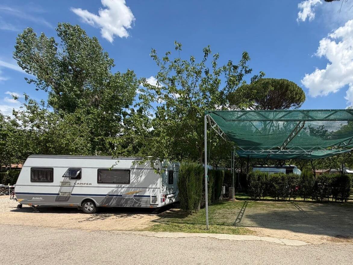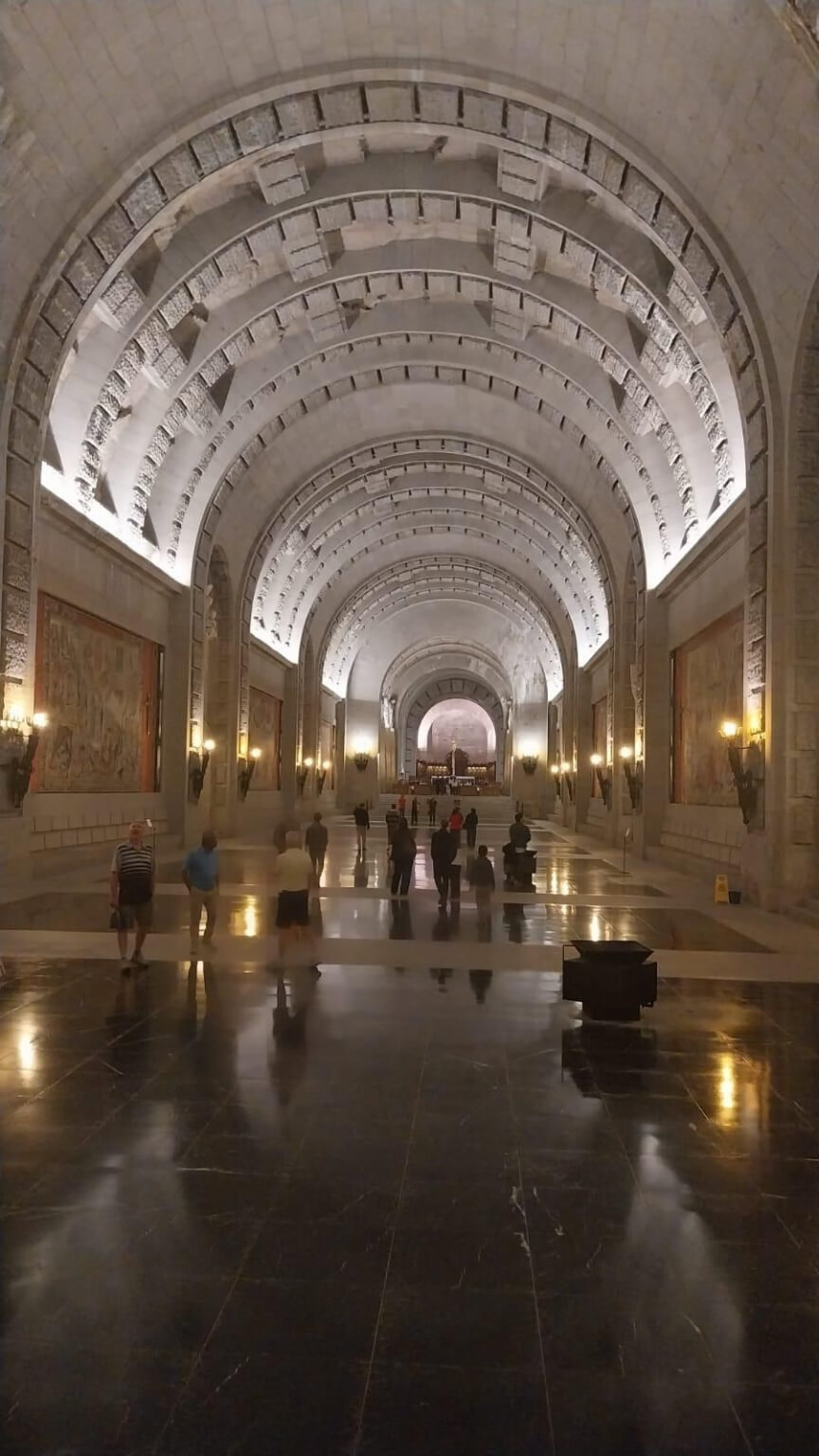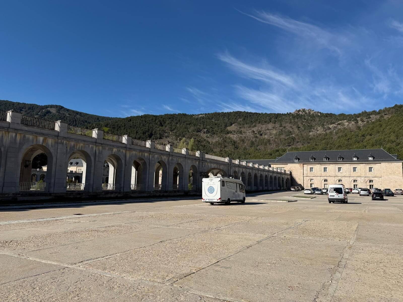 Um Madrid zu erreichen, gibt es heute zwei Routen. Einmal über zunächst bekannte Straßen vom vorgestrigen Tag, danach jedoch durch den Naturpark Peñalara. Dieses Gebiet mit dem höchsten Berg des Sierra de Guadarrama, dem 2.430 m hohen Peñalara, ist für Naturfreunde eine Augenweide. Allerdings ist sie auch bevorzugtes Ziel der Madrider am Wochenende, was in den teilweise engen Straßen und auf den Parkplätzen für Überfüllung sorgte. Die zweite Route bringt uns über die AB auf kürzestem Weg zu unserem CP nach Aranjuez. Die meisten entscheiden sich für diese Route. Wer bei der Burgenrundfahrt das Valle de Cuelgamuros früher das Valle de Cuelgamuros (Tal der Gefallenen) nicht besucht hat, kann heute kurz nach dem Camp auf beiden Touren dieses größte bekannte Massengrab aus der Zeit des spanischen Bürgerkriegs besuchen. Dieses von Zwangsarbeitern aus Konzentrationslagern seit 1940 errichtete Monument hat u. a. das größte freistehende Kreuz der Welt aus Beton mit 152 m Höhe und 46 m Breite. Auch die Basilika, eine riesige künstliche Höhle, in der bis 2019 Franco bestattet war und in der heute noch täglich um 11 Uhr eine Messe von Mönchen des Klosters zelebriert wird, kann besichtigt werden. Am frühen Nachmittag treffen alle bei strahlender Sonne auf dem CP ein. Wir haben erst morgen wieder unsere Teilnehmerbesprechung, sodass heute weiter relaxt wird. Morgen steht Madrid auf unserem Besichtigungsprogramm.