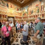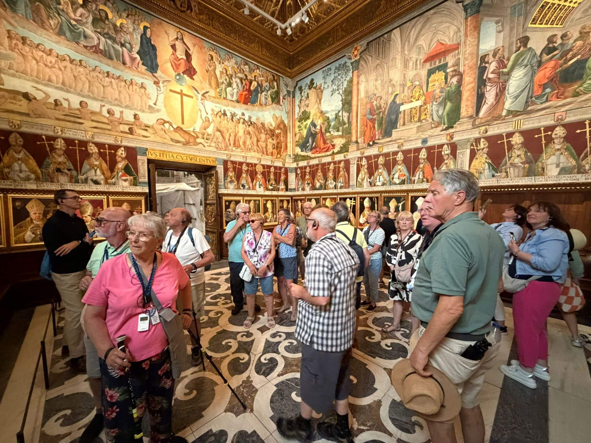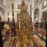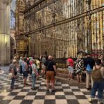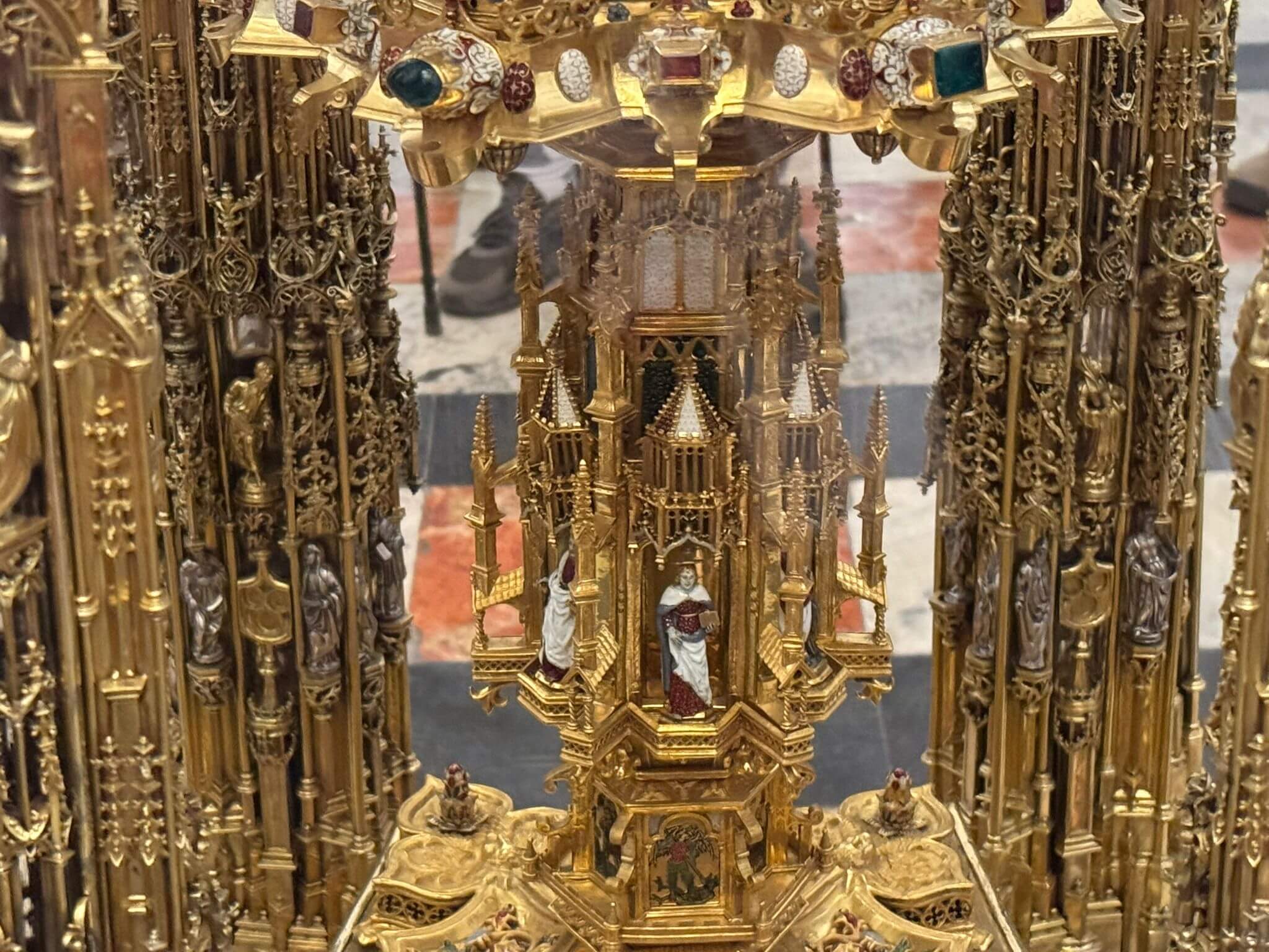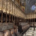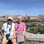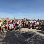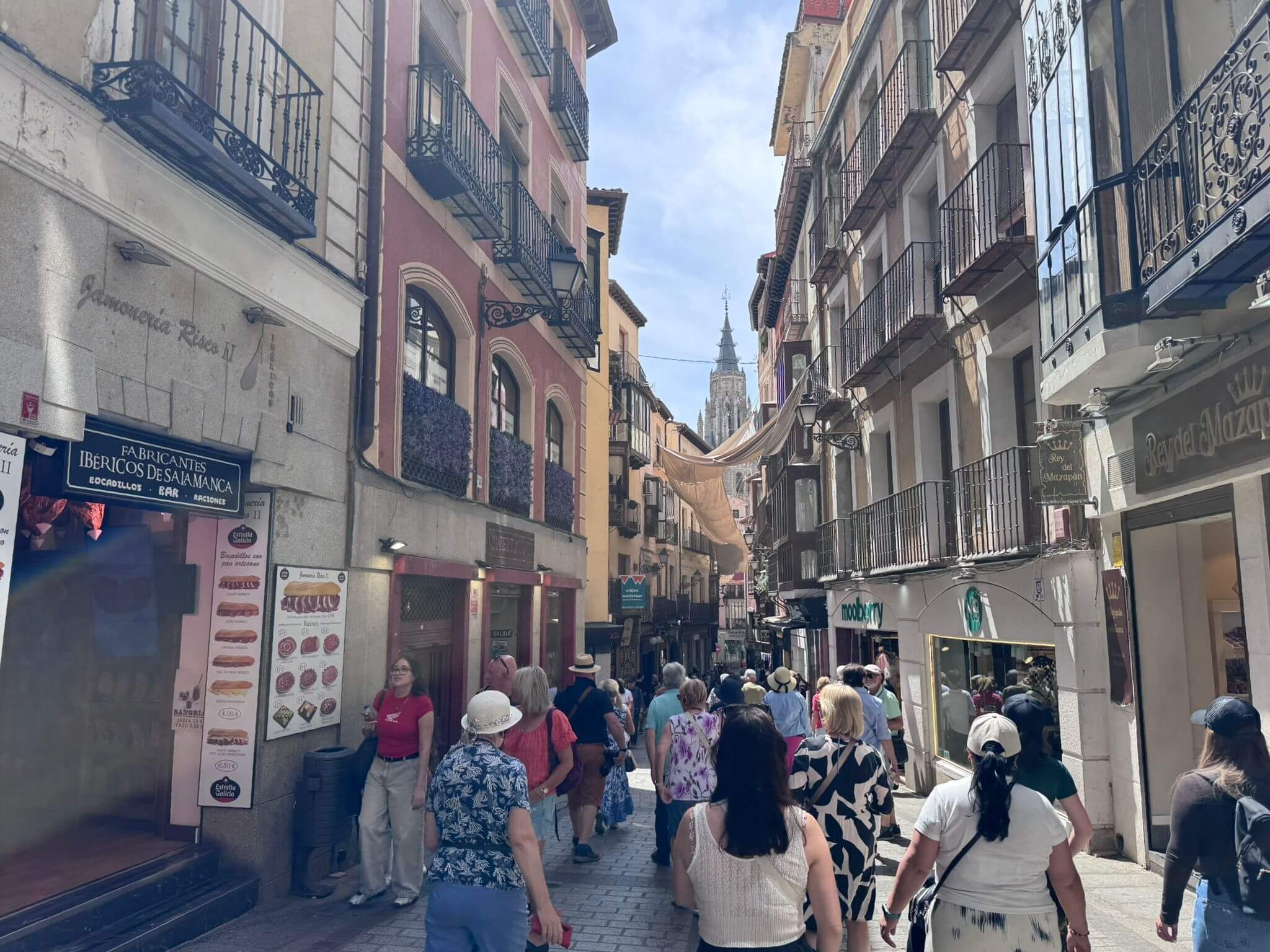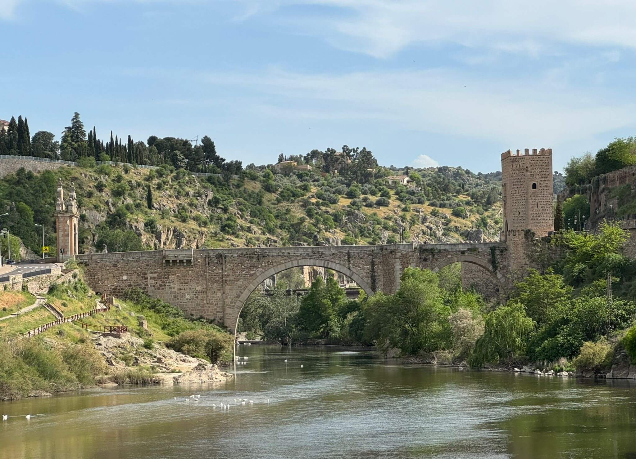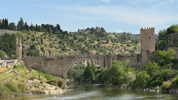 Von Madrid geht es in die autonome Gemeinschaft Kastillien – La Mancha. Unser Ziel ist ihre Hauptstadt Toledo. Die Fahrt nach Süden bringt uns auch in das Land des „sinnreichen Edelmanns Don Quijote von der Mancha“. Wir werden jedoch nicht auf seinen Spuren wandeln. Auch unsere Fortbewegung auf der Autobahn ist nicht zu vergleichen mit einem Ritt auf Rosinante. Der kurze Fahrtag ermöglicht es, kurz nach Mittag zur Stadtbesichtigung von Toledo mit einem Bus und unserem Guide zu starten. Um zu sehen, wie die Stadt sich auf einem Granitfelsen zwischen 400 und annähernd 700 m erhebt , von der Flusswendung „Torno del Taja“ fast umschlossen und der restliche Teil von der teilweise doppelten Stadtmauer geschützt wird, umfahren wir die Stadt. Ein Fotostopp ermöglicht uns einen Blick auf die beeindruckende Ansicht der Altstadt mit dem Alcázar und der Kathedrale. Auch aufgrund der Hinterlassenschaften der verschiedenen Herrscher, von Goten über Mauren bis zu den christlichen Königen, ist Teledo heute UNESCO-Weltkulturerbe. Zu diesem kulturellen Erbe gehört auch die Handwerkskunst der Herstellung von Schwertern und Messern. Wir besichtigen eine Werkstatt für Stahlklingen und für wertvolle Gold- und Silbereinlegearbeiten, in der auch Damaszener-Stahl verarbeitet wird. Auf einer Rolltreppe geht es hinauf in die Altstadt und dort spazieren wir durch enge Gassen vom Plaza de Zocodover mit dem Arco de la Sangre (Blutbogen) zur Kathedrale. Dieses Bauwerk beeindruckt durch seine vielen Baustile, da es von Generationen erstellt wurde. Der 1504 beendete Hauptaltar ist ein Wunderwerk der Schnitzkunst, Vergoldung und Bemalung. Neben diesen kirchlichen Aspekten sind auch die ausgestellten im Besitz der Kathedrale befindlichen Meisterwerke u. a. von El Greco, Goya oder Titzian zu bewundern. Nach diesem Ausflug in vergangene Jahrhunderte verlangt der Körper sein Recht. In der kurzen Freizeit genießen viele die vielfältigen Angebote an Speisen und Getränken in der Altstadt, bevor uns der Bus zurück zum Camp bringt. Dort sorgt der Sonnenschein mit seiner großen Wärme über 25 °C zum Relaxen. Wir haben morgen einen Ruhetag, der abends zum längeren Verweilen vor den Womos einlädt.