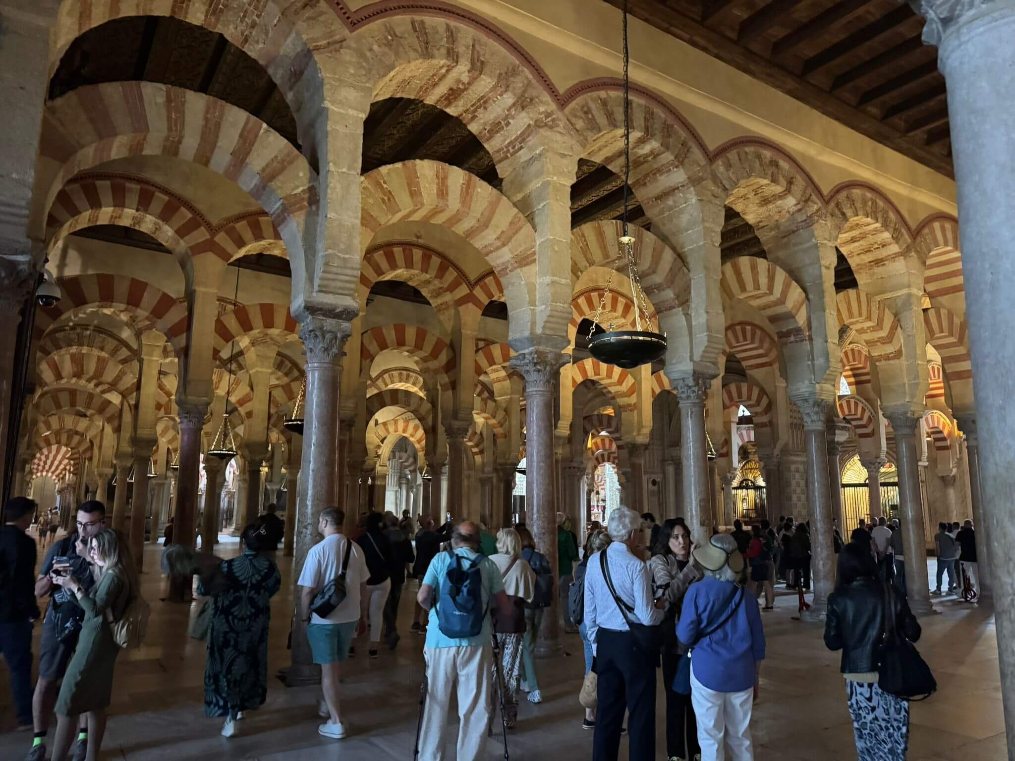 Cordoba gehört zu dem Dreigestirn der wichtigsten Städte Andalusiens. Als ehemalige Hauptstadt des spanischen Kalifats mit 300.000 Einwohnern, mehr als heute, bietet sie für die Geschichte Spaniens, aber auch für den interessierten Touristen einmalige Erkenntnisse. Nachdem uns ein Bus zur Puente Romano gebracht hat, einer römischen Brücke, erbaut 45 v. Chr. und nach 2071 Jahren durch die Instandhaltung der maurischen Kalifen ausgezeichnet erhalten, beginnt unsere Führung auf der anderen Seite des Guadalquivir mit der Besichtigung der Mezquita-Kathedrale (UNESCO-Weltkulturerbe). Diese Symbiose aus islamischer und christlicher Vergangenheit übertrifft mit ihrer Größe von 180 m × 130 m den Petersdom. Die ursprüngliche Moschee wurde in der Zeit des Kalifats ständig erweitert und somit zu einer der größten der Welt. Nach dem Sieg über die Mauren war es Karl V., der in die Moschee im 16. Jhd. eine Kathedrale einbauen ließ. Obwohl er es später wohl bedauerte, ist dieses Ensemble einmalig auf der Welt. Nach dieser eindrucksvollen Besichtigung spazierten wir durch die engen Gassen und Gässchen mit ihren vielen Geschäften, u. a. auch durch das jüdische Viertel. Es war danach Freizeit angesagt und die andalusische Küche fand neue Anhänger. Wer den Empfehlungen der Bruderschaft des Bullenschwanzes folgte, erhielt eine vorzügliche Kostprobe dieser Cuisine. Am frühen Abend trafen wir uns zu unserer Teilnehmerbesprechung. Unser nächstes Ziel ist Sevilla. Morgen haben wir eine lange Tour vor uns und das Wetter verspricht nichts Gutes für den Abend und die Nacht. Deshalb war heute das Womo der Zufluchtsort.