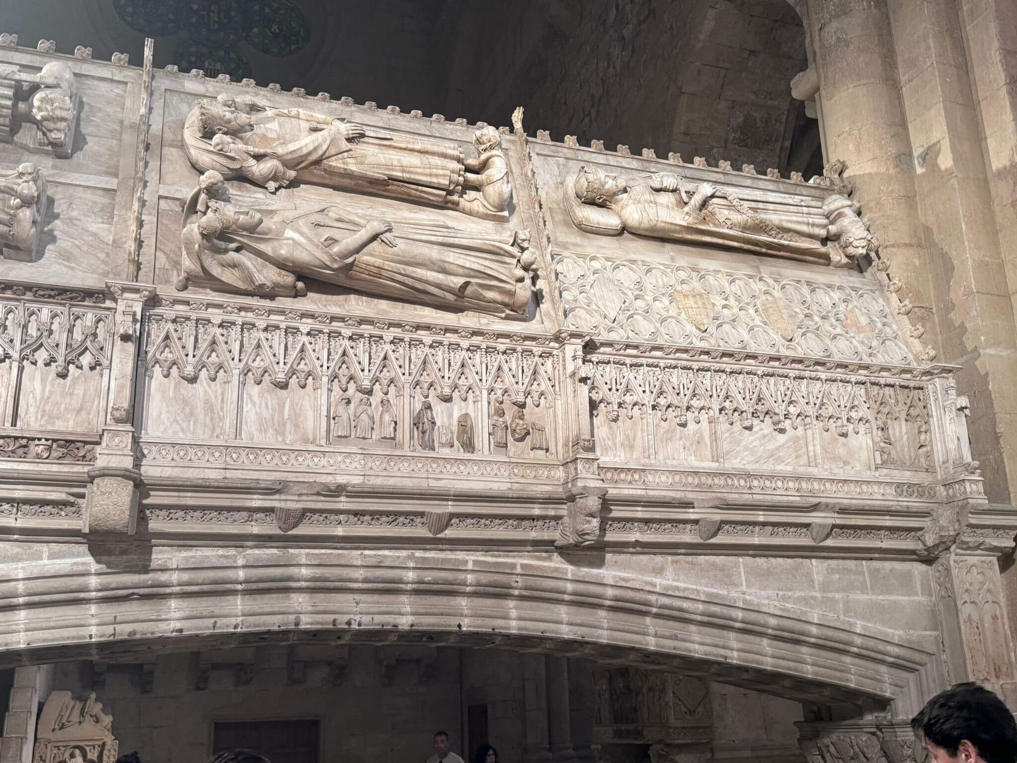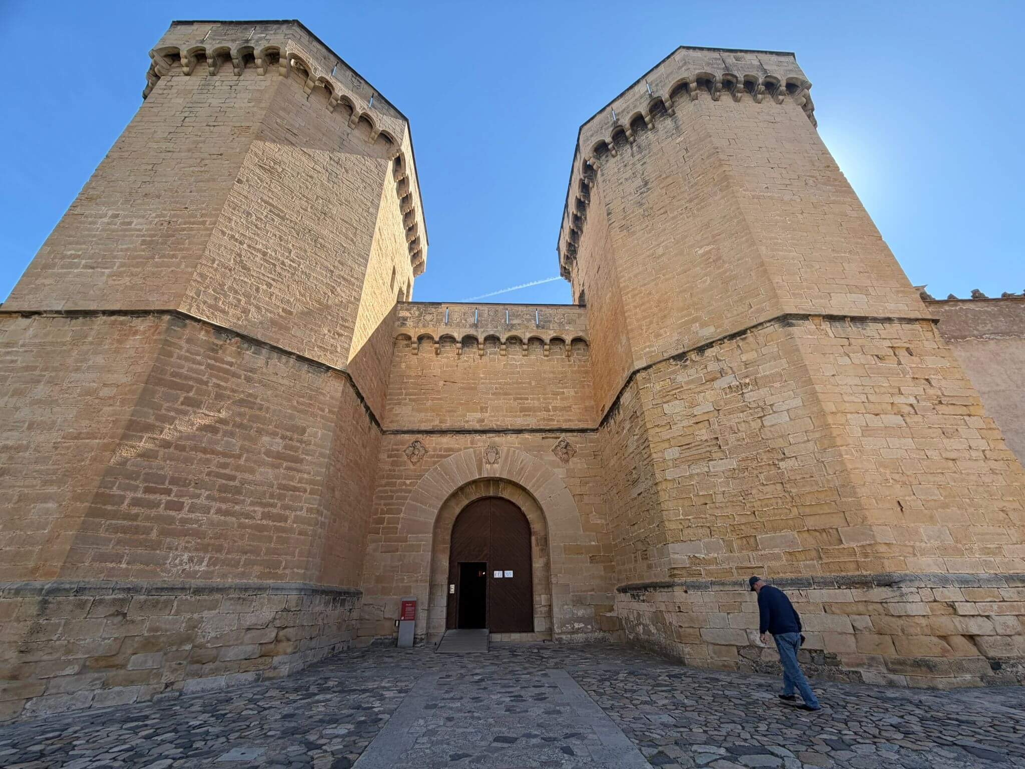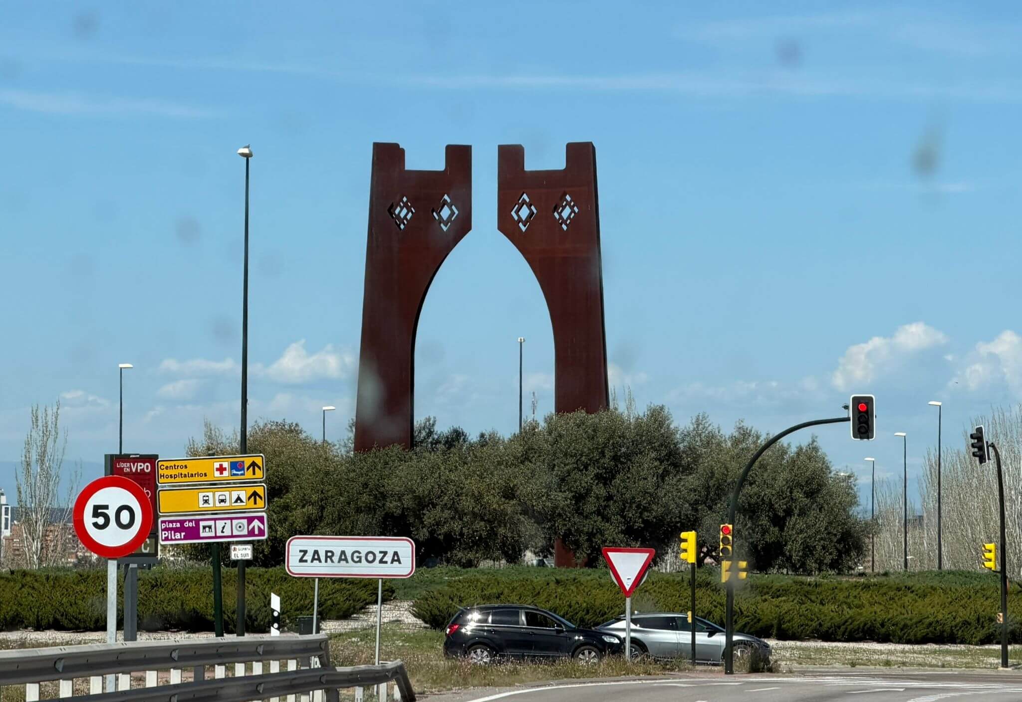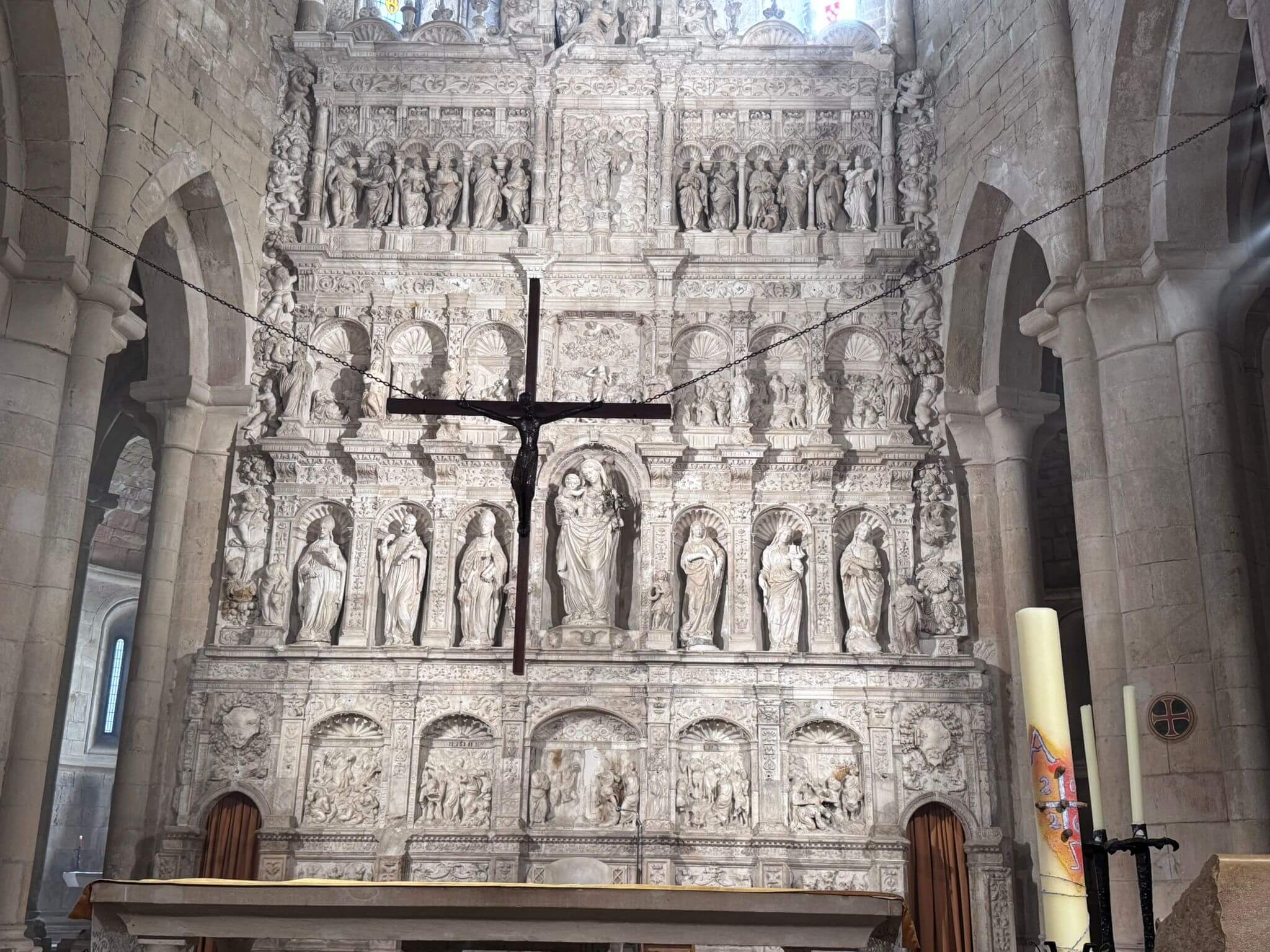 Heute hat das Kuga-Navi seine erste Bewährungsprobe zu bestehen. Unserer Fahrtag am Ostersonntag führt uns von der katalanischen Hauptstadt Barcelona in die aragonische Hauptstadt Zaragoza. Auf dem Weg passieren wir die Stadt Montblanc. Unser Hauptziel ist heute das Zisterzienserkloster Poblet. 1151 gegründet, wurde es 1991 zum UNESCO-Weltkulturerbe erklärt. Poblet gilt als das größte und prächtigste Königskloster Spaniens, auch wegen der Grablege einiger aragonischer Könige. Besonders beeindruckend ist der aus Alabaster hergestellte Hochaltar. Unser weiterer Weg führt uns über den Nullmeridian, der den Globus in Ost und West einteilt. In Aragon ist der „Osborne-Stier“ nicht zu übersehen – heute ein Wahrzeichen der Region. Im Camp besprechen wir den nächsten Fahrtag nach Pamplona. Auch ein Kuga-Osterhase fand den Weg nach Zaragoza und versteckte für die Teilnehmer kleine Ostergaben. So endete der Ostersonntagabend in gemütlicher Runde bei einem Gläschen Wein und einem Schokoladenosterhasen.