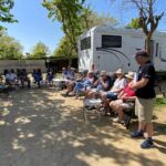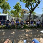 Bei überwiegend sonnigem Wetter und Temperaturen um die 20 Grad startet unsere Reise in das „Herz Spaniens“ auf dem Campingplatz Barcelona in Mataro. Viele Teilnehmer unserer Reise sind schon einige Tage früher angereist und genießen das schöne Wetter, erkunden die Umgebung oder haben schon mal die Stadt Barcelona auf eigene Faust besucht. In der Begrüßungsrunde am frühen Nachmittag lernen wir uns kennen. Unsere Reiseleiter stellen uns die Reise in das „Herz Spaniens“ vor. Die Navigationsgeräte und Audioguides werden verteilt und erklärt und der erste morgige Ausflugstag nach Barcelona wird besprochen. Mit Kulmbacher Bier und spanischem Wein stoßen wir auf eine schöne Wohnmobilreise an. Danach stärken wir uns beim gemeinsamen Begrüßungsessen im Restaurant des Campingplatzes und freuen uns auf eine interessante Reise durch das Landesinnere von Spanien.