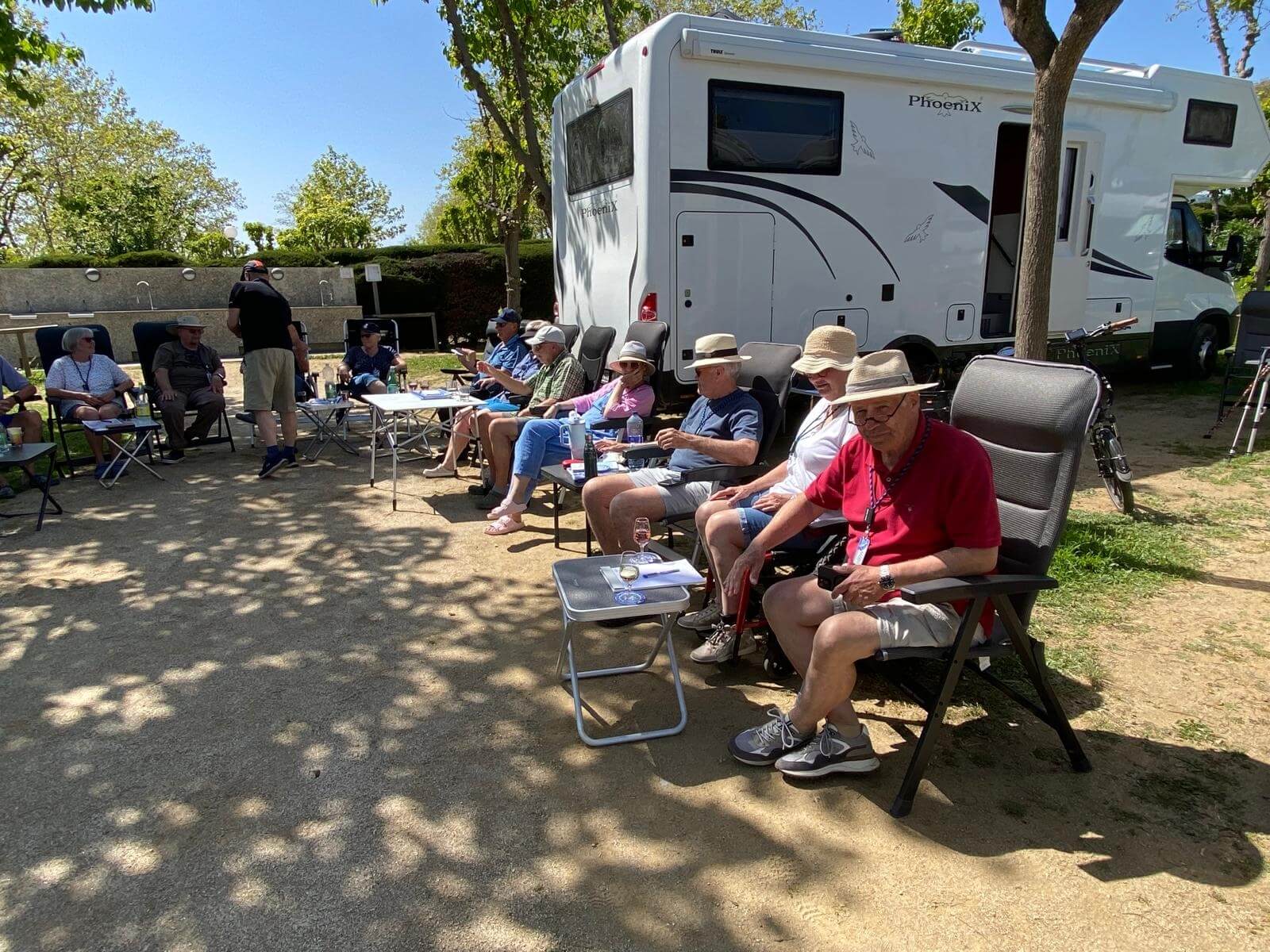 Bei überwiegend sonnigem Wetter und Temperaturen um die 20 Grad startet unsere Reise in das „Herz Spaniens“ auf dem Campingplatz Barcelona in Mataro. Viele Teilnehmer unserer Reise sind schon einige Tage früher angereist und genießen das schöne Wetter, erkunden die Umgebung oder haben schon mal die Stadt Barcelona auf eigene Faust besucht. In der Begrüßungsrunde am frühen Nachmittag lernen wir uns kennen. Unsere Reiseleiter stellen uns die Reise in das „Herz Spaniens“ vor. Die Navigationsgeräte und Audioguides werden verteilt und erklärt und der erste morgige Ausflugstag nach Barcelona wird besprochen. Mit Kulmbacher Bier und spanischem Wein stoßen wir auf eine schöne Wohnmobilreise an. Danach stärken wir uns beim gemeinsamen Begrüßungsessen im Restaurant des Campingplatzes und freuen uns auf eine interessante Reise durch das Landesinnere von Spanien.