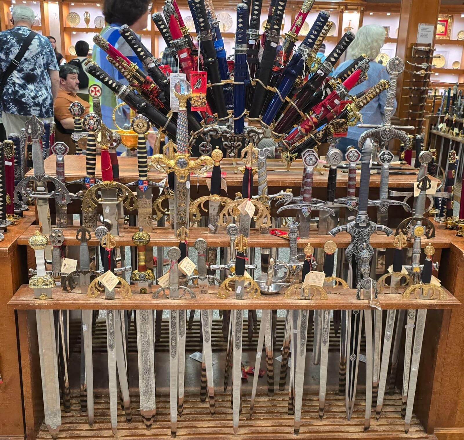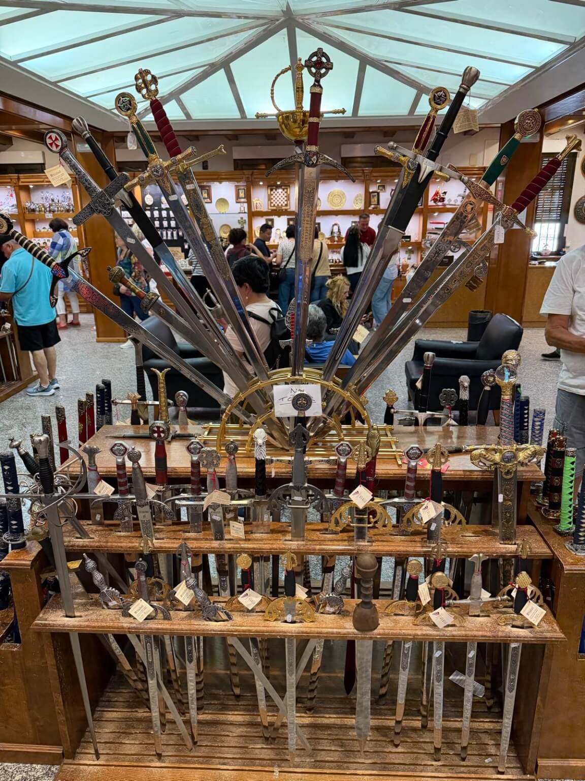 Die wechselnde Herrschaft und das Zusammenleben unterschiedlicher Kulturen (Juden, Christen, Mauren) haben Toledo zu Wohlstand und Macht verholfen. So besichtigen wir zuerst eine Werkstatt für Stahlklingen und für wertvolle Gold- und Silbereinlegearbeiten, wofür Toledo berühmt ist.