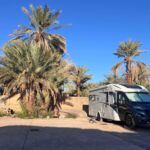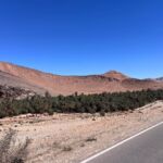 Die Berge zeigen sich unterwegs in den unterschiedlichsten Farbtönen von Ocker, Rot und Braun, die im Sonnenlicht besonders intensiv leuchten. Immer wieder eröffnen sich neue Ausblicke auf bizarre Felsformationen, trockene Flussbetten (Oued) und kleine Oasen mit Palmenhainen, die wie grüne Inseln in der kargen Landschaft wirken.
