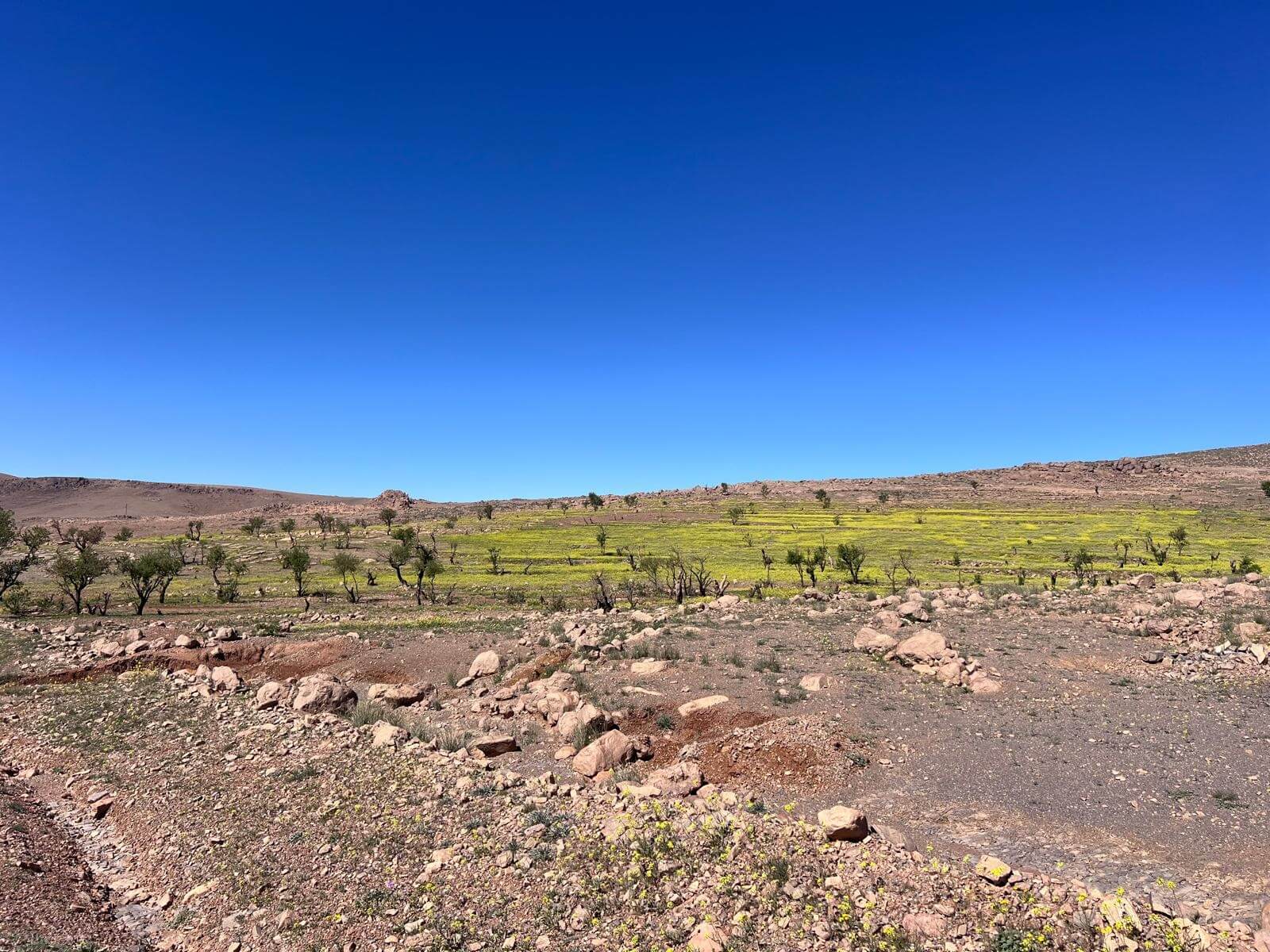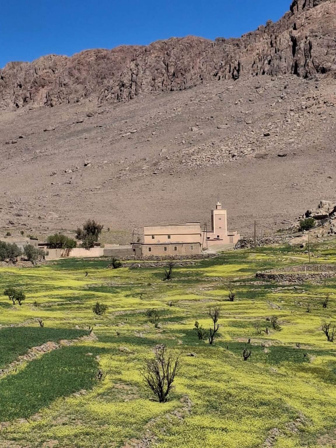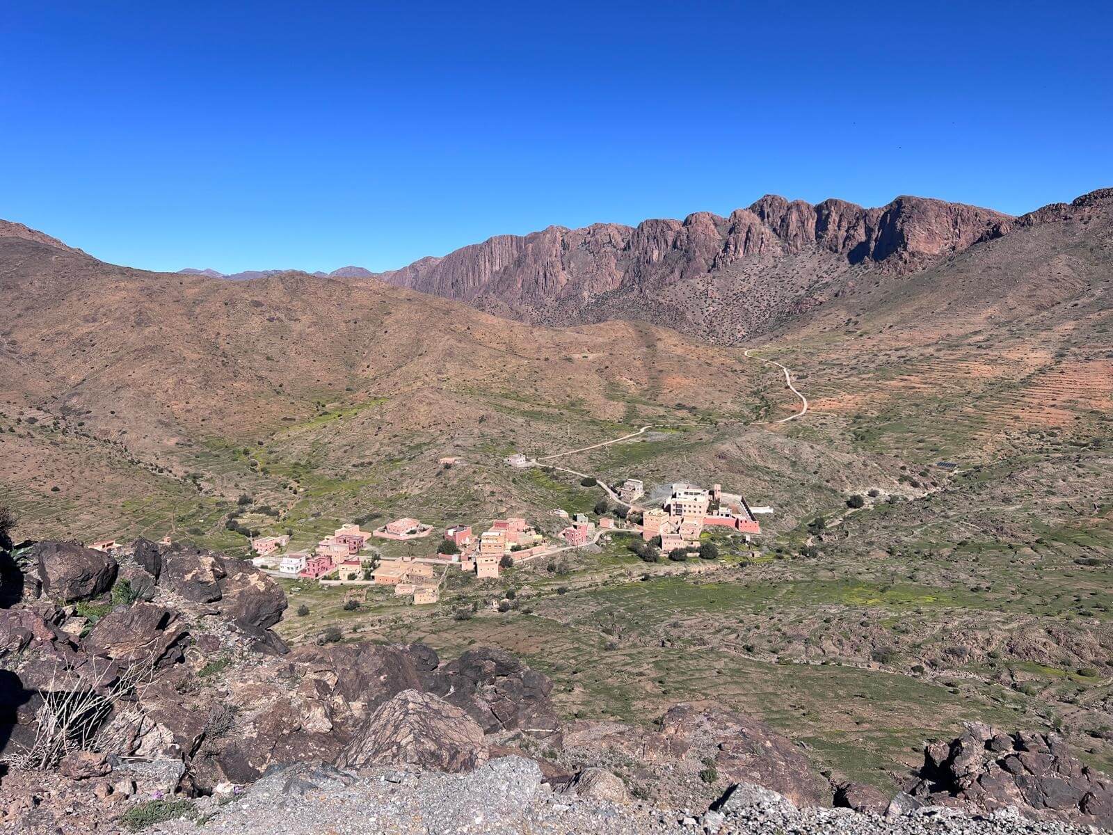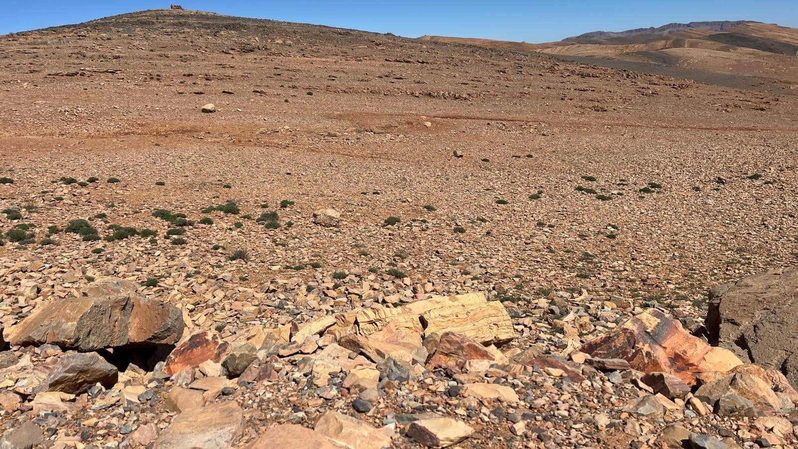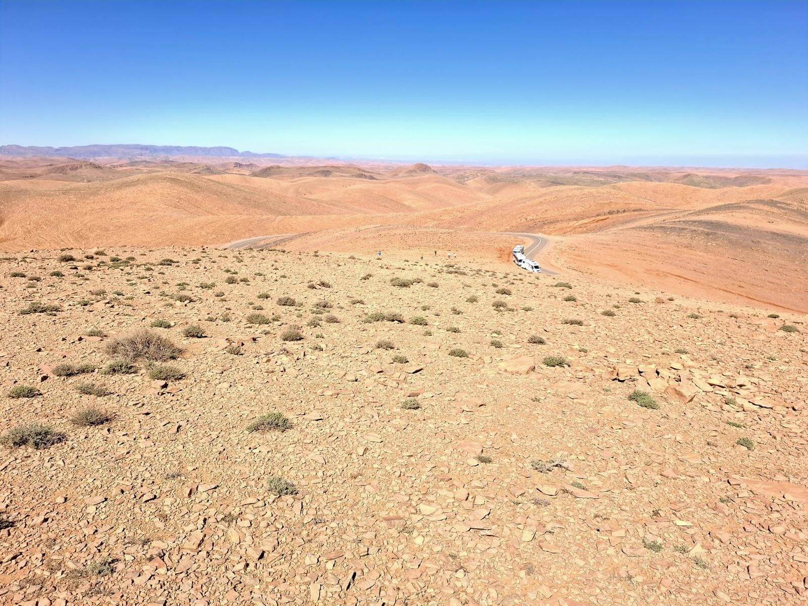 Heute verlassen wir die beeindruckende Felsenlandschaft rund um Tafraoute und setzen unsere Reise weiter durch den Anti-Atlas fort. Die Strecke führt uns durch eine abwechslungsreiche Landschaft mit kargen Bergen, weiten Ebenen und immer wieder kleinen Berberdörfern, die sich harmonisch in die Umgebung einfügen.