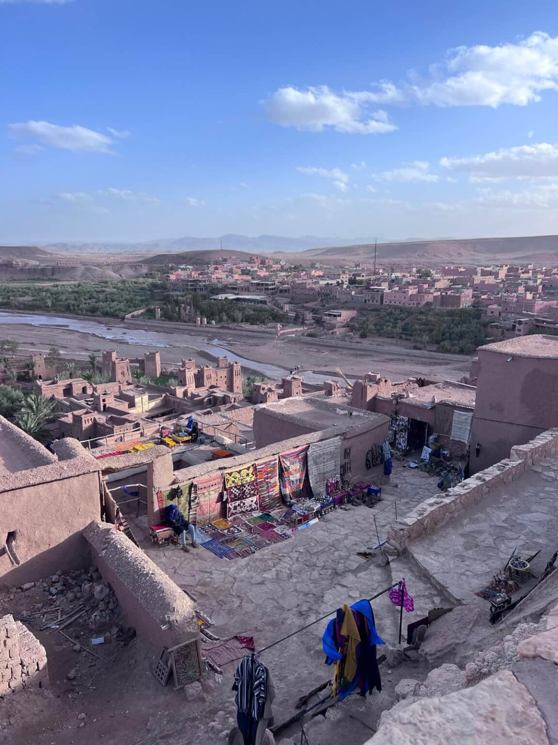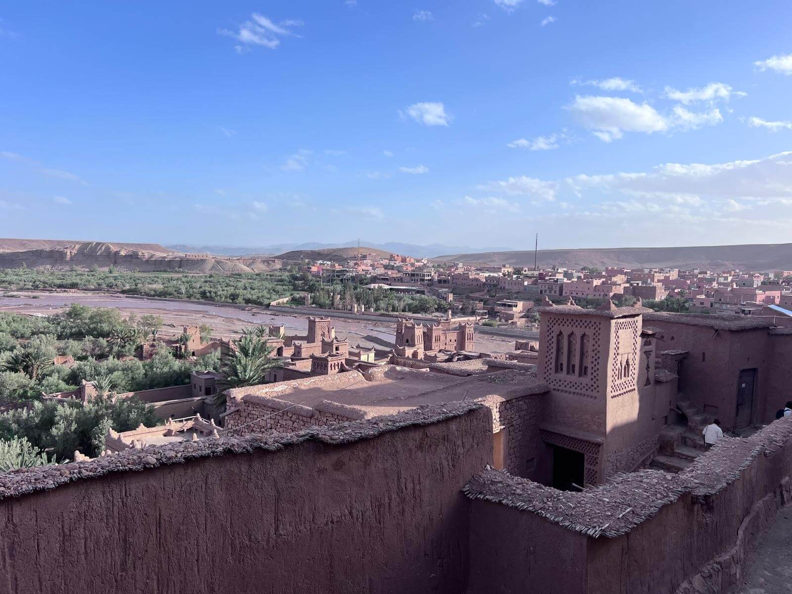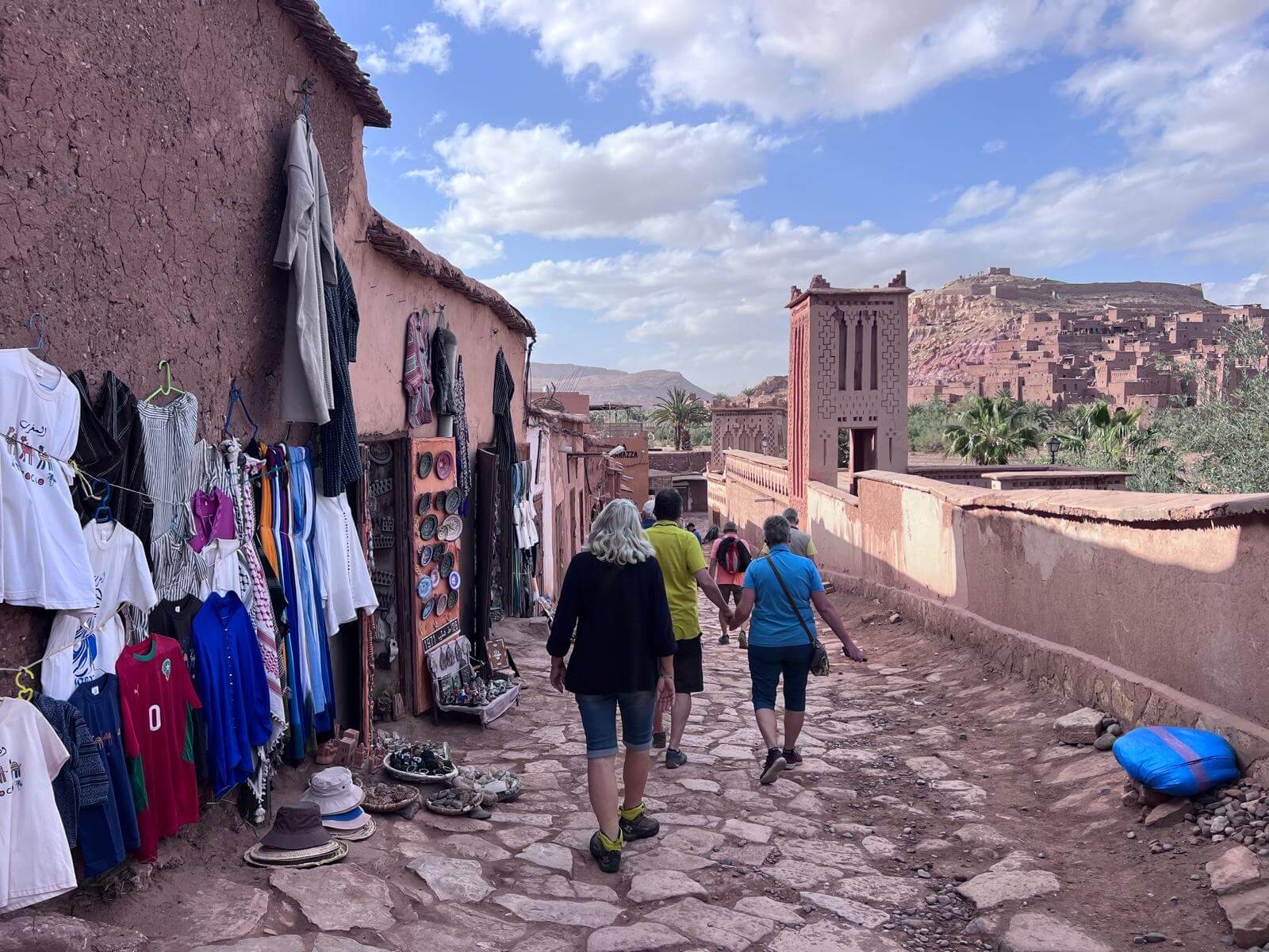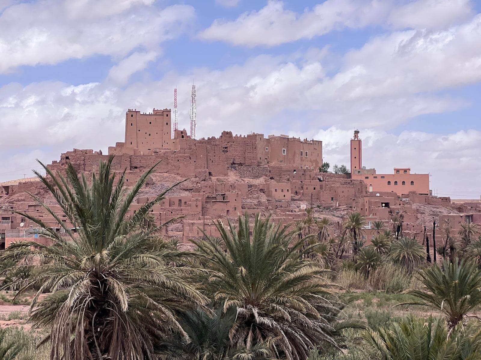 Unser Ziel Ait-Ben-Haddou gehört zum UNESCO-Weltkulturerbe und zählt zu den schönsten, beeindruckendsten und am besten erhaltenen Ksars (Wehrdörfer) Marokkos. Die aus Lehm erbauten Häuser, Türme und Speicherburgen schmiegen sich terrassenförmig an den Hang und sind von einer schützenden Mauer umgeben – ein eindrucksvolles Beispiel traditioneller Baukunst.