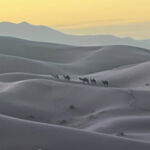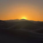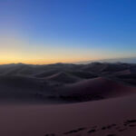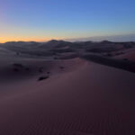 Heute steht ein entspannter Ruhetag in der Wüste auf dem Programm. Direkt an den beeindruckenden Dünen des Erg Chebbi hat jeder die Möglichkeit, den Tag ganz nach seinen eigenen Wünschen zu gestalten – ob aktiv oder einfach nur zum Genießen der besonderen Umgebung. Einige von uns starten bereits früh in den Tag: Noch vor Sonnenaufgang geht es hinauf auf eine der großen Dünen. Oben angekommen erleben wir, wie die Sonne langsam aufgeht und die Landschaft in warme Farben taucht – begleitet von einem leichten Wind, der den Sand über die Dünen wehen lässt.