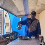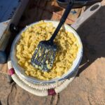 Im Anschluss treffen wir uns zum gemeinsamen Frühstück. Es gibt frisches Rührei, und mit einem Glas Sekt stoßen wir auf diesen besonderen Morgen in der Wüste an.