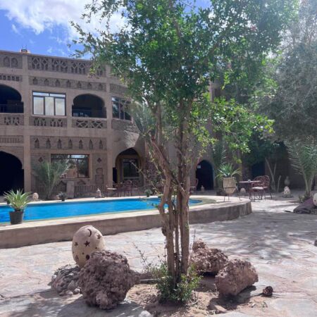 Wer möchte, nimmt anschließend am Ausflug zum Berberdepot teil. Zunächst führt uns der Weg durch eine grüne Oase, in der verschiedene Pflanzen und Kräuter wachsen. Dabei wird uns auch erklärt, wie das Bewässerungssystem funktioniert und wie wichtig es für die Landwirtschaft in dieser trockenen Region ist.