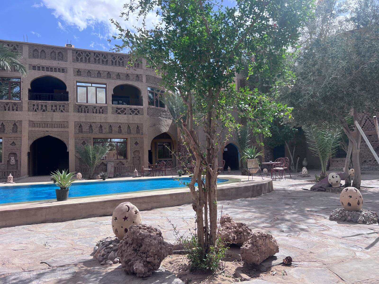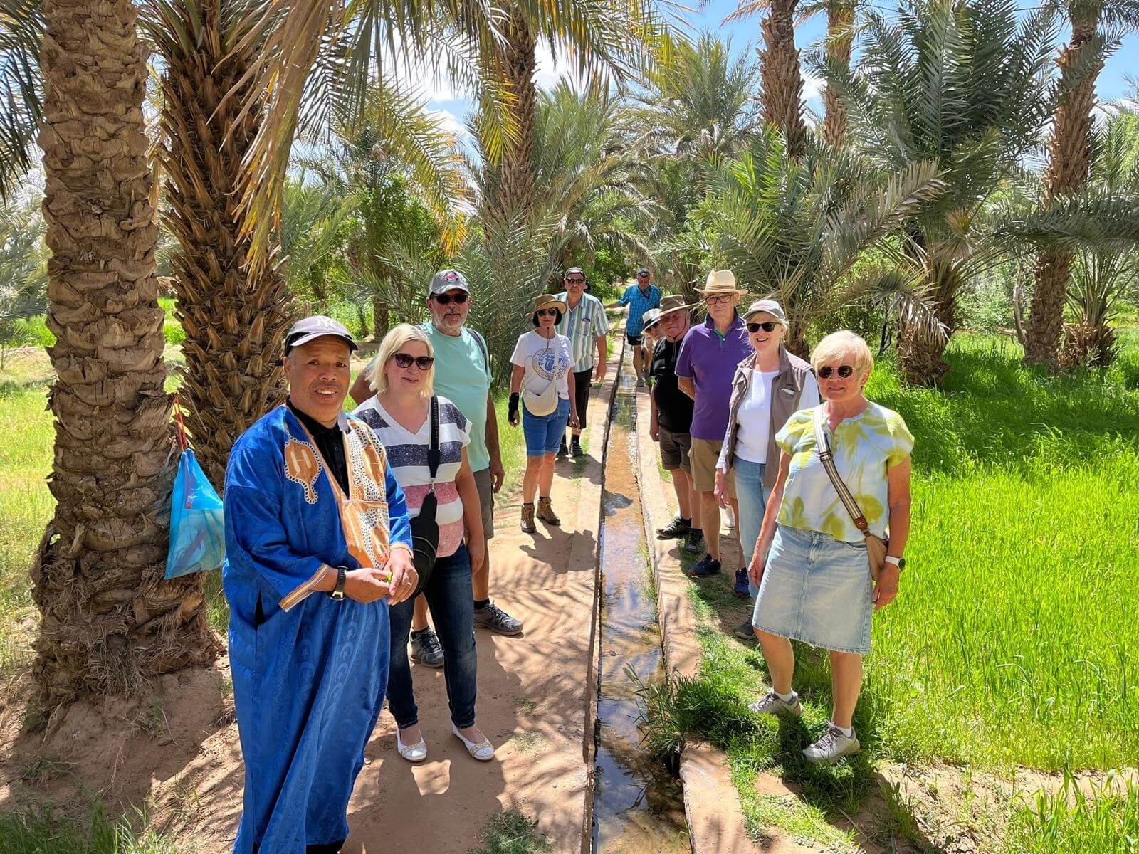 Wer möchte, nimmt anschließend am Ausflug zum Berberdepot teil. Zunächst führt uns der Weg durch eine grüne Oase, in der verschiedene Pflanzen und Kräuter wachsen. Dabei wird uns auch erklärt, wie das Bewässerungssystem funktioniert und wie wichtig es für die Landwirtschaft in dieser trockenen Region ist.